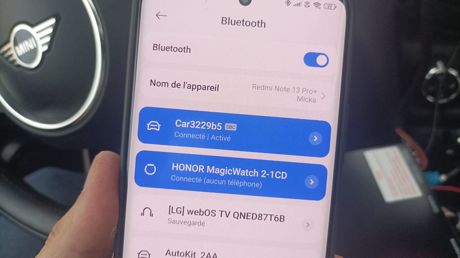 Bon je ne voulais pas rester sur un échec alors cet aprem j'ai décidé de refaire un montage. J'ai réussi à choper le setup ( bien caché) qui faisait que le mode par défaut est le carplay. Wifi et BT activé. J'ai réussi à mettre l'android auto mais il n'est pas stable. Des déco, un conflit avec le système Mini, les icônes tronqués sur les côtés d'écran et surtout ne pas arriver à trouver comment sortir le son .... Donc je le renvoie. Faudrait pratiquement changer tout l'écran pour monter un système complet en lieu et place mais c'est pas le même budget. A réfléchir, surtout que j'ai pris un scud de Mme pour mes dépenses qui servent à rien !🤣🤣😂 |