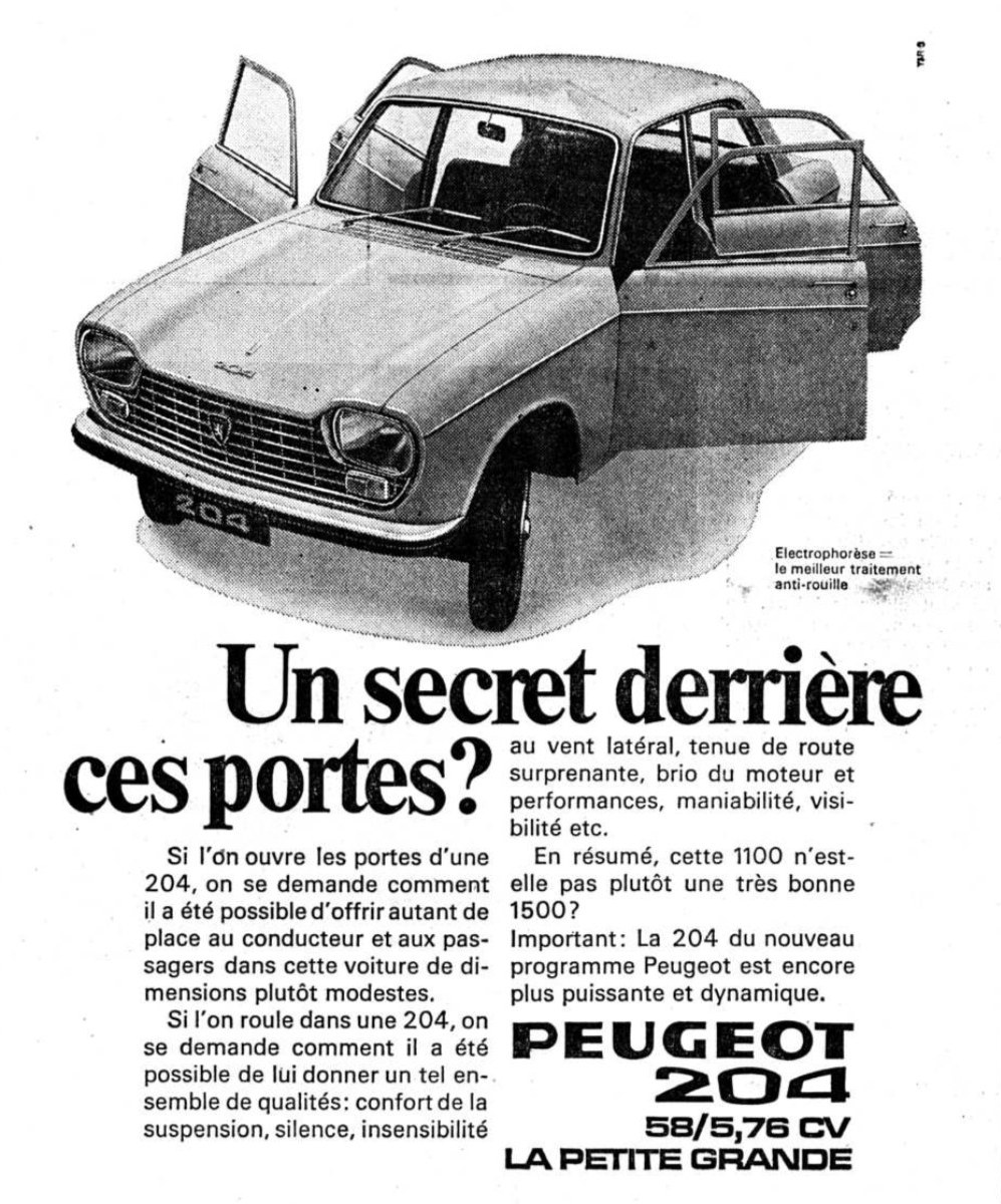 Encore qu'il faudrait comparer berline et berline. Le truc jaune c'est pas une berline, c'est un pot de yaourt de ville... Une 204 se comparerait davantage, de nos jours, à une 308... |