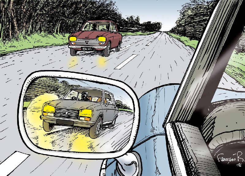 Citation de I'll-be-back : « Pour les amateurs de "noir et blanc", une petite archive de derrière les fagots issue de ma collection. Je n'en abuserai pas, privilégiant la publication de mes propres photos... comme de coutume. Le cadre est celui de la mise en place des limitations de vitesse en France au début des 1970's... Il s'agit d'une Peugeot 204 banalisée, en plaques civiles, occupée par des militaires de la gendarmerie en contrôle cinémomètre. ![]() (source : L'Auto-Journal) » |