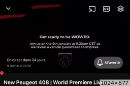 ![]() Edit Autotitre : Peugeot 408 restylee : ![]() 14:10 - turbo.fr - Dernière édition le 09/01/2026 à 09:42 par Xu19tdi, édité 1 fois |