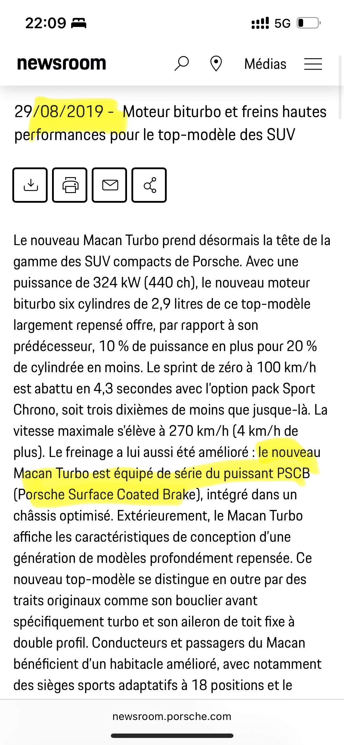 Ça semble legit, étriers blancs, pas gris. Pour le PSCB. Porsche Surface Coated Brakes ![]() |