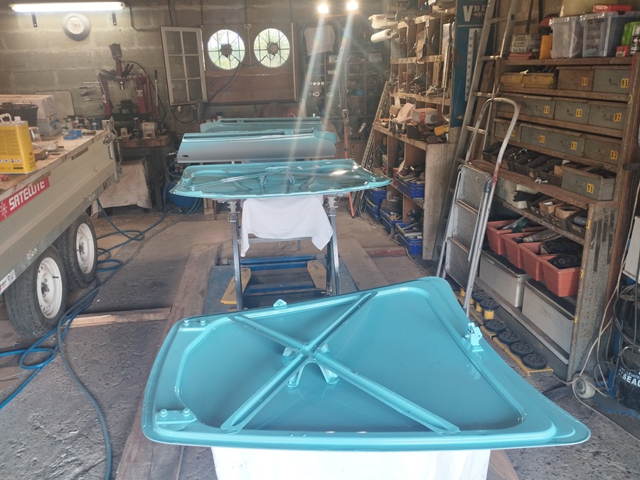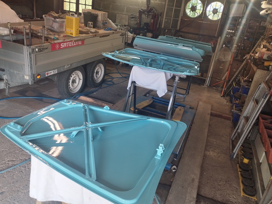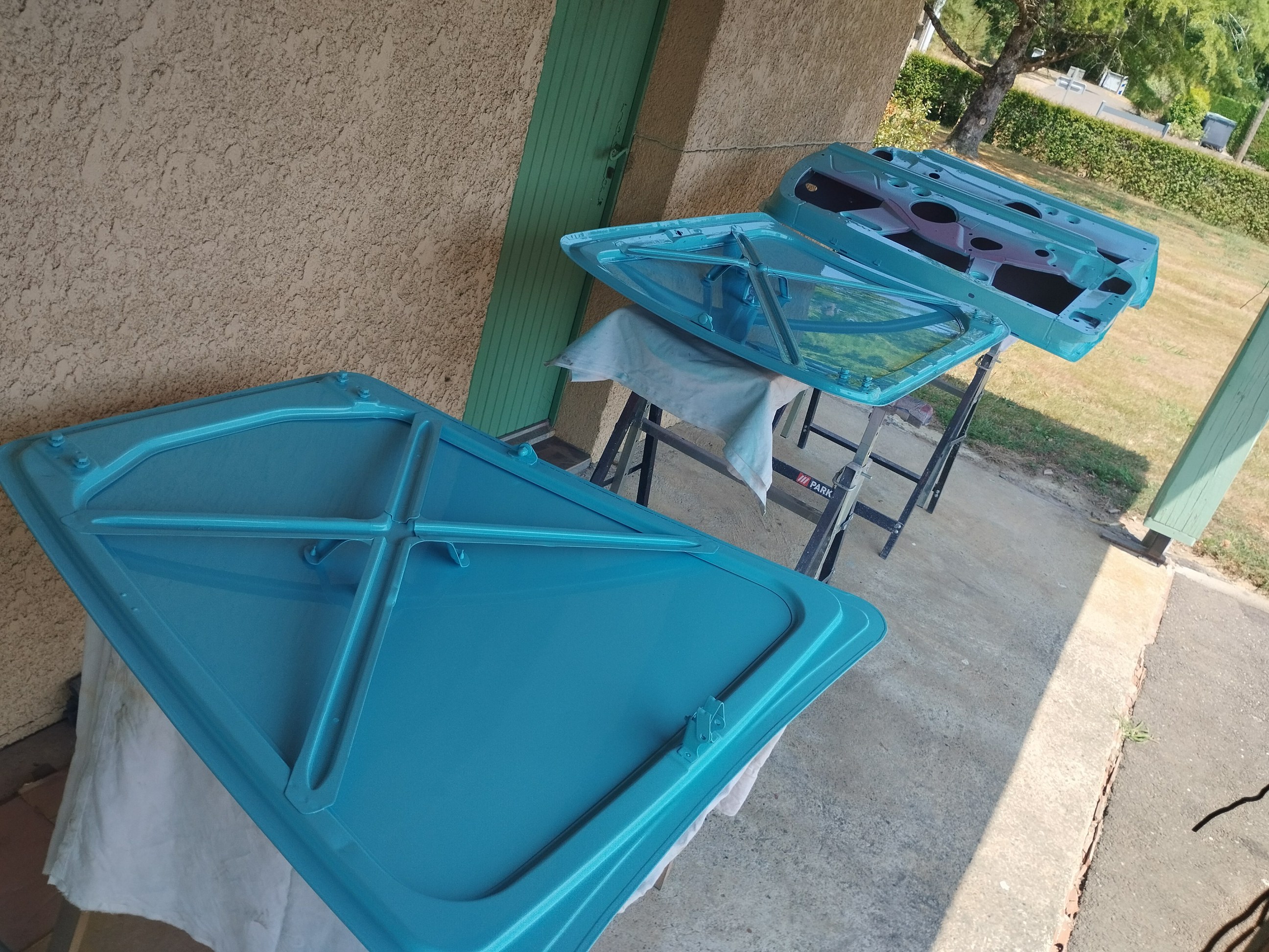 Salut les copains, Cette semaine un peu de préparation et un peu de peinture pour l'intérieur des ouvrants. Vous connaissez ces galères: Ponçage, apprêt, re ponçage, re apprêt, re re ponçage, etc, etc .... et enfin peinture... Globalement , c'est pas trop mal. Juste un peu de silicone mais pour des intérieurs, ça ira !... Donc remontage sur l'auto, au moins là je ne les abimerai pas ! Voilà ! pour l'extérieur , Si quelqu'un connais une astuce pour se débarrasser définitivement du silicone, je suis preneur. Je vais déjà suivre les conseils d'un certain "Hadok" et re poncer tout l'extérieur avec un ajout de vinaigre blanc dans mon eau de ponçage. A+ les copains |