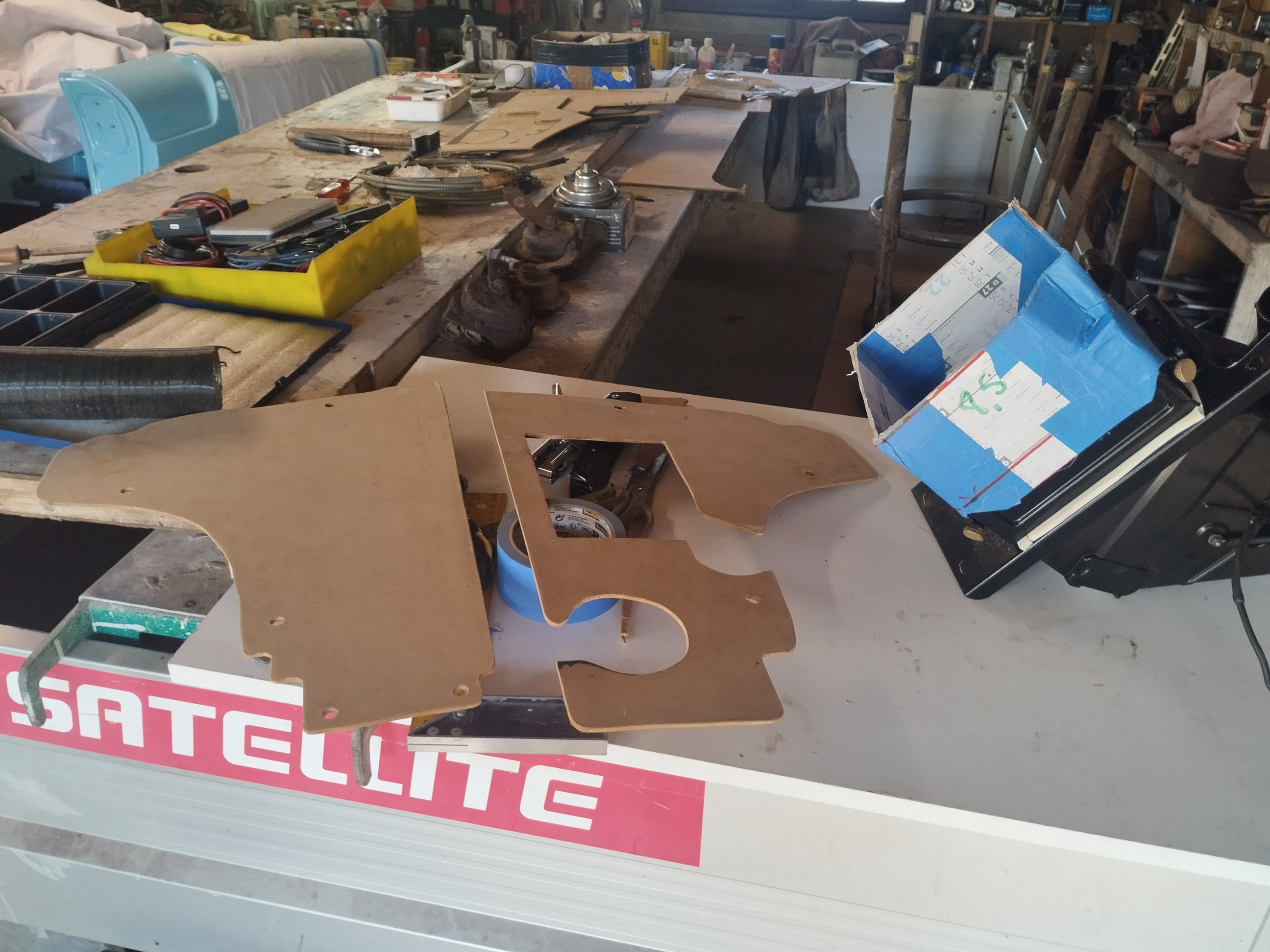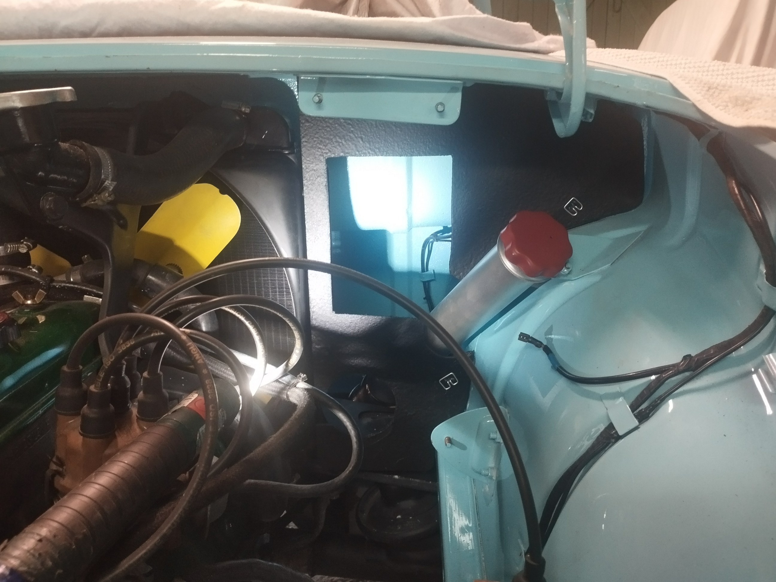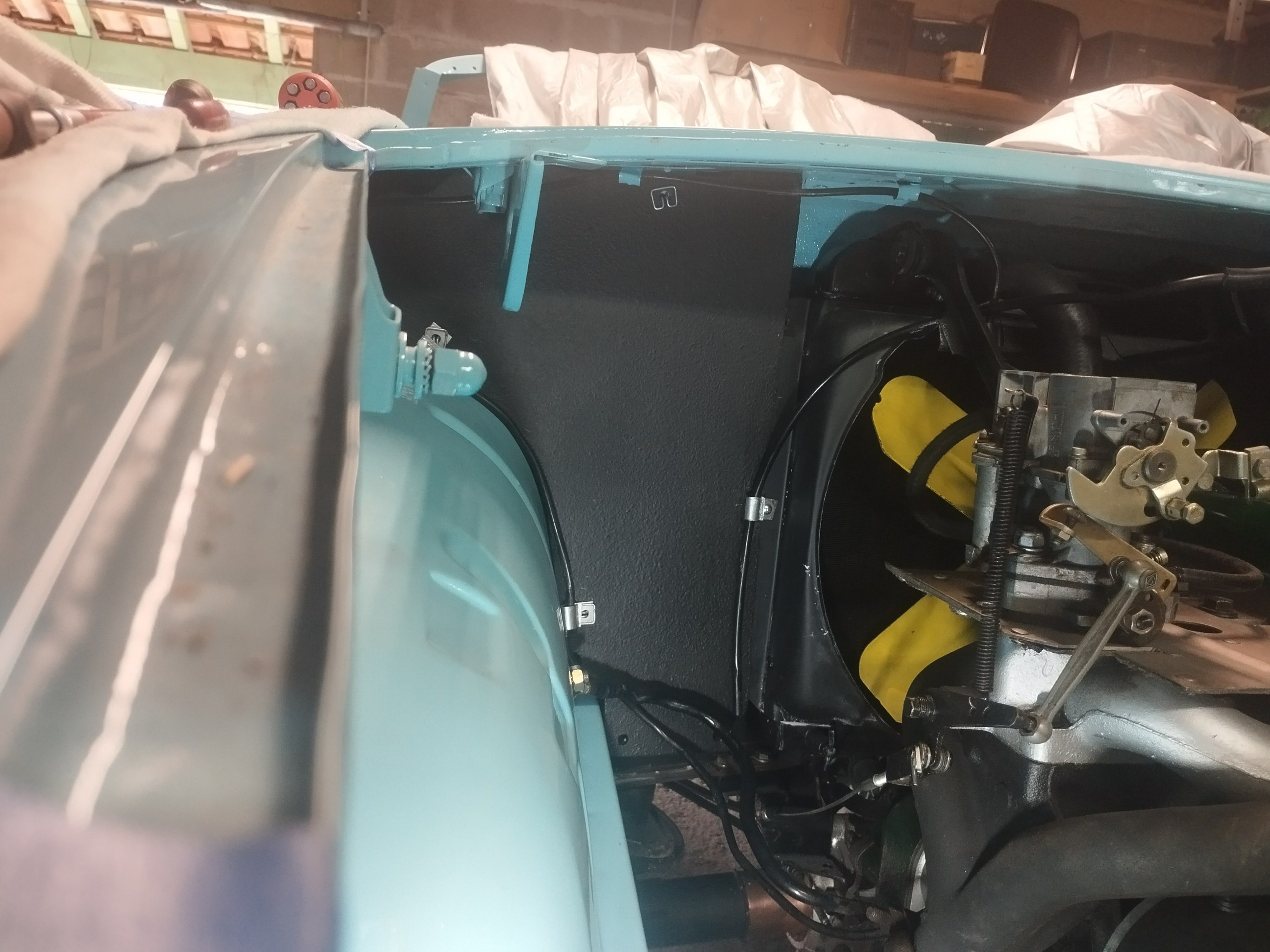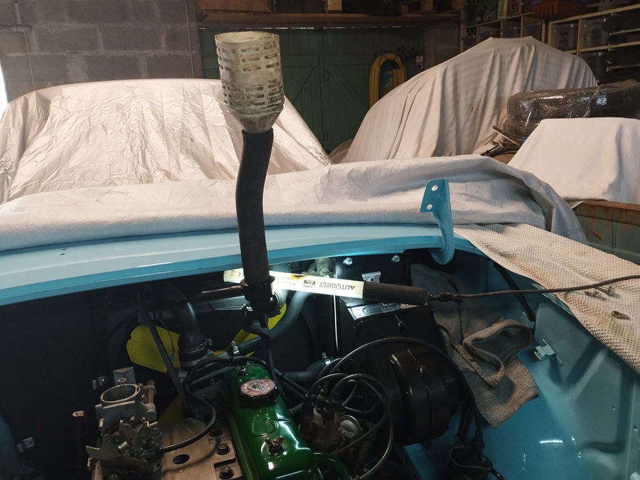 Et la landaise ??? Ca avance doucement. Finition des cartons de radiateur et du passage du SOFICA, puis pose sur la voiture. Montage du SOFICA et purge Puis réparation et préparation des tôles, fixations câbles et commandes, et tunnels du dessous du véhicules avant mise en place. Pendant que ça sèche, pose d'une commande de starter manuelle. Puis repose des éléments du dessous Voilà... Pour le dessous, il ne reste plus que l'échappement. A Suivre, A+ Les copains |