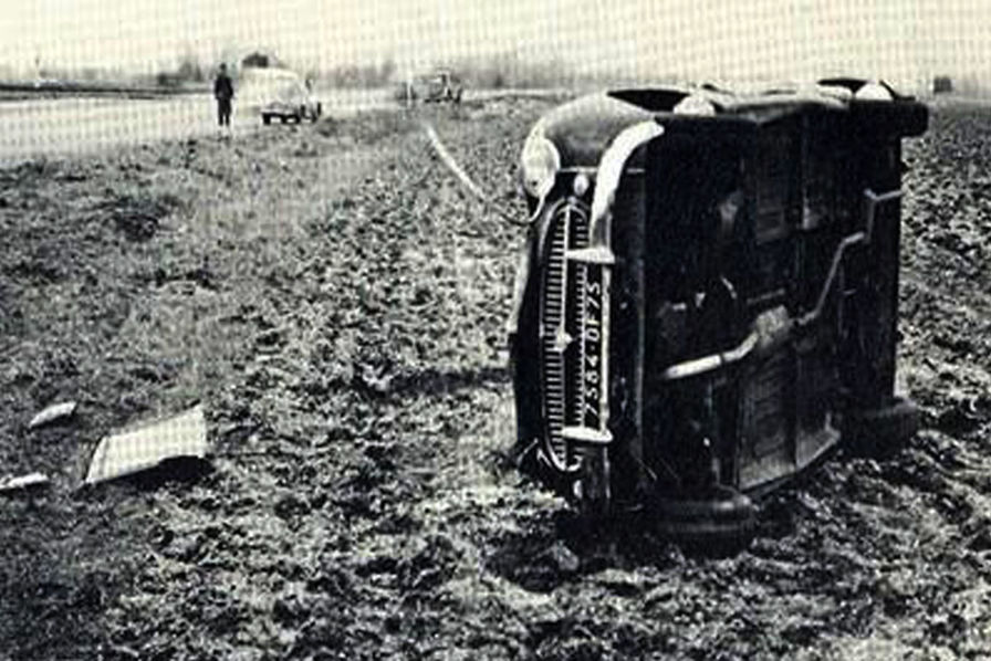 Février 1955, Pierre Lefaucheux doit se rendre à Strasbourg pour une conférence auprès des étudiants. Le directeur de la Régie pense d’abord à y aller en train, prend son billet puis se ravise et prend le volant de sa Frégate. Le trajet vire au drame quand, surpris par une déviation, Lefaucheux braque puis freine sur une plaque de verglas. La Frégate part en tonneau et son conducteur meurt sur le coup. Ironie de l’histoire, la voiture n’est pas très endommagée et a bien résisté, c’est la valise placée sur la banquette arrière qui tue Lefaucheux https://www.lemonde.fr/m-voiture/article/2015/09/25/fregate-la-berline-maudite-de-la-regie-renault_4771529_4497789.html (Frégate, la berline maudite de la régie Renault) https://www.carjager.com/blog/article/renault-fregate-naufrage-dans-le-haut-de-gamme.html (Renault Frégate : naufrage dans le haut de gamme) |