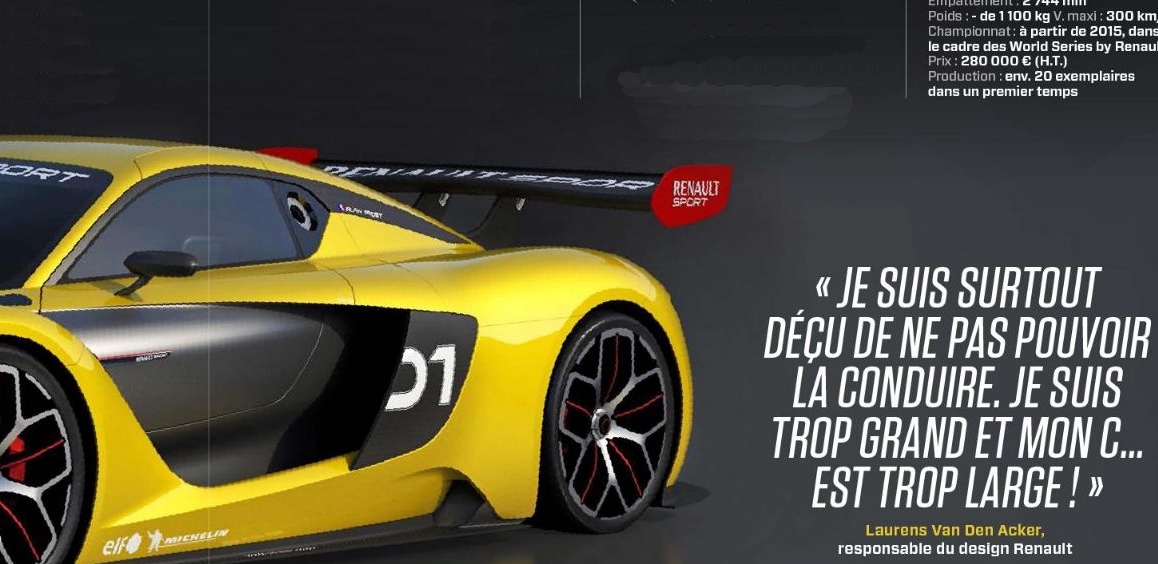 Ouais mais la berlinette serait bien bien accessible qu'une supersportive avec moteur de gtr... C'est sûr mais là on parlerait plus d'un produit "image", un peu comme les Clio V6, la Renault Spider etc... mais Renault doit être échaudé des échecs à répétitions entre wind, avantime, vel satis, à moindre mesure be-bop (a lula). Cela dit ce serait envisageable de sortir ça en série sur une base de GTR, ils ne partiraient pas d'un développement ex-nihilo donc s'ils avaient voulu ils auraient pu ! mais vu ce qu'ils ont investi dans la renaissance de la marque Alpine (dont le 1er modèle est retardé d'1 an chaque année Dernière édition le 24/10/2015 à 16:54 par Stiletoes1, édité 1 fois |