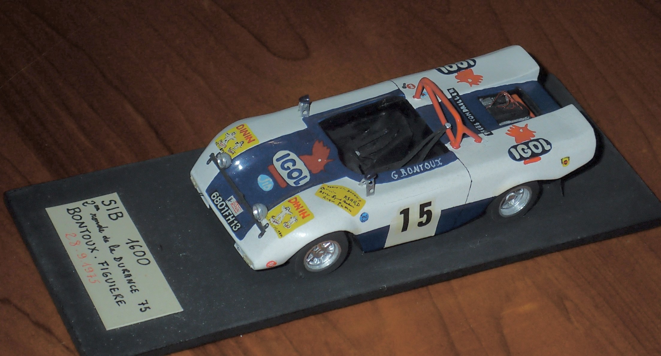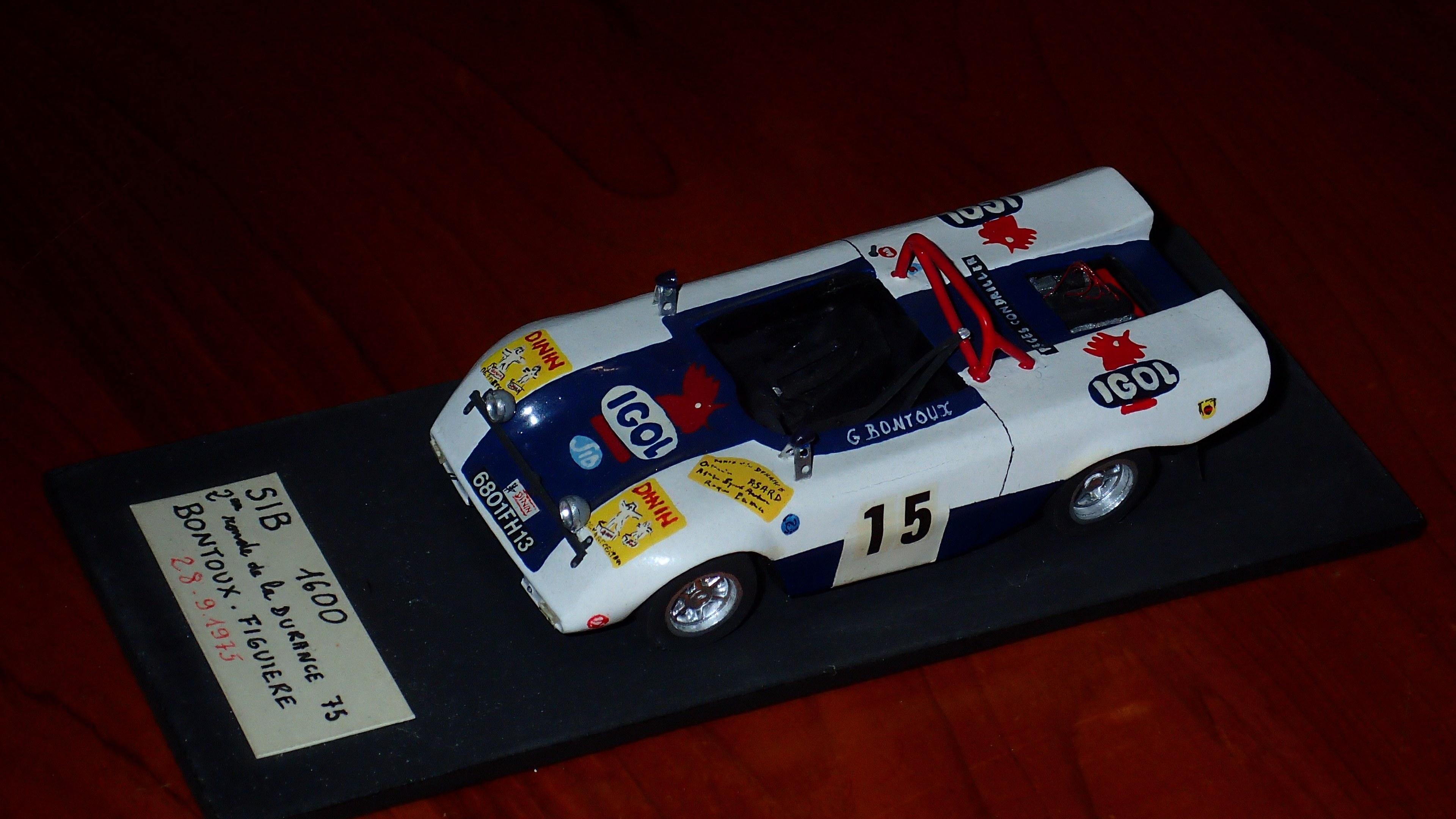 @ roland @efbe Cette barquette fabriquée par Mr De Baulieu dans les Basses-Alpes était dotée de train R8 Gordini de même que le moteur. (deuxième version de la SIB). voir la première en pj Elle a évoluée en s'appelant SIMKIT avec un moteur Simca. Elle a même eu droit à un JRD pour la coupe simca shell( un peu élargie il est vrai). Elle a couru en rallye avec notamment André Pascal de Rosans (05) , Bontoux du 13 et d'autres encore. Elle était immatriculée en "proto". Il en reste quelques unes qui roulent en côte et en circuit historique. Mr de Beaulieu m'a offert son support moteur qu'il utilisait pour ses moteurs gordini. Ah, s'il pouvait parler.... Voilà, je me suis lâché! Une voiture de course fabriquée dans mon département, il n'y en a pas eu beaucoup! Rassurez-vous, j'ai fait celle de Bontoux (en carton quand j'étais plus jeune) , mais un kit se profile si je me résous à m'y remettre.... ![]() |