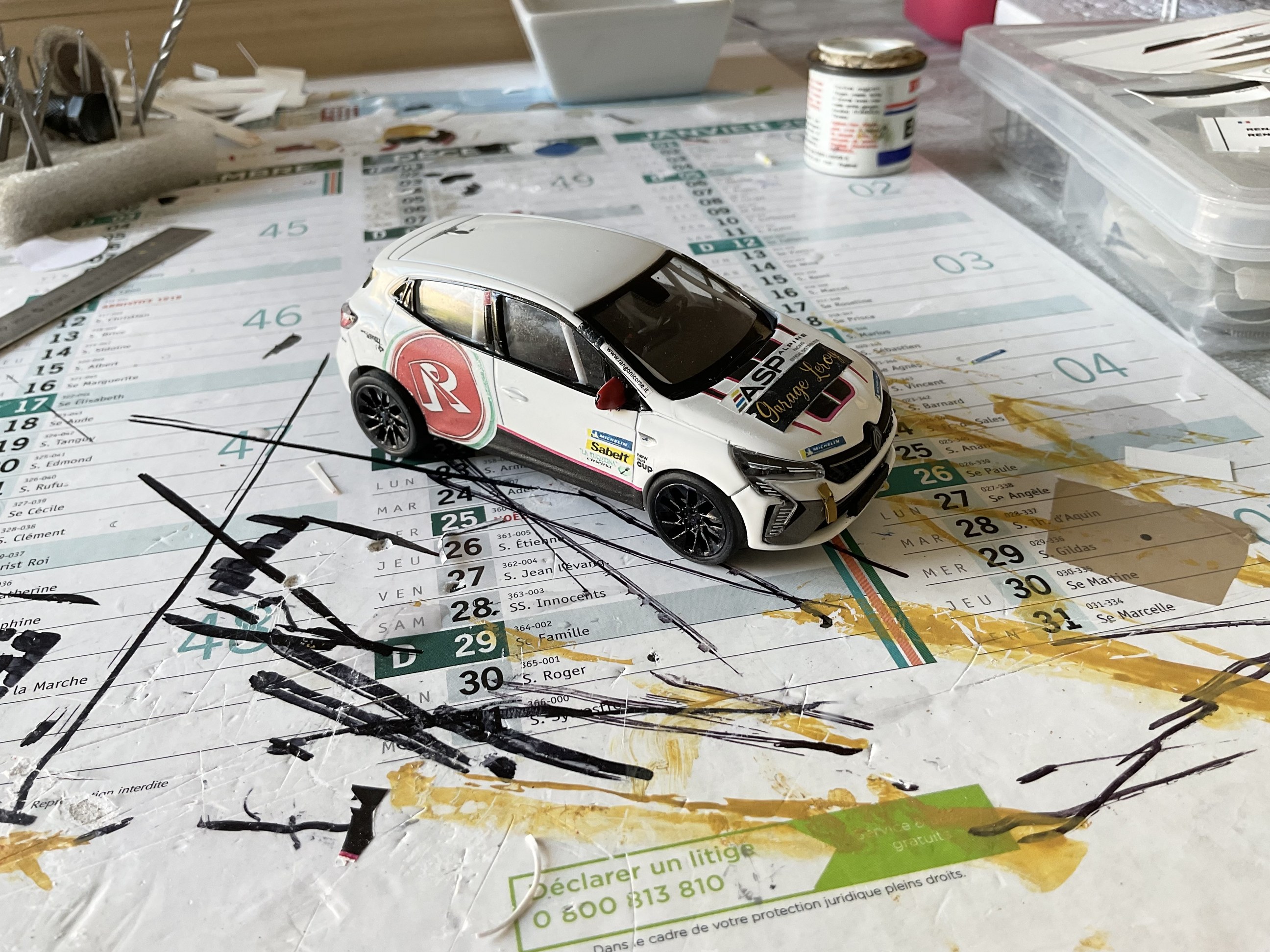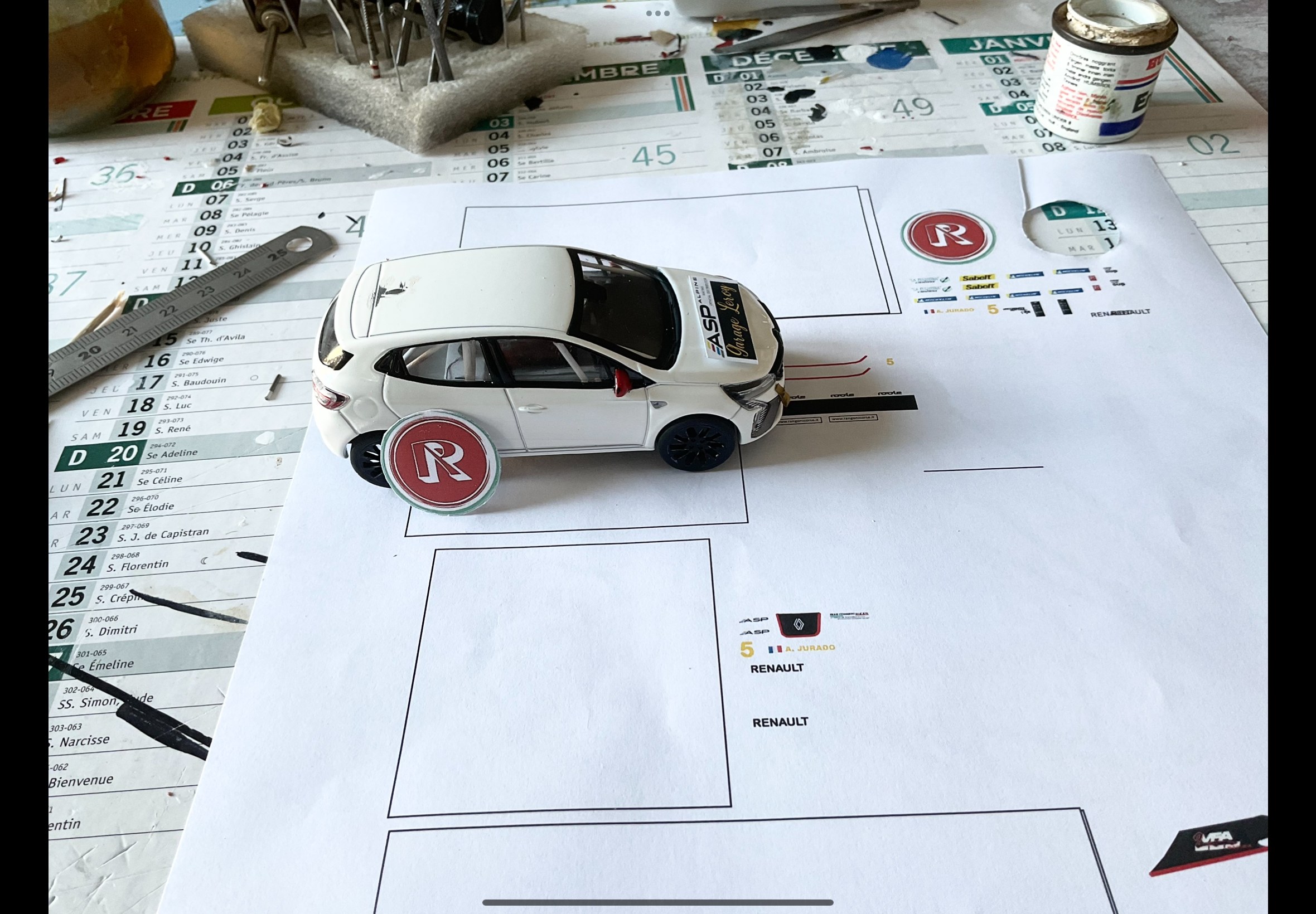 Citation de rallyeroland : « Toujours sympathique ces montées historiques. Il y a souvent de petites pépites, la preuve chez toi aussi ! Rien trouvé en jantes dans mon stock en « 8 petits mm » François. Sur ces autos (Norev ) Simca jantes en 13 pouces , rien de choquant malgré une valeur de 8,6 ? Impossible (ou trop compliqué) de faire l’arceau cage complet sur celle-ci. Alors une partie châssis, l’autre sur le pavillon. Il va être le moment de finir de préparer la déco et d’imprimer. Pour cela il me faut faire venir un dépanneur car message d’erreur « Imprimante hors connection » alors que tout est branché et qu’elle marchait avant. Amitiés à tous »@rallyeroland Compliqué mais tu t'en sors très bien Roland .... Heureusement ils sont blancs comme la caisse. Je répond en même temps à ce que tu montres des décals en cours : superbe aussi ! Tu es fort pour le dessin. Encore une jolie auto à venir ..... Pour les roues j'avoue que comme je ne suis pas habitué à ces dimensions (rare en TT ....) je ne sais quoi dire. Je verrai quand j'aurais reçu les miennes. |