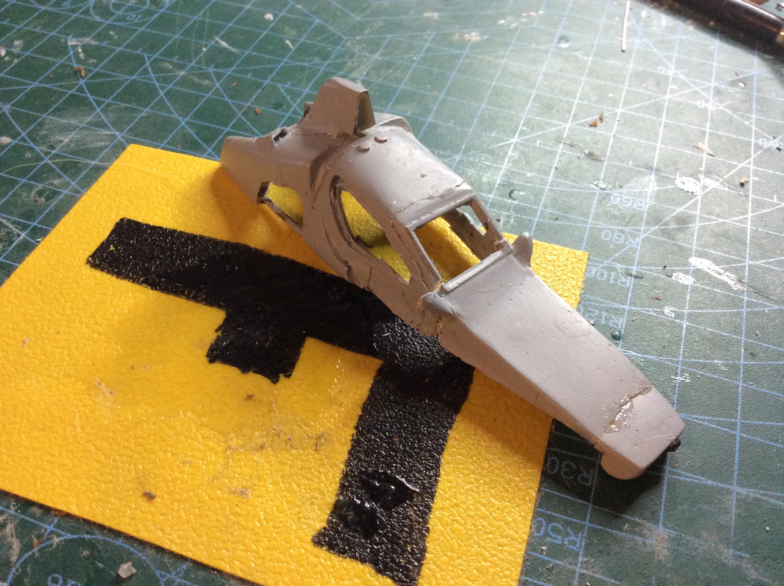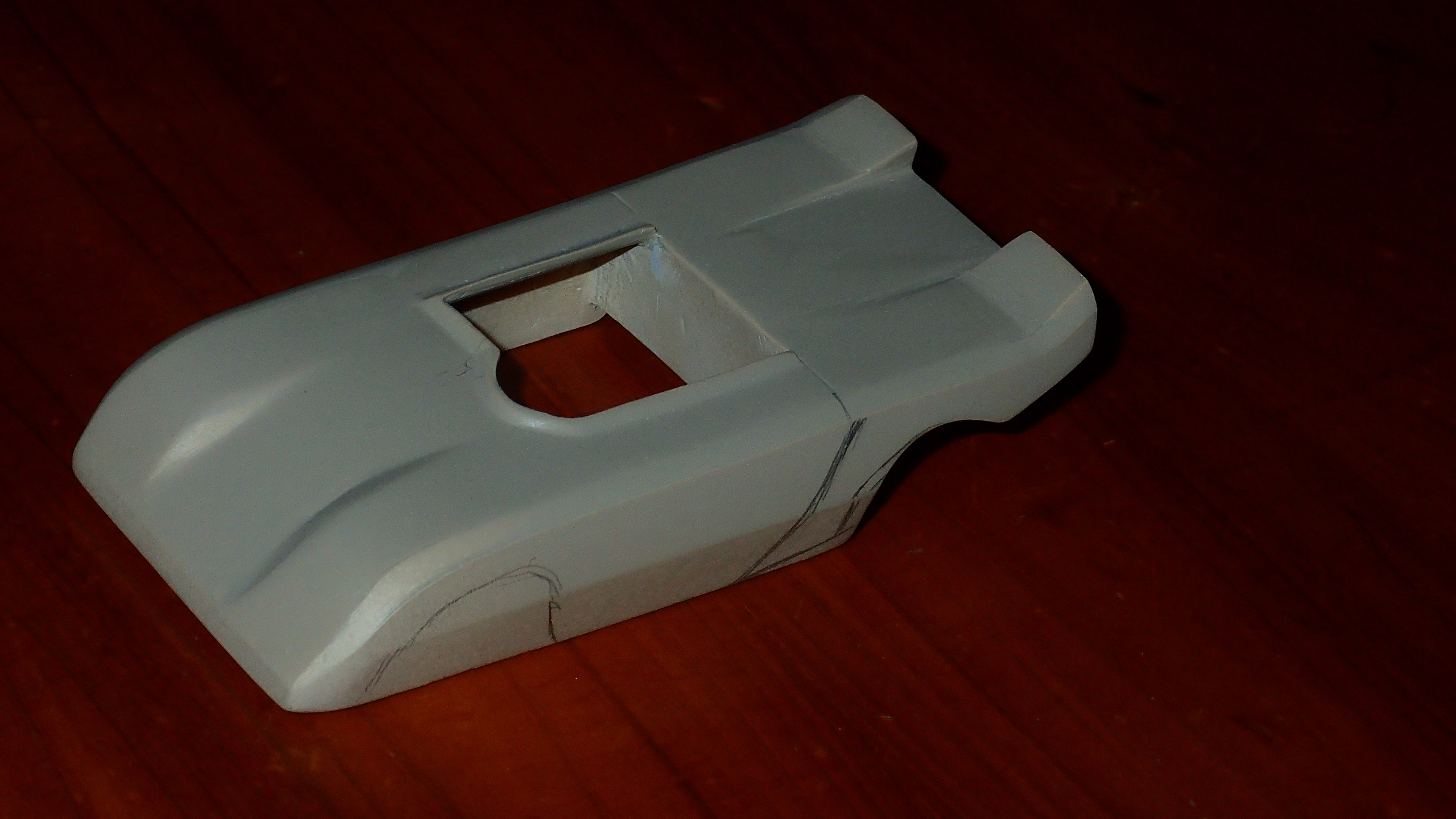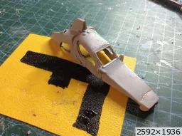 Je voulais l'envoyer pendant votre sommeil, pas pu .... J'ai avancé la carrosserie en tenant compte de la remarque de JP, et de celles que j'ai noté par ailleurs. Je vais cette fois attendre de pouvoir mettre un châssis sur roues. Donc si je trouves un châssis Heller ce serait super, sinon je verrai. Sans ça pas moyen de trouver une assiette acceptable (le châssis devra remonter ????) et finaliser les découpes d'ailes. Je peux encore avancer un peu sur la Sciancalpore. |