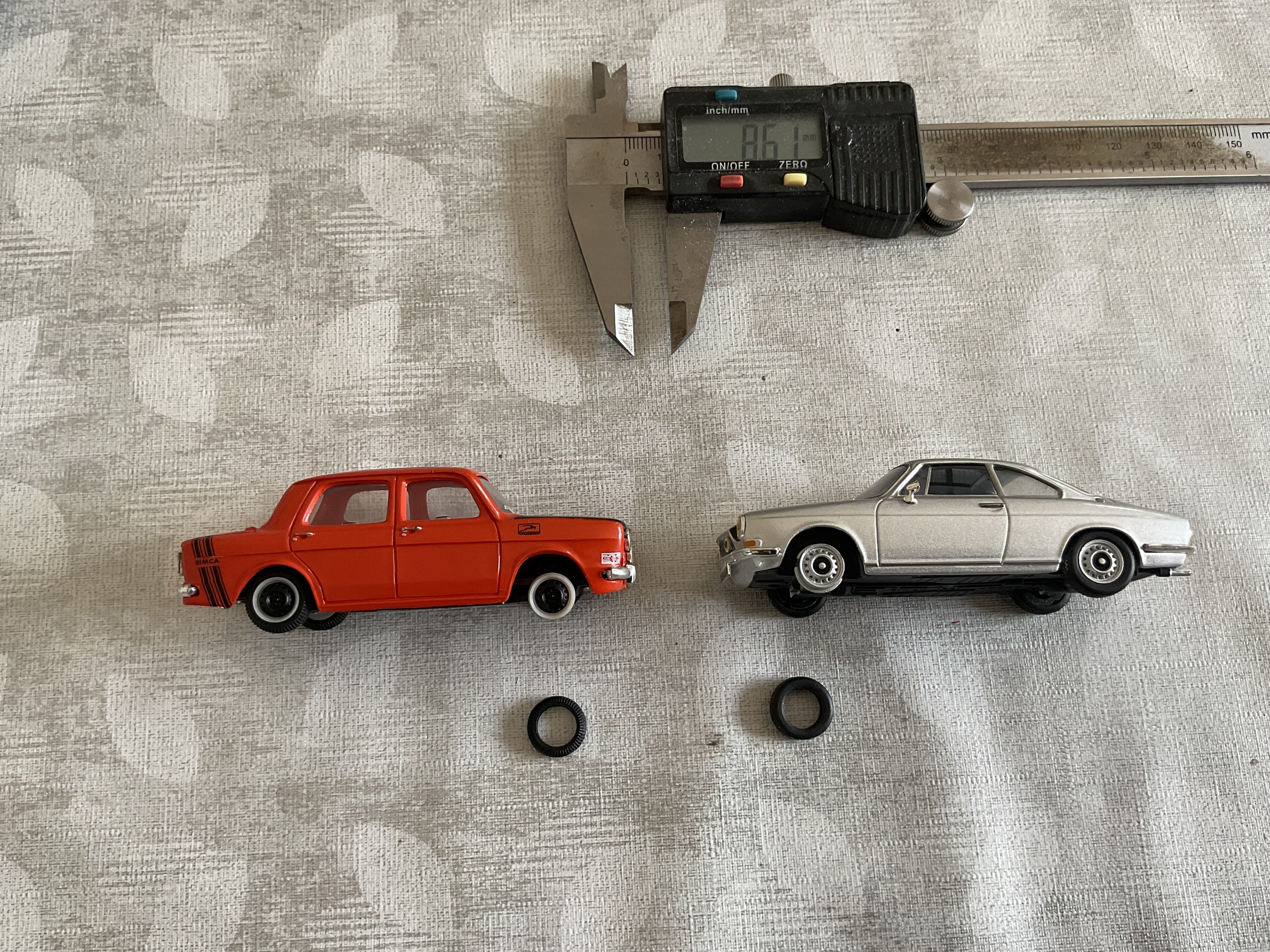 Toujours sympathique ces montées historiques. Il y a souvent de petites pépites, la preuve chez toi aussi ! Rien trouvé en jantes dans mon stock en « 8 petits mm » François. Sur ces autos (Norev ) Simca jantes en 13 pouces , rien de choquant malgré une valeur de 8,6 ? Impossible (ou trop compliqué) de faire l’arceau cage complet sur celle-ci. Alors une partie châssis, l’autre sur le pavillon. Il va être le moment de finir de préparer la déco et d’imprimer. Pour cela il me faut faire venir un dépanneur car message d’erreur « Imprimante hors connection » alors que tout est branché et qu’elle marchait avant. Amitiés à tous ![]() |