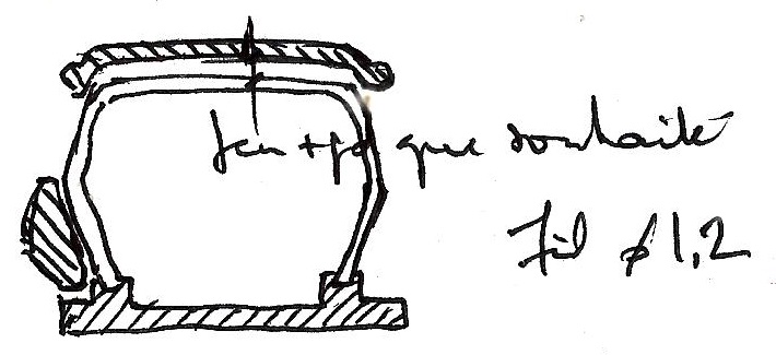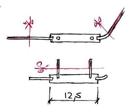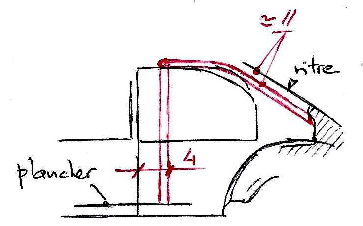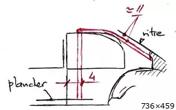 Une petite demi heure ce matin avant de partir pour la journée, pas grand chose donc .... en rapport avec l'Opal. Apprêt sur le tableau de bord et la petite écope du capot moteur finalisée (qui sera donc bien séparée). Alors ce soir portion congrue, juste quelques mots sur la DS verte .... - pose compteurs sur PdB : ok - pt rouge feutre Edding sur un bouton carré (voyant d’alerte) - mep volant Reste à voir si la PdB collée sous la baie de pare-brise (carrosserie) sera compatible avec le châssis. - pose harnais - manchons préparés pas posés, j’attends que ce soit bien sec. - roues : les VW ne vont décidément pas. Je vais les remplacer par celles en WM or Citroën) et je les peindre silver. Attention : les moyeux sont pour des axes Ǿ 2 mm alors que les axes montés VW sont de Ǿ 1.5 mm. - bouchon de Manx 16B pour le remplissage carburant. - arceau : passe au milieu de la custode en élev. Et // pied milieu. - il y a des jambes de force + diagonale à l’AR en appui sur la tablette : orange - récup 2 axes Ǿ 2 mm L 34.6 mm : donnent roues en place 39.3 et 39.6 mm (sur exter roue) - nettoyage et finition des 4 roues Citroën en WM - 1 couche silver Kurobushi - creusé la gorge pour l’axe AR à Ǿ 2 mm en essayant de le rentrer un peu. Je ne saurai ce qu’il faut faire que quand j’aurais l’essieu monté. - arceau : Cu Ǿ 1.2 mm - gabarit pour arceau central : => CP ep 0.5 mm ébauchée suivant ces cotes et à l’arrivée : - mise en forme arceau central : hauteur calculée / bord sup longeron - essai jbe de force G : même fil Ǿ 1.2 mm Cu placé tout au bord de la tablette - ce qui donne : à suivre ..... |