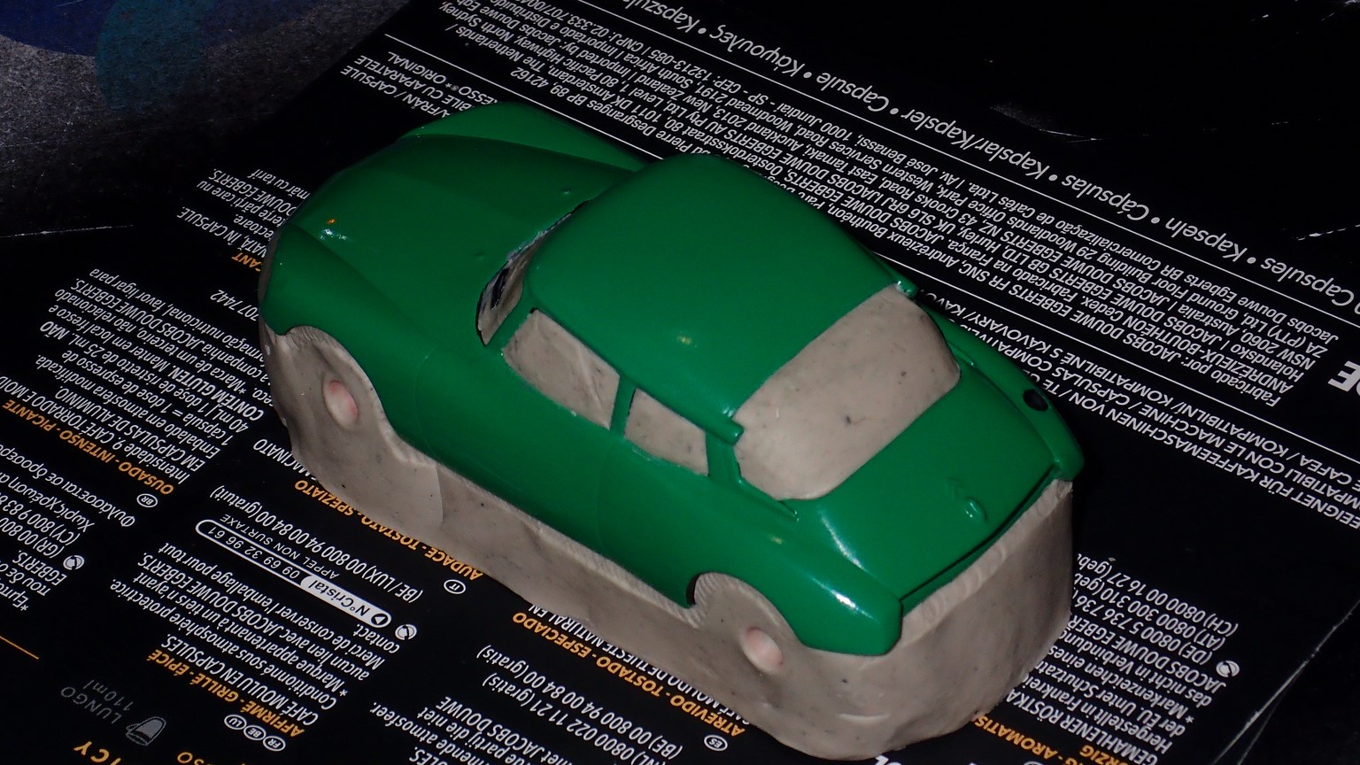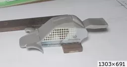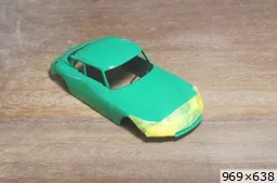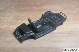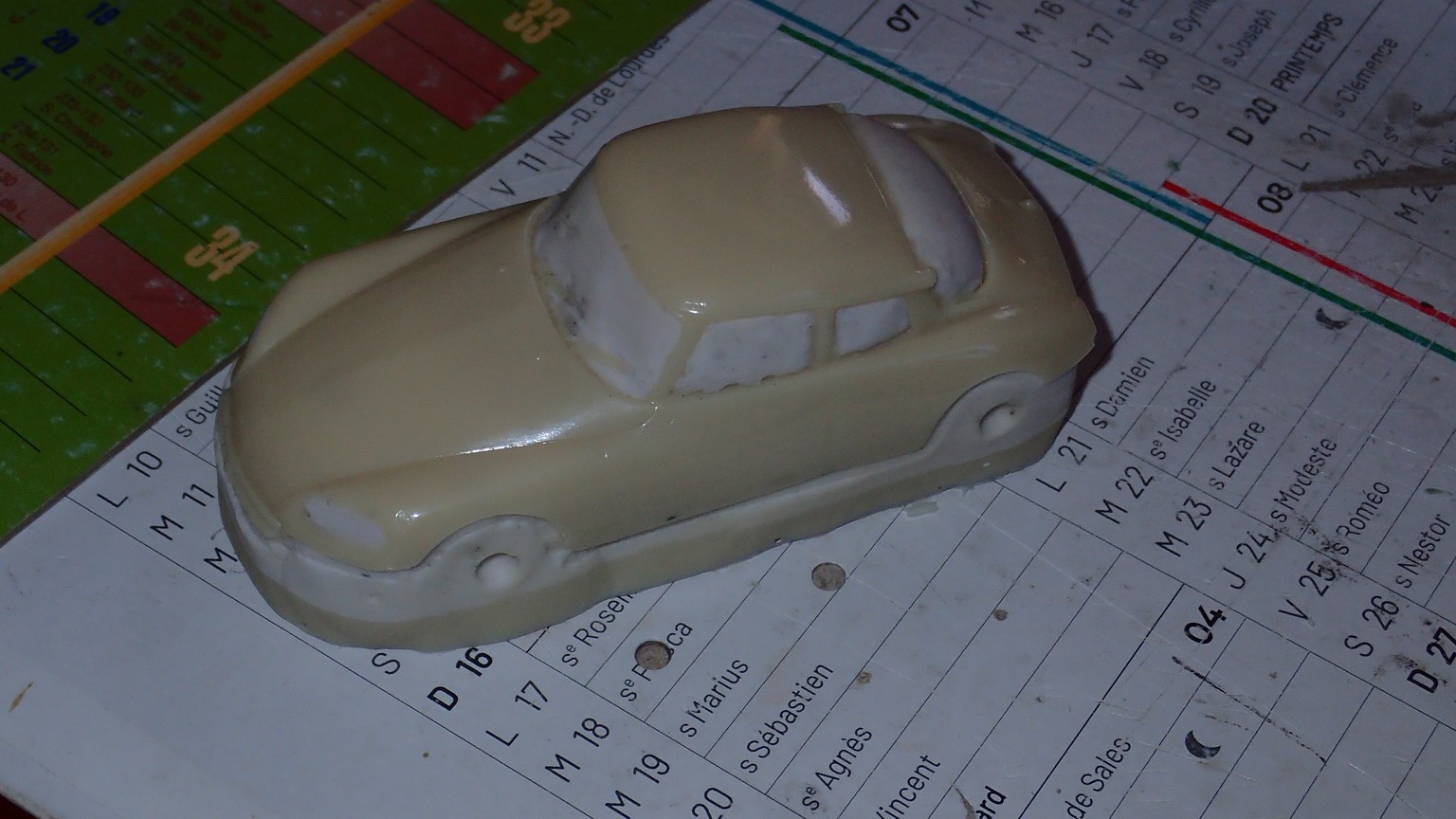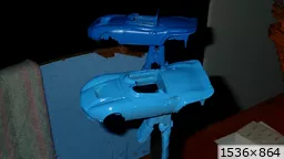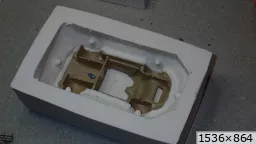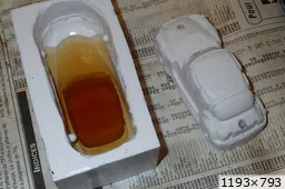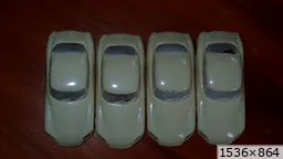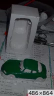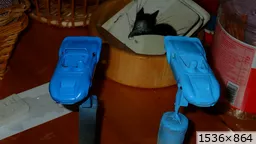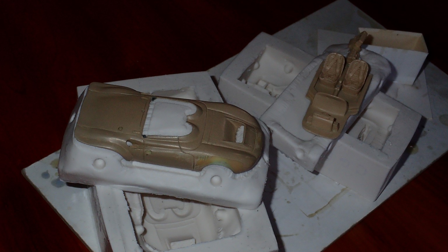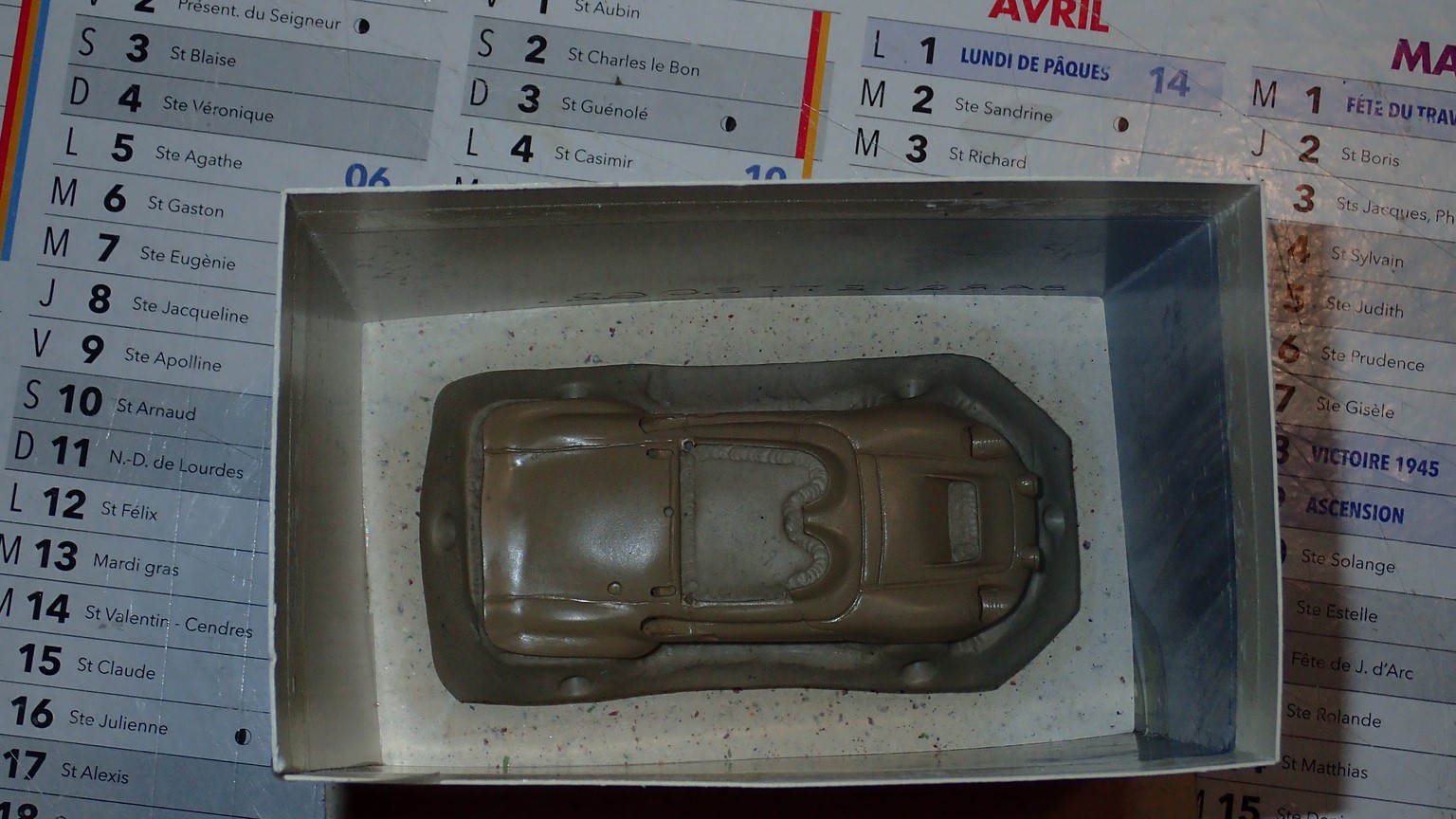 François attend la mise sur roues .... ça va venir, sois tranquille .... pour l'instant la suite c'est ça : - retiré momie, le chrome est très bien. - pose 2è support bavette : carré de 1 mm - 1 passe noir satin Humbrol au pinceau, sous l’AV et le dessous du bloc phares Maintenant c'est François qui s'y colle. De nouveau le travail d'équipe est en marche .... Donné à Nico la carrosserie (peinte !) pour que François la moule pour JP. Demandé de mouler avec les EV. Prévenu que le toit est un mille feuille très fragile, je croise les doigts ….. piukinen Petit travail du soir; le coffrage sèche! Coulée demain matin. @piukinen Bon sang que ça fait plaisir de voir son travail dans la plastiline au réveil ..... J'adore ta façon de préparer tes moules François, c'est propre, c'est net, ça sent le travail sérieux. Pas étonnant que tu aies de si bons résultats. D'ailleurs je m'en rends compte avec la R4 de Collet. Une question me vient : pourquoi ta boite est-elle si haute ? JP va être surpris quand il va revenir ..... et content j'espère ..... piukinen tout simplement car je passe mes moules à la pompe à vide pour débuller un max; et donc ça expanse beaucoup. Allez, je vais couler , je boirai le café après! voilà l'installation; au café maintenant! @piukinen Une première pour moi François, je n'avais encore jamais vu à quoi ressemblait l'émulsion après dégazage. Effectivement il vaut mieux prévoir large, ça je le savais au vu de moules prévus pour. Impressionnant ! Merci pour ces images plus que parlantes. Bon, le café a dû t'empêcher de dormir alors ..... tout ça s'annonce super bien, ce que je suis pressé de voir maintenant c'est la sortie de moule du proto .... Beau travail François Les roues tu fais comme moi, tu mets le plan de joint en dessous pour ne pas qu'il gène en cas de léger désalignement entre les deux parties du moule, sauf que mes moules ne sont pas aussi parfaits. Si je devais m'y remettre je saurai sur qui prendre exemple ..... piukinen @ balivernes démoulage OK, pas de bobo, un bon dégraissage s'impose. Pour le coulage: 1:je vais essayer de remplir le moule (pas à fond!) et de descendre le contre moule (comme les moules de petit proto) 2:ou de faire mes trous de remplissage avec un emporte-pièce au niveau des puits de vissage (c'est ma méthode, coulage avec entonnoir) et éventuellement ajouter quelques évents. 3:essayer de remplir le dessus du moule et passer à la pompe (ça me laisse souvent des bulles dans les bas de caisse) Je crois que les pros faisaient comme ça , mais avec une pompe très puissante et des évents découpés au cutter sur les côtés. @piukinen Bravo François, merci d'avoir préservé le proto. J'espère que j'arriverai à récupérer au moins le vert, le reste c'est pas grave. à suivre ..... |