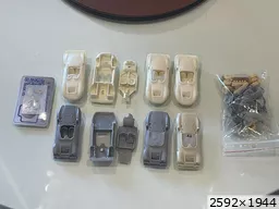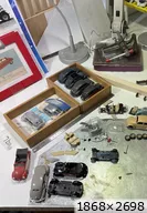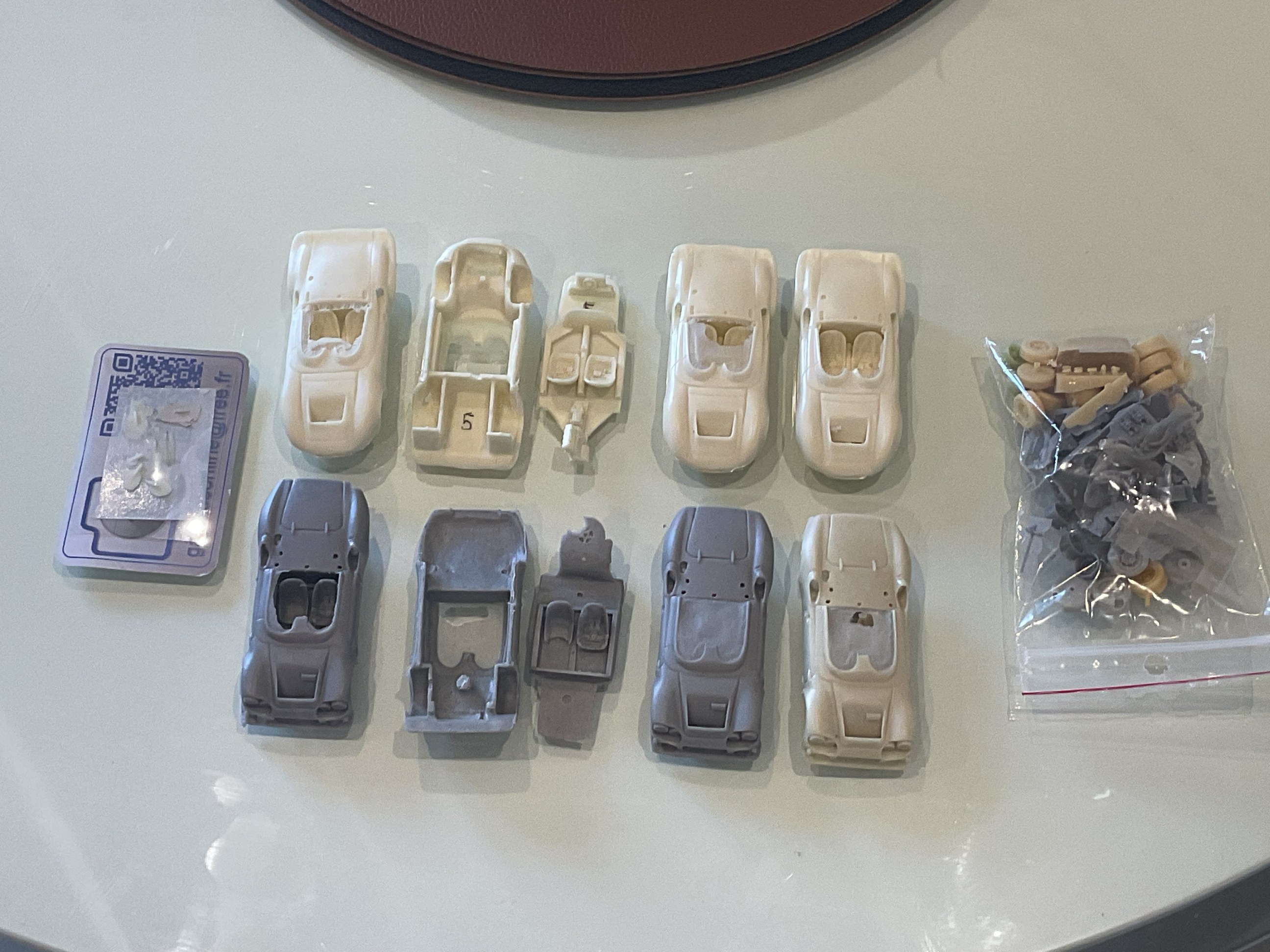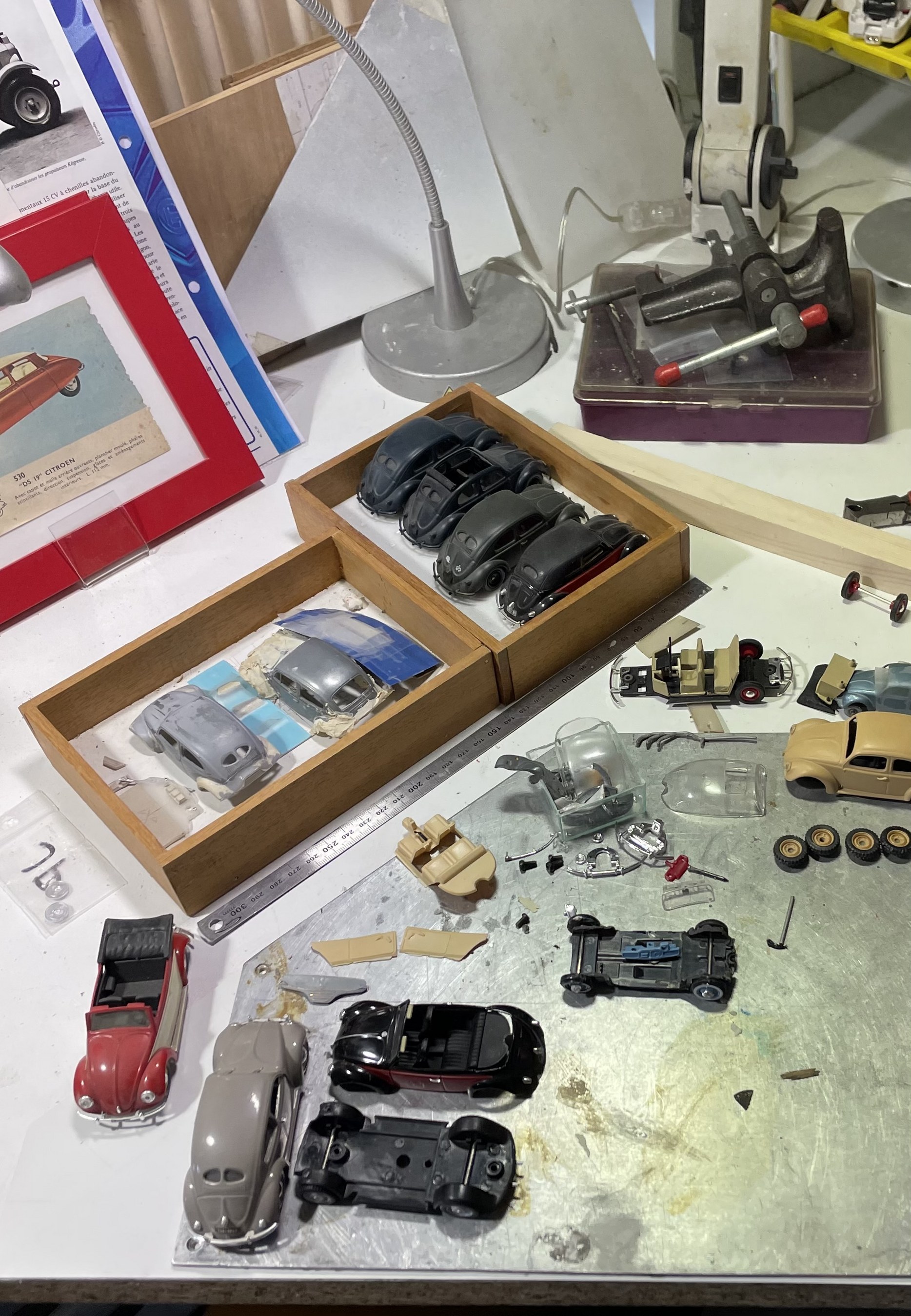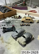 Bonjour, La reprise est vite dite, il faut trier les mini pièces de chaque voiture. Là je suis perdu dans les cox Nous pouvons voir que les bugster vont être repris mais je voulais voir si rien n'avait disparu, mais tout était renversé dans le carton Ouf parce que je voulais faire aussi des Bugster en cabriolet .... donc réfléchir à faire un moule de l'arrière qui m'a donné beaucoup de mal (voir les précédents posts) pour faire des pièces à greffer sans trop de problèmes @Roland Super tes petites barquette Simca mille travail toujours soigné sur les moteurs. Pour finir je recherche toujours des pneus agricoles pour la 2cv trial..... que nenni rien au 1/43 ème @ Gérard Hum je crois que je vais attendre pour faire ta DS courte, j'ai peur de me planter quand on voit le travail que tu as fait dessus ... un challenge de plus. Bonne journée a tous |