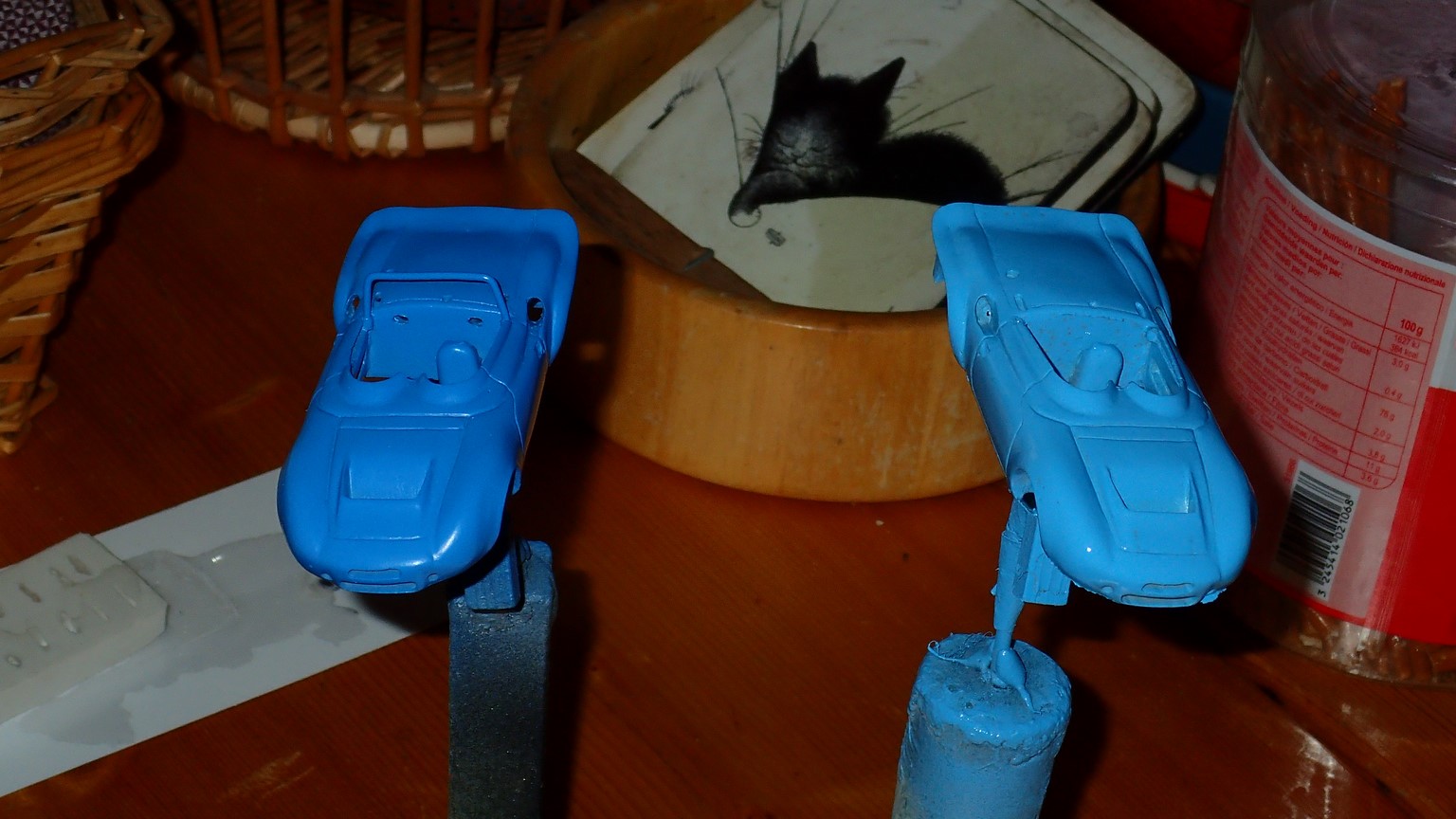 Hello folks ..... petite avancée ce matin, mais maintenant c'est la sieste ..... le châssis de l'Opal est à priori prêt à mouler et le pare-brise est en place sur le Punch. Je viens de passer ce qui devrait être la dernière couche d'apprêt sur le châssis : obligé de charger un peu car le temps n'est pas top, j'espère que ça va aller .... Le pare-brise cette fois est propre. Trois points de collage : deux en haut (le pare-soleil ça aide bien !) et un en bas au milieu. Je croise les doigts ..... Bonne journée les amis ..... |
