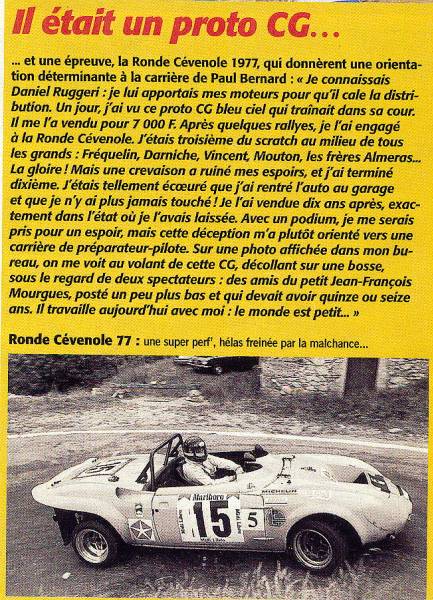 barquette CG 1300 à compresseur première version: Paul Bernard Ronde cévenole 1977 deuxième version : Franquès Ronde cévenole 1978 ![]() |