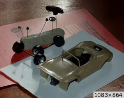 Citation de JPD : « Bonjour, La reprise est vite dite, il faut trier les mini pièces de chaque voiture. Là je suis perdu dans les cox Nous pouvons voir que les bugster vont être repris mais je voulais voir si rien n'avait disparu, mais tout était renversé dans le carton Ouf parce que je voulais faire aussi des Bugster en cabriolet .... donc réfléchir à faire un moule de l'arrière qui m'a donné beaucoup de mal (voir les précédents posts) pour faire des pièces à greffer sans trop de problèmes @Roland Super tes petites barquette Simca mille travail toujours soigné sur les moteurs. Pour finir je recherche toujours des pneus agricoles pour la 2cv trial..... que nenni rien au 1/43 ème @ Gérard Hum je crois que je vais attendre pour faire ta DS courte, j'ai peur de me planter quand on voit le travail que tu as fait dessus ... un challenge de plus. Bonne journée a tous » @JPD Voilà qui sent bon la reprise ..... même si c'est vite dit Et en premier le Bugster. Le cabriolet c'est d'imagination ou il y en a eu ? Je ne crois pas en connaitre. J'ai cherché sur internet et j'ai découvert qu'il y a eu un concept car : le E-BUGSTER. Pas vraiment dans l'esprit du Bugster initial ..... mais "L'histoire du véhicule électrique E-Bugster remonte aux nobles aspirations de la voiture du peuple et au nom même de Volkswagen ; il est donc tout à fait logique que l'E-Bugster semble destiné à former la base d'une gamme de véhicules électriques E-Bugster." Décidément aujourd'hui on peut faire dire n'importe quoi à n'importe quoi ! Mais le made in Elbeuf sera un vrai, lui ..... Pour la DS, je suis navré de t'avoir fait peur, Jean-Pierre. Ce sont les notes de la création du modèle, tu n'auras pas à faire tout ça. La carrosserie est faite, si tu as une base Norev qui va bien, ce sera juste de l'adaptation. Une transfo en quelque sorte que tu aurais mené d'après tes propres critères avec juste quelques cotes et indications qui me paraissaient utiles. Une fois de plus je vois que je manque complètement de psychologie et de pédagogie. Bon, on approche de la fin, je vais la mener au bout, mais je suis désolé d'avoir eu cet effet négatif. C'est bien que de temps en temps quelqu'un mette les pendules à l'heure ..... |