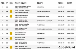 Oui je regarde aussi l'émission d'1h sur l'équipe tv tous les soirs, c'est très bien. Si la Dacia est solide en 2eme semaine, Nasser semble avoir très bien joué sa première semaine, il va être dur à concurrencer bien que les écarts sont encore relativement faibles jusqu'à Loeb. |