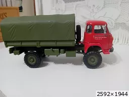 En fait, j'ai fini par trouver les dimensions: Longueur: 6800 mm, au 1/43ème: 158 mm Largeur: 2500 mm, au 1/43ème: 58 mm Hauteur (cabine): 2640 mm, au 1/43ème: 61.4 mm Et il est bien au 1/43ème! |
