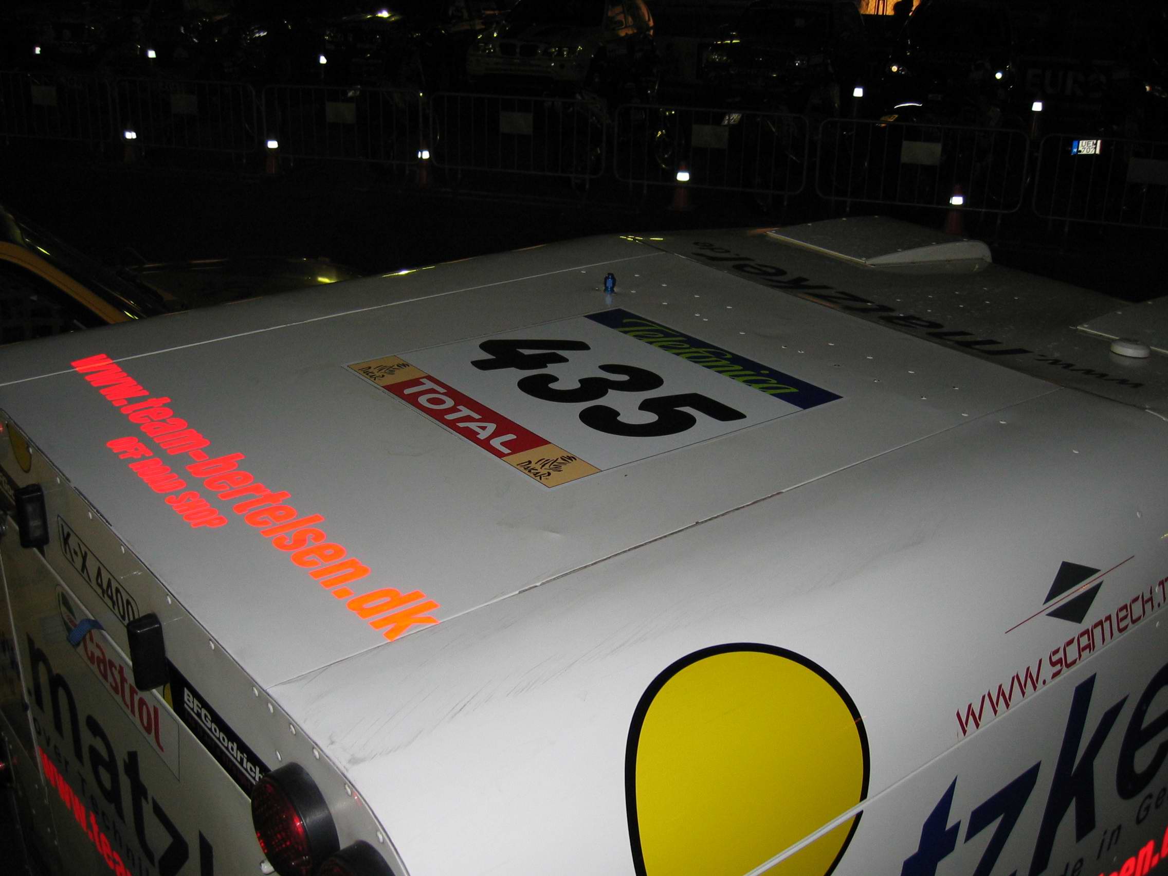 Super, tu aurait du juste couper le bandeau pare-soleil sous les bandes verte et jaune BP et lui mettre des bavettes !!!!! |