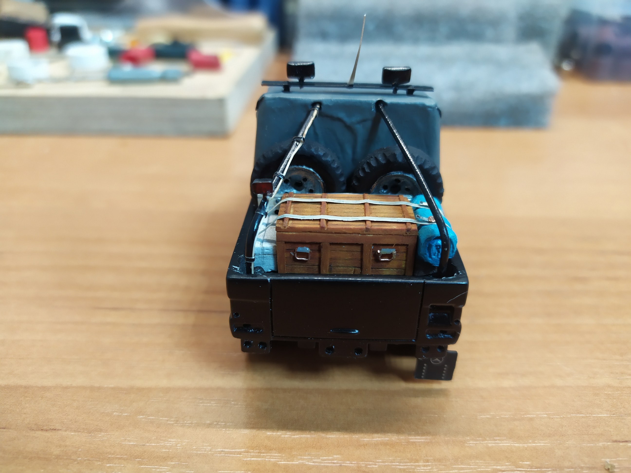 C'est quoi la caisse à l'arrière ??? Deux malles vert foncé en long, plus un bidon d'eau ![]() |