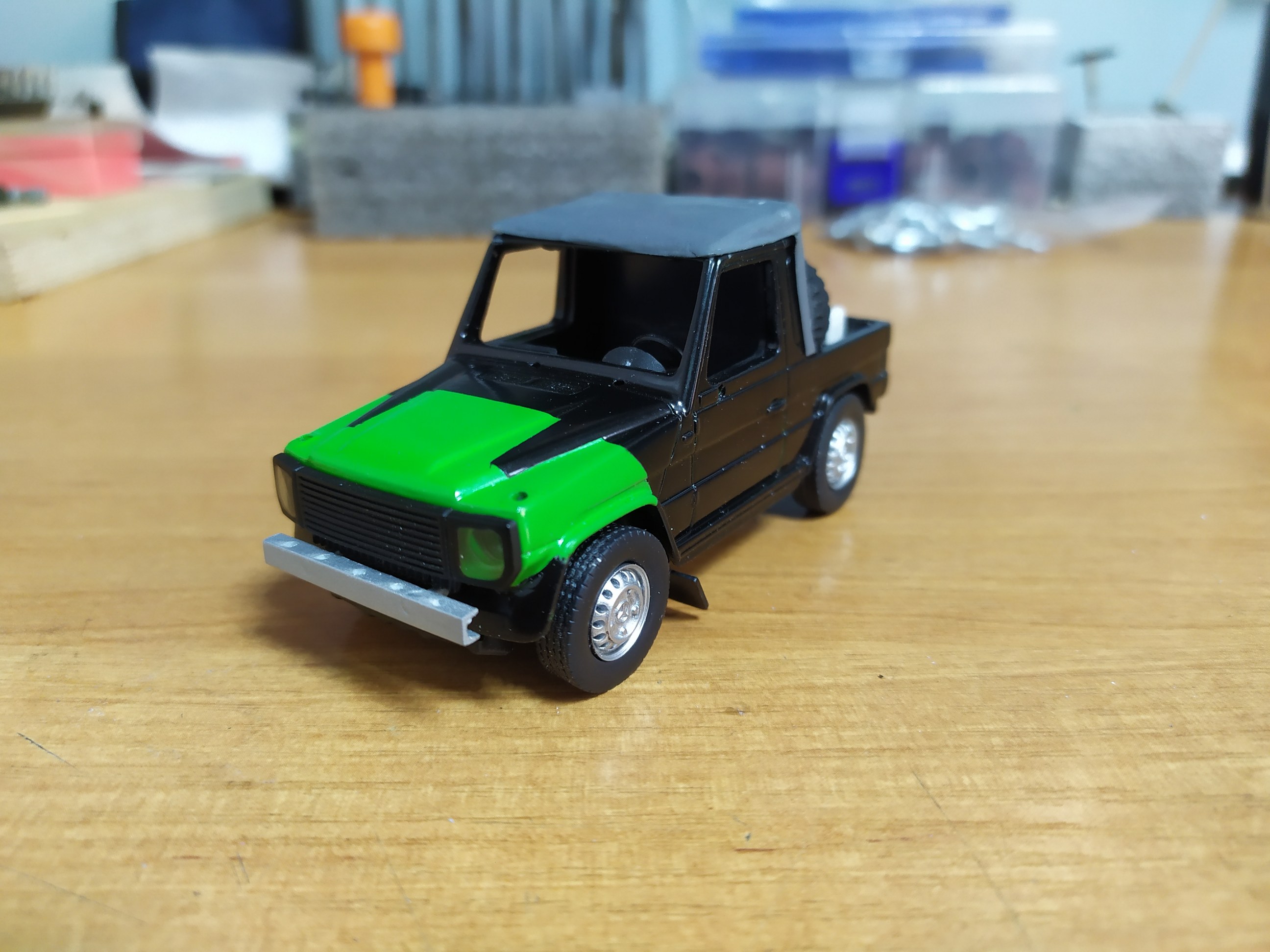 SALUT A TOUS Voila ce que j'ai peu faire base un peu abimee au niveau des vitres (4€ sur le bon coin) et decals fait maison j'ai vu des modeles sur le net et sur les forums donc je risque de revenir pour quemander encore des photos a+ alain |