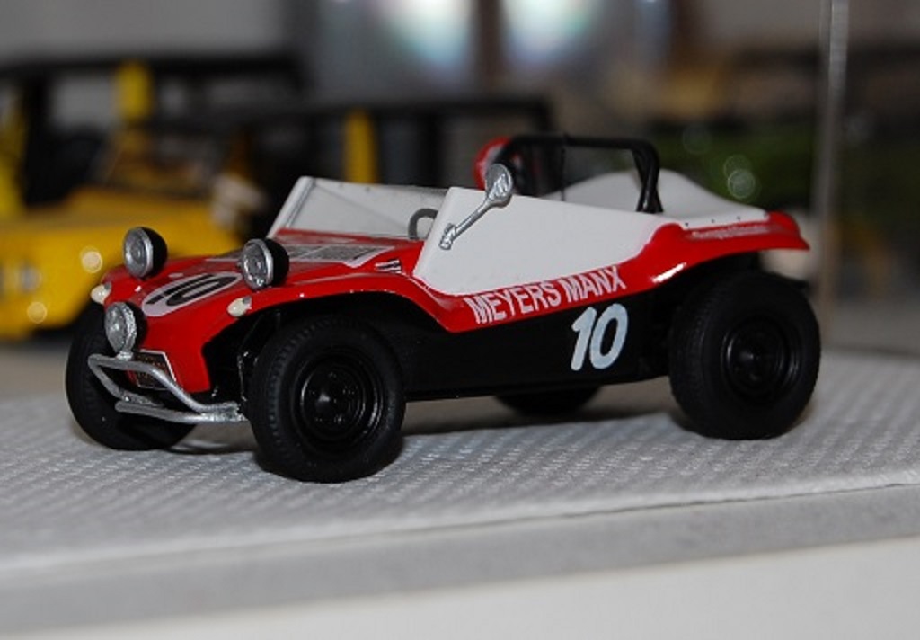 J'ai dû dépasser la dose prescrite .... je continue sur un autre post. - Con-Ferr 1968 par Spark : représente sans le dire celui du film "l'affaire Thomas Crown" - le même vu par Norev Jet Car : - GP Beach Buggy du film James Bond 1981 (presse collection James Bond) : Voilà. Je ne prétend pas être exhaustif, il doit y en avoir d'autres que je ne connais pas - et que j'aimerais bien connaitre du coup Ne possédant pas tous ces modèles les photos sont tirées d'internet, si quelqu'un s'oppose à son utilisation ici merci de me le dire, je ferai le nécessaire. Le Meyers Manx est - à tout Seigneur tout Honneur - grandement représenté. J'en ai oublié un qui date de 2005 env : - Manx vainqueur Mexican 1ooo 1967 par arts design creations (kit) - et un autre encore : le Puma du film " Dernière édition le 07/11/2024 à 09:04 par balivernes, édité 3 fois |
