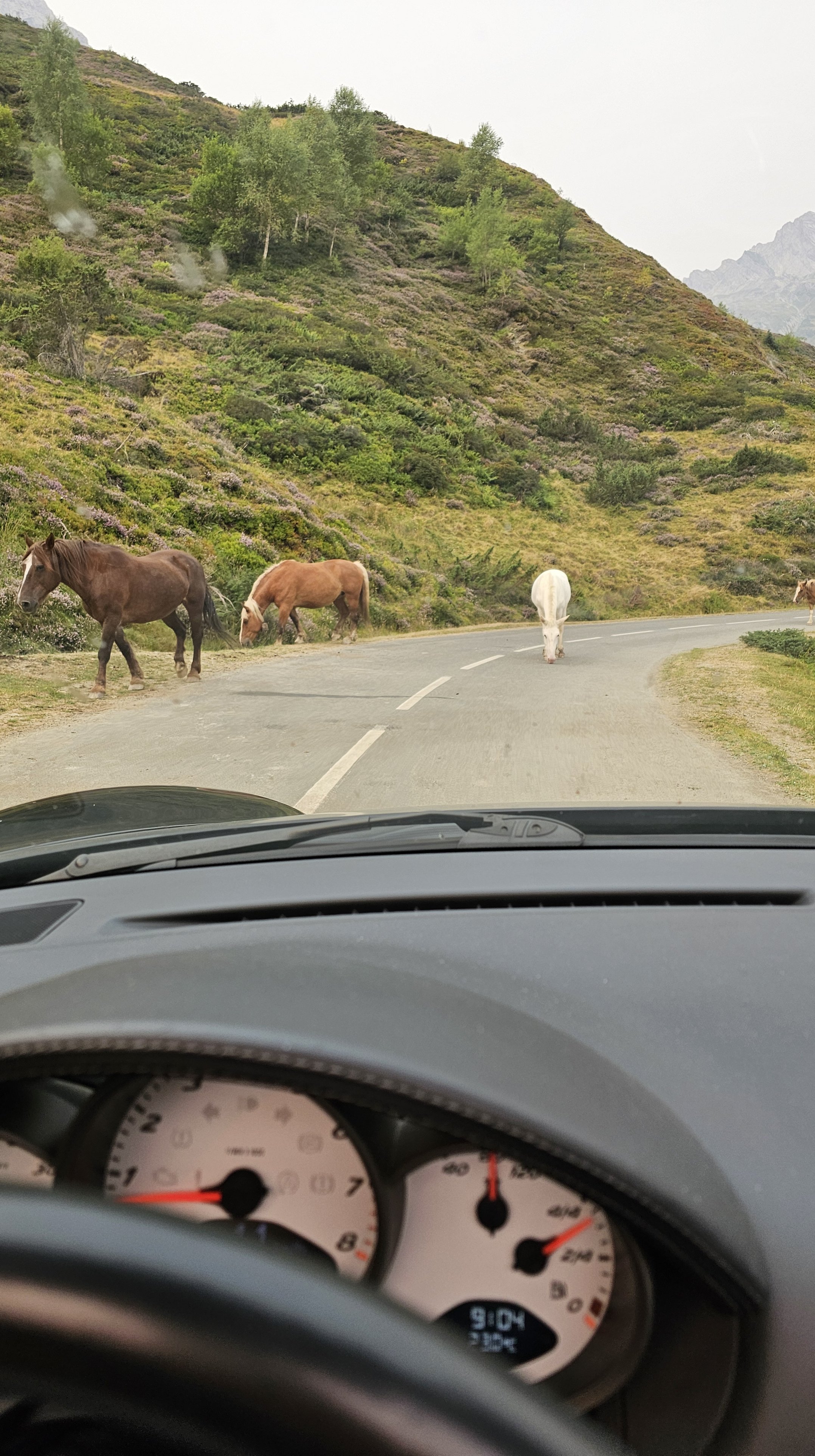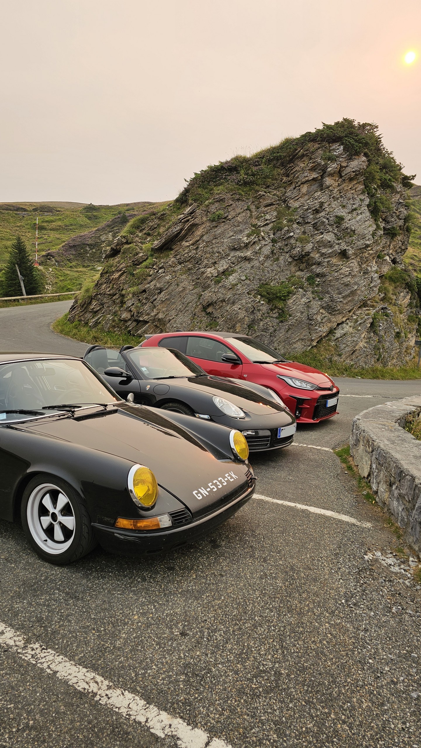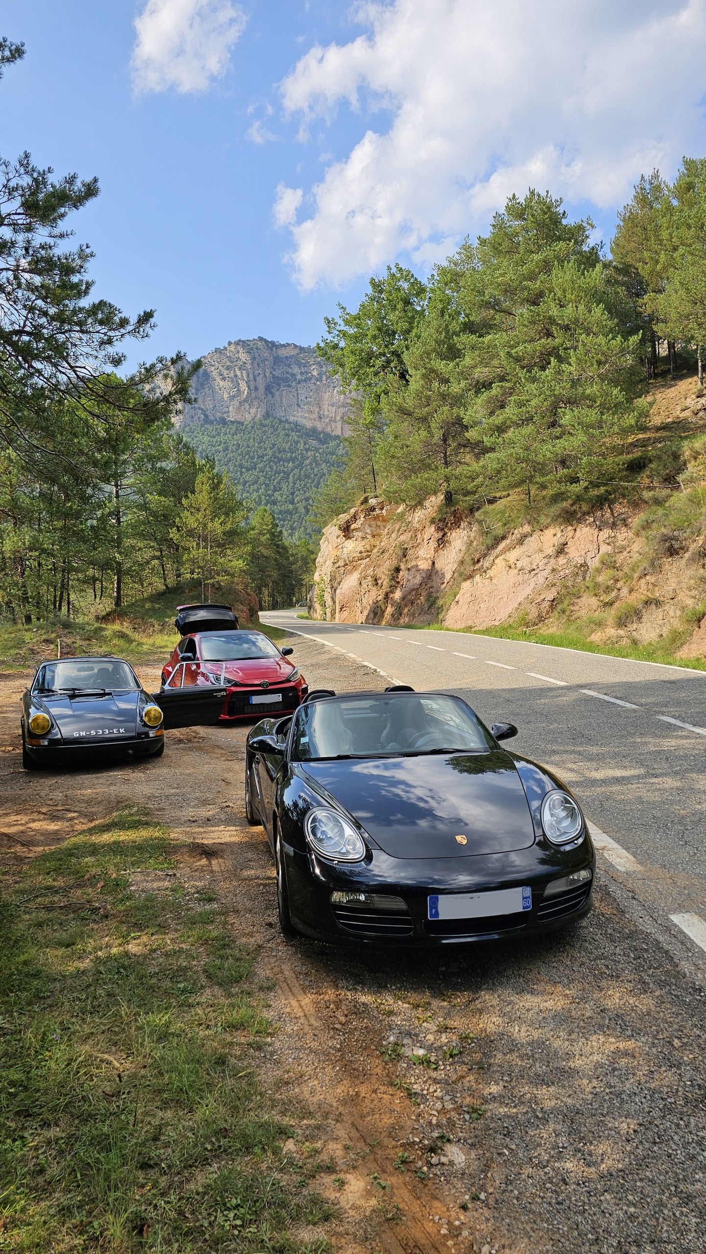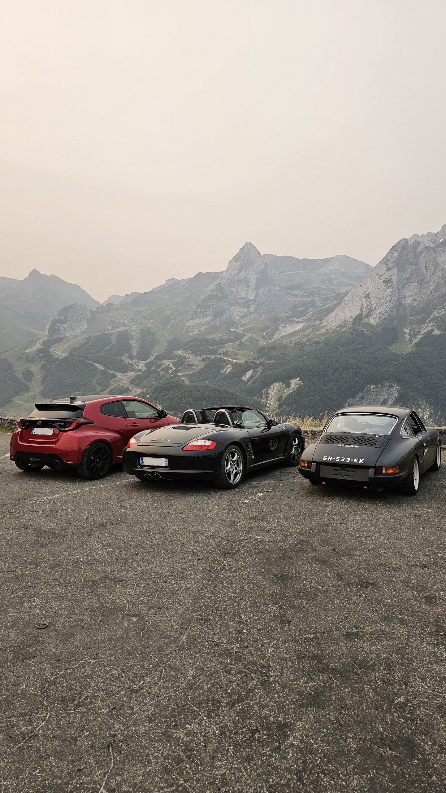 Fin de vacances Une semaine de rando à Val d'Isère en Swift... j'ai fait quelques détours par les cols du Glandon, de la Madeleine, et aussi fait l'Iseran à la fraiche (7h) sans personne sur la route à part des marmottes pour m'encourager (véridique Y'a rien a faire, apres 2ans a son volant, je ne m'en lasse pas, les 970kg et le couple en font une voiture absolument géniale sur les routes de montagnes. Puis un road trip avec le Boxster dans les Pyrénées avec @Zoleran et @CaterHam_7 Parti vers Perpignan, jusqu'à Pau... on a eu des routes de dingues relativement désertes puis pas mal de monde sur les grands cols côté France (sauf l'Aubisque fait le matin a la fraiche, ou on a surtout croisé des cochons et des chevaux sur la route Le Boxster est un bonheur à mener, le son est incroyable, le châssis au top, les sensations excellentes tout en restant très vivable sur les longs trajets et avec du coffre (j'avais les coffres remplis car madame me rejoignait en avion pour de la rando ensuite). Seule ombre au tableau... j'ai un ventilo sur les 2 à l'avant qui est HS... Du coup, en pleine canicule, lorsqu'on se traîne dans les cols derrière les mecs qui roulent a 30 (et qui font des appels de phares dès qu'on ose doubler Bref, il faut que je fasse réparer ça... ca commence a faire pas mal de frais entre le preventif et les pannes si je compare a la Corvette quand meme Et j'ai aussi eu le bonheur de retrouver la voiture avec des crachats et des écritures incompréhensibles apres une nuit dans une station isolées dans les Pyrénées ![]() |