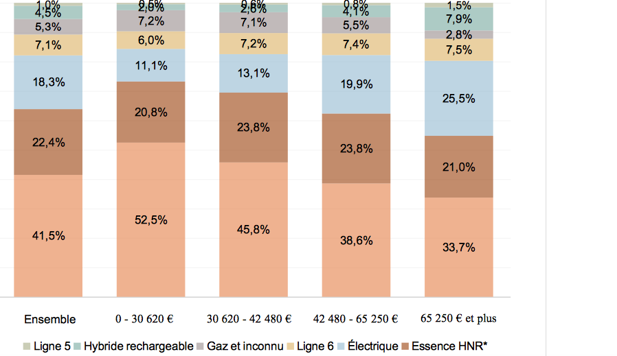 Donc la tu essayes de démontrer que les gens qui ont plus de moyens achètent des voitures plus chères ou tu as oublié d'écrire ton analyse perso? Accessoirement, le choix de l'énergie est multifactoriel, et non juste en rapport avec les revenus. On peut par exemple évoquer le rapport aux nouvelles technologies qui lui aussi est en rapport avec le niveau culturel/d'éducation |