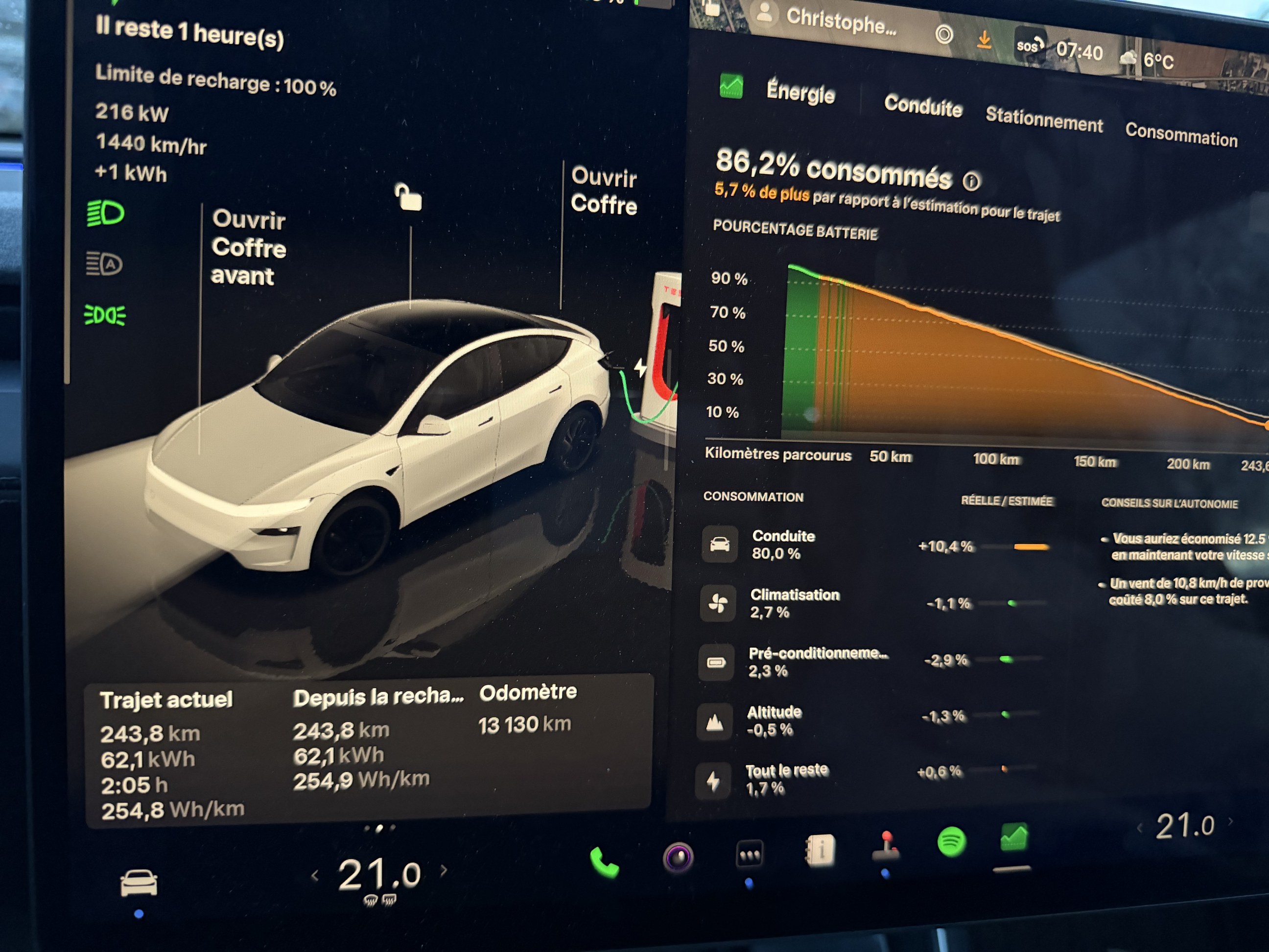 En essence, je roulait à 90 sur autoroute. À part les trajets vacances quand même ou je roulait à 131 GPS. Maintenant c’est 131 GPS aussi (133 compteur). Avec quelques pointes à 160/170 de temps en temps (très rares cas à plus, mais shhhtttt, et avec le slip qui suinte A final je roule plus vite à l’électrique. Et sur les trajets vacances, je ne faisait jamais de Stop&Go avec les enfants, ni avec ma femme (qui aime bien prendre son temps) et même moi tout seul, c’était rare que je m’arrête moins de 20 min dans les grandes aires d’autoroute, donc, avec les enfants ou avec ma femme, je ne perd pas de temps en elec. Et même la, je l’ai déjà dit, mais je prend mon temps au petit dej chez moi, donc, si j’ai perdu 10 min ce matin c’est le max. |