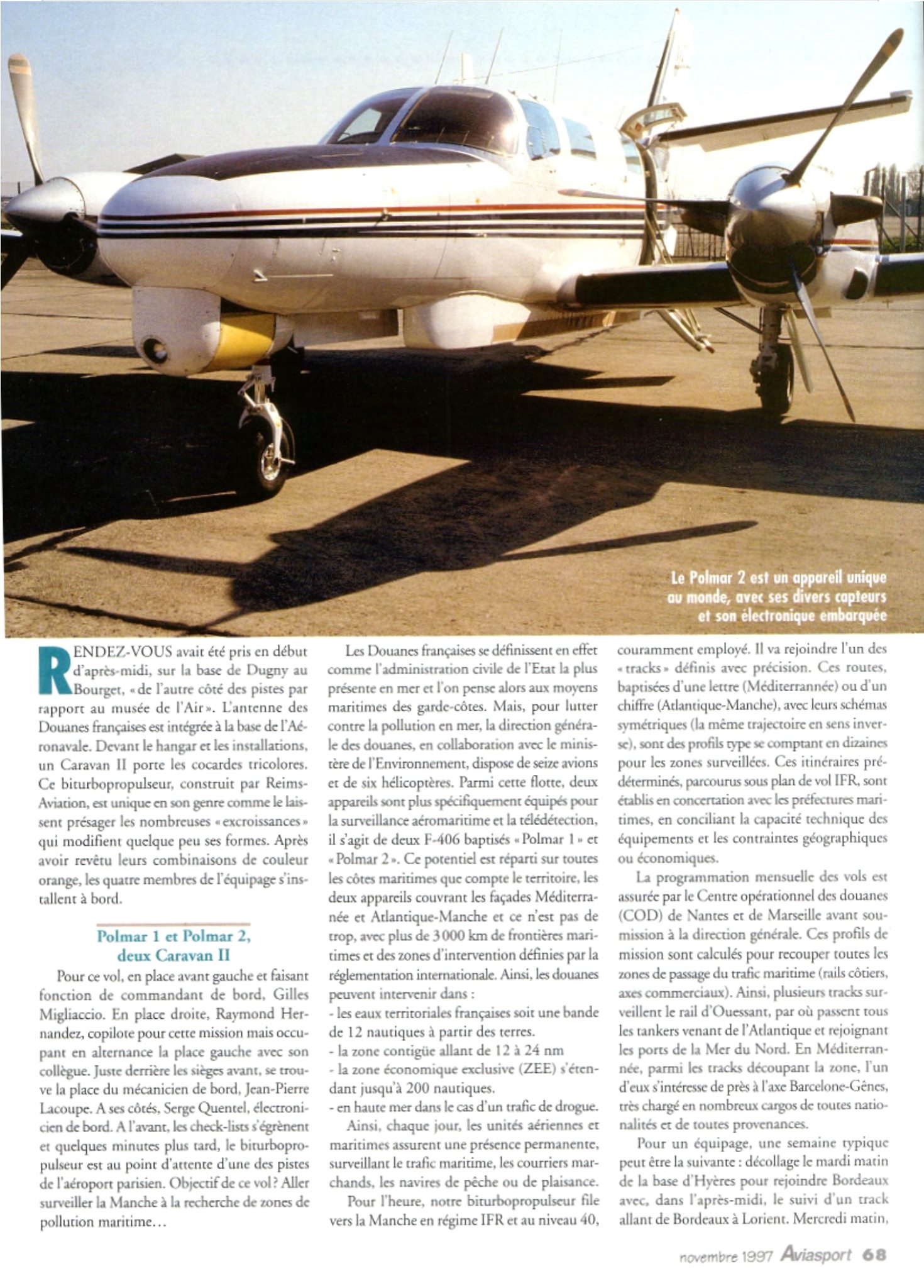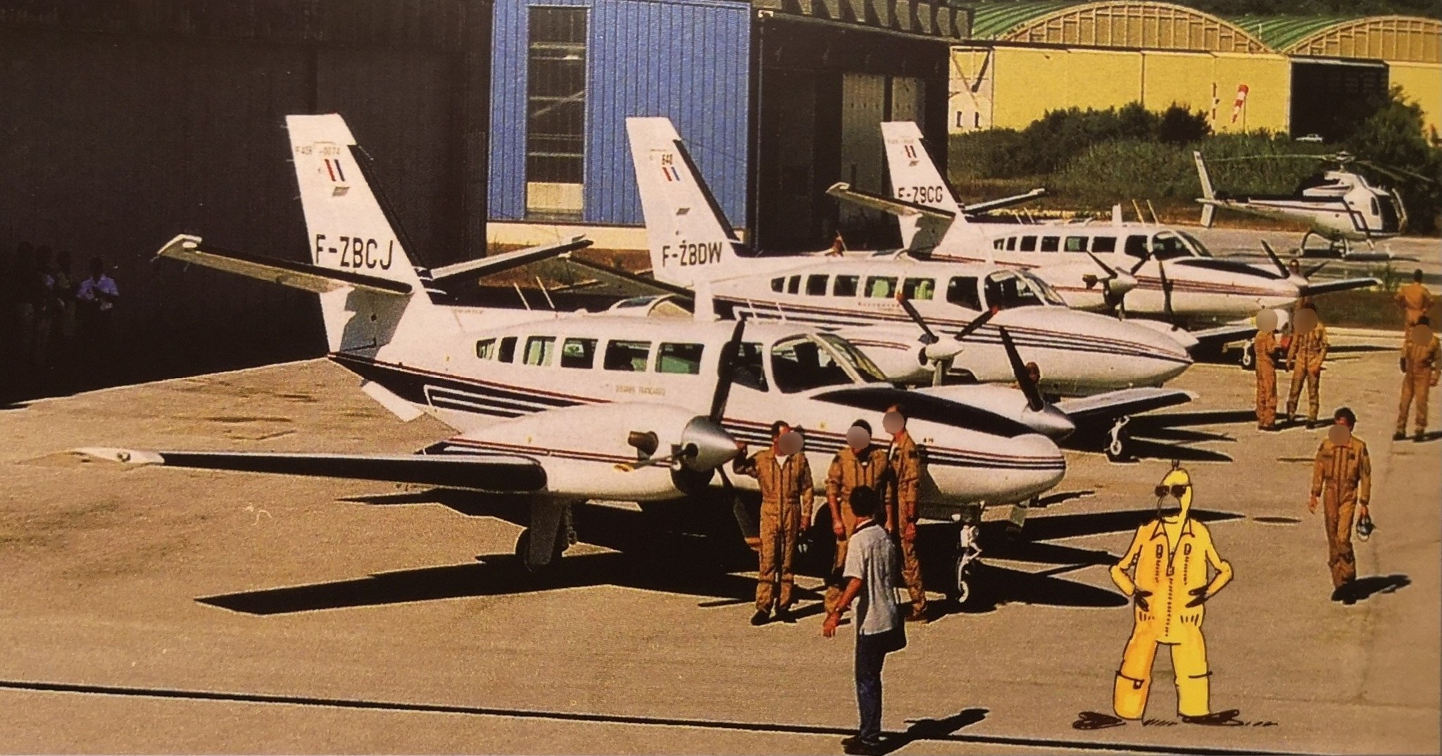 Suite et fin de la découverte de l’histoire aéronavale de la Douane. Sur la photo ci dessous (base aerienne de Hyeres), on retrouve deux cessna F406 (partie noire sur le nez) et un cessna F404. les F404 ont remplacé les Dornier dans les années 80 et les F 404 furent remplacés par des F 406 ( plus puissants) dans les années 90. Ces différents appareils etaient implantés sur les bases de Merignac, Hyeres, Lann Bihoue, et au Lamentin (antilles) ainsi qu’à Toussus le Noble puis le Bourget. Sur la photo on voit également un écureuil AS 355 biturbine. ![]() |