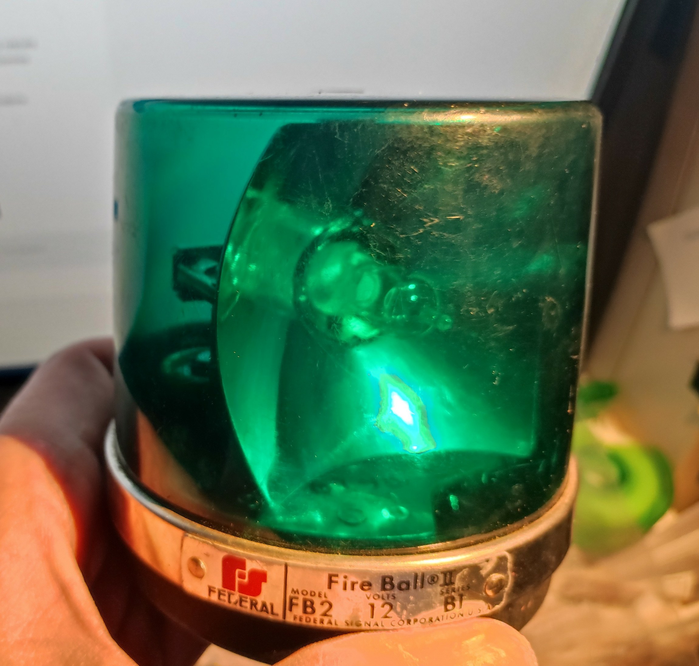 Superbe Geoduv les FB II (à ne pas confondre avec le FB2, Fireball montage fixe) LED verte effectivement, hormis certains véhicules "poste de commandement PC" qui utilisent du vert ou du rouge, en France c'est inédit. Aux US, l'équivalent de nos pompiers volontaires peut en être équipé il me semble pour rejoindre leurs centres de secours. |