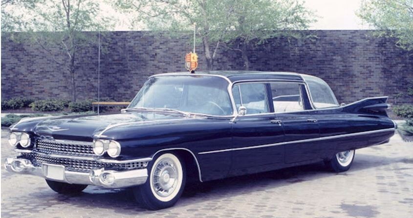 Cadillac Fleetwood 1959, carrossée en landaulet. Pas de capote mais un toit bubble top facilement démontable, utilisée pour la grande tournée officielle de la reine Elizabeth II au Canada de juin à août 1959, dont elle est la souveraine. La voiture royale est naturellement dispensée de plaques d’immatriculation. Le blason de la reine fixé sur le toit l'identifie. Parade de la reine Elizabeth II et du prince Philip sans le bubble top, monté uniquement en cas de pluie. Cette carrosserie permettait aussi au couple royal d'être debout pour mieux saluer la foule lors d'une parade (rappel) Dernière édition le 24/01/2025 à 21:34 par I'll-be-back, édité 1 fois |