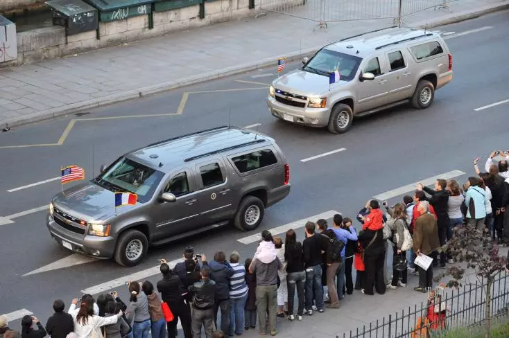 Le convoi automobile de Barack Obama lors de sa visite de Notre-Dame de Paris, le 6 juin 2009. https://information.tv5monde.com/culture/les-americains-de-lamour-et-des-dollars-pour-notre-dame-2750024 |