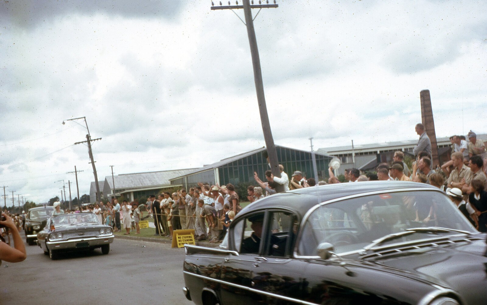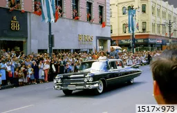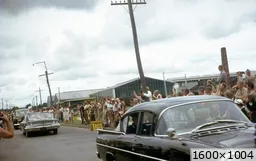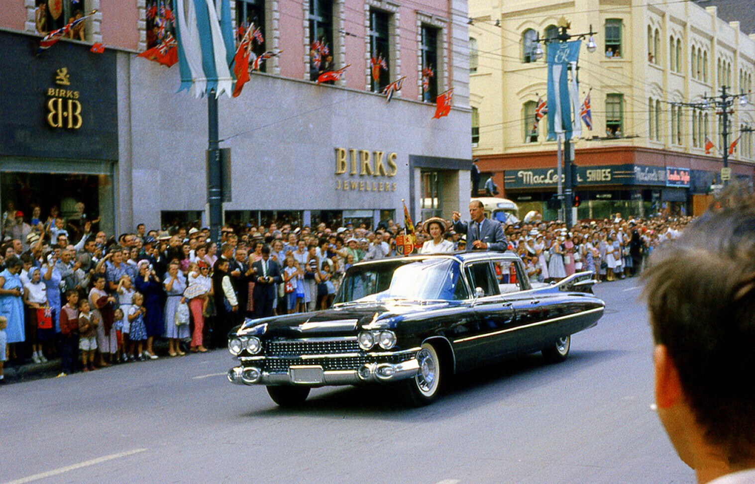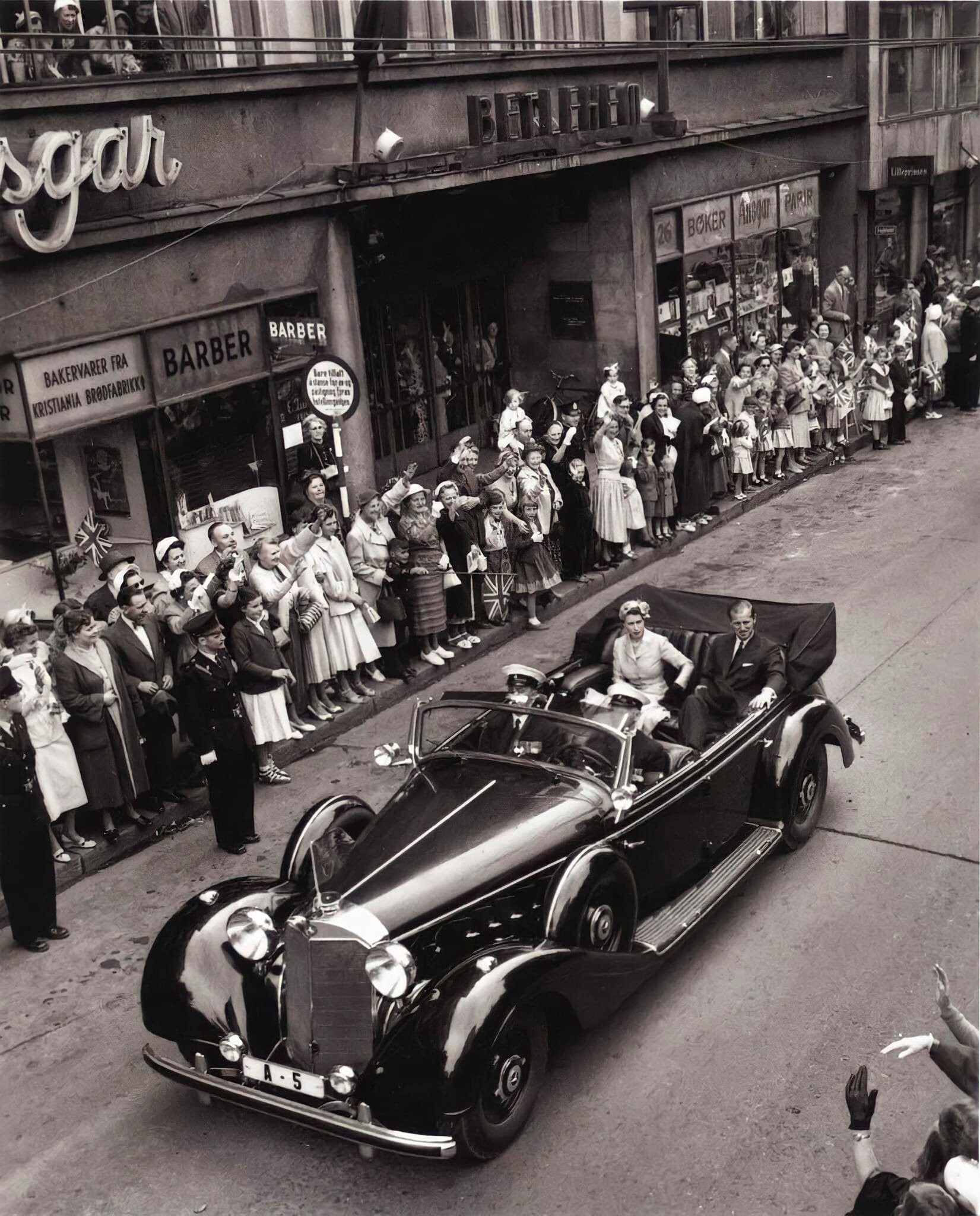 Quelques photos liées aux visites de la Reine Elizabeth à travers le monde. - En visite aux USA en 1957, à Washington, avec le président Eisenhower dans une Lincoln 1950. - Visite au Canada en 1959 (ville non identifiée) dans une Cadillac 1959: - Visite en Nouvelle Zélande dans une vulgaire Ford 1963, mais la Rolls royale suit de près au cas où ! Source : Caradisiac |