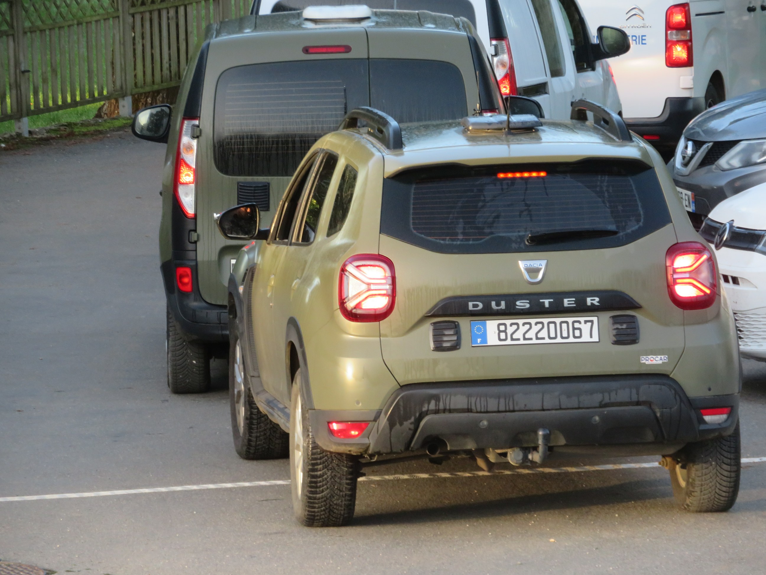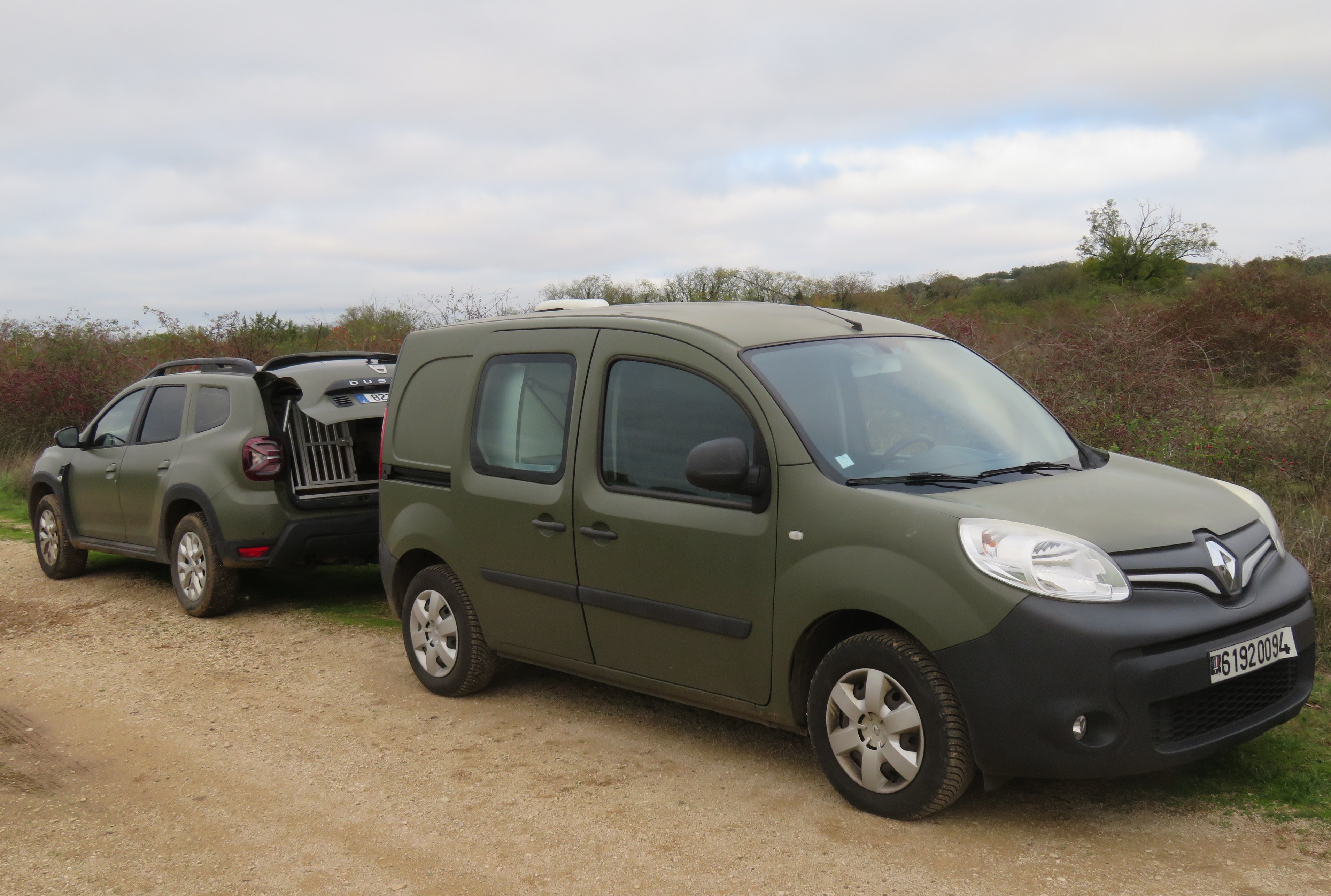 Même sur un Kangoo ou un Duster, le kaki et les plaques militaires donnent un aspect "plus militaire" |
