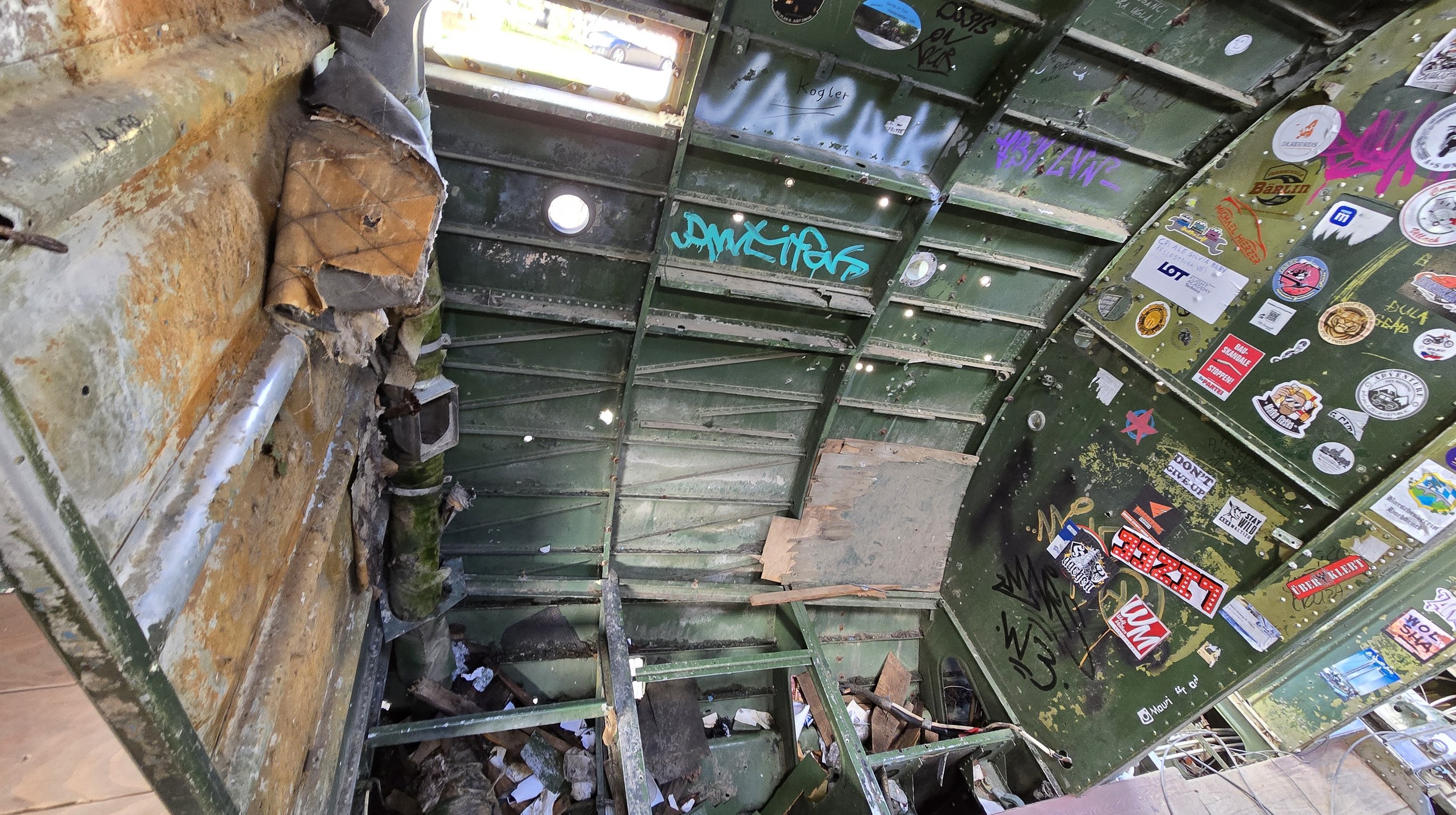 Pas vraiment de véhicules mais un vestige figé dans le temps... Je reviens d'une semaine de vacances en Croatie où j'ai un peu bougé en camping-car. J'ai eu notamment la possibilité de visiter un des endroits les plus glauques que j'ai pu voir jusqu'ici. Et j'ai eu la chance de pouvoir le faire avec un guide. Il s'agit de l'ancienne base aérienne de Zeljava, à cheval sur la Croatie (à 80%) et sur la Bosnie (20%). C'est une base construite à la fin des années 50. On est donc en pleine Guerre Froide et il s'agit d'une base du bloc soviétique. A moins de 1 500 km de Paris, à moins de 250 km des côtes italiennes. A nos portes quoi. Pendant la guerre civile au début des années 90, les foces yougoslaves ont décidé de tout faire péter et ont placé plus de 50 tonnes d'explosifs. Malgré la déflagration qui a fait sauter toutes les fenêtres des maison dans un rayon de 15 km, le bunker est encore là, quasi intact, dans son jus. Certes, les pilleurs sont passés par là mais il reste encore énormément à voir. Voici quelques photos et l'article Wikipedia pour ceux que cela intéresse. https://fr.wikipedia.org/wiki/Base_a%C3%A9rienne_de_%C5%BDeljava (Base aérienne de Željava — Wikipédia) Tout d'abord, on arrive sur ce C47 de l'armée américaine laissé là après la seconde guerre mondiale. Il faut savoir que c'est le deuxième avion laissé là, le premier ayant été désossé et "récupéré" par la population locale. L'armée américaine en a donc envoyé un deuxième. Le guide n'a pas su me dire l'histoire de cet avion. On reprend la voiture, on roule sur une des pistes d'envol et on s'arrête devant l'entrée "numéro 2" (sur 3) de la base. On laisse la voiture (même s'il est possible d'entrer avec la voiture), on prend les lampes torches que nous a ramenées le guide et on entre dans le coeur de la montagne.. Car bien évidemment, il n'y a aucun éclairage. On tombe sur la première porte blindée. En fait, c'est une porte en béton armé de 80 cm d'épaisseur. Complètement soufflée par l'explosion... On continue... On tombe sur ce système de robinetterie qui servait à transporter le kérozene vers les MIG 21 stationnés ici. Le guide nous emmène ensuite dans ce qui devait probablement être une salle de commandement. Tout a été soufflé par l'explosion. Il y avait deux couches de béton (extérieure et intérieure). La couche intérieure s'est effondrée. Et voici sur quoi on tombe. Des cartes au sol, des archives absolument partout. Des documents... tout mélangé aux débris. Un détail du plafond intérieur dont je parlais... Le guide nous emmène ensuite dans la salle contenant 5 immenses cuves. C'était là qu'était stocké le kérozene. Visiblement une grosse charge d'explosif a été placée ici. Une autre porte à l'intérieur. Tout aussi imposante que la première. Mais en bon état celle-ci. On arrive sur le groupe électrogène censé alimenter la base en électricité en cas de coupure de courant. Le guide avait beau avoir fait des recherches sur le modèle de ce moteur, il n'a rien trouvé. C'est probablement un moteur de (gros) bateau, vu la taille... A côté un V8 qui servait à démarrer ce moteur. Ce V8 n'était utilisé que si le démarrage par gaz comprimé ne fonctionnait pas, d'où les bonbonnes de gaz à côté. Et derrière ce groupe électrogène, il y avait deux gros réservoirs. Ce n'étaient pas les réservoirs principaux qui étaient, eux, situés dans une autre salle, que j'ai visitée également, mais qui est sur en vidéo.. Je posterai mes vidéos plus tard. Nous voilà sortis par "l'entrée 3". celle-ci est bien couverte par la végétation... Et enfin, une photo de deux des pistes d'envol... Dernière édition le 12/10/2025 à 11:48 par robby, édité 1 fois |