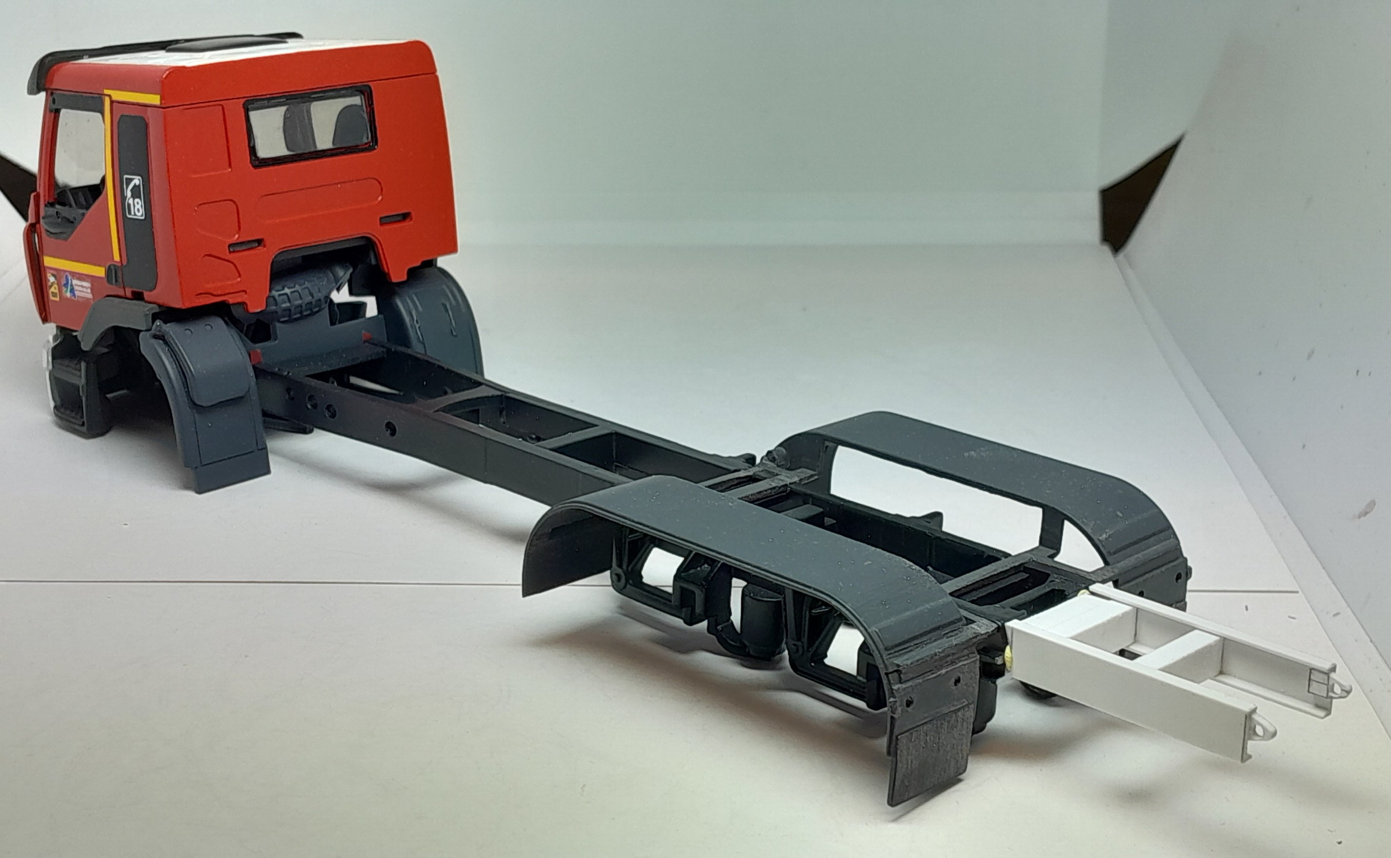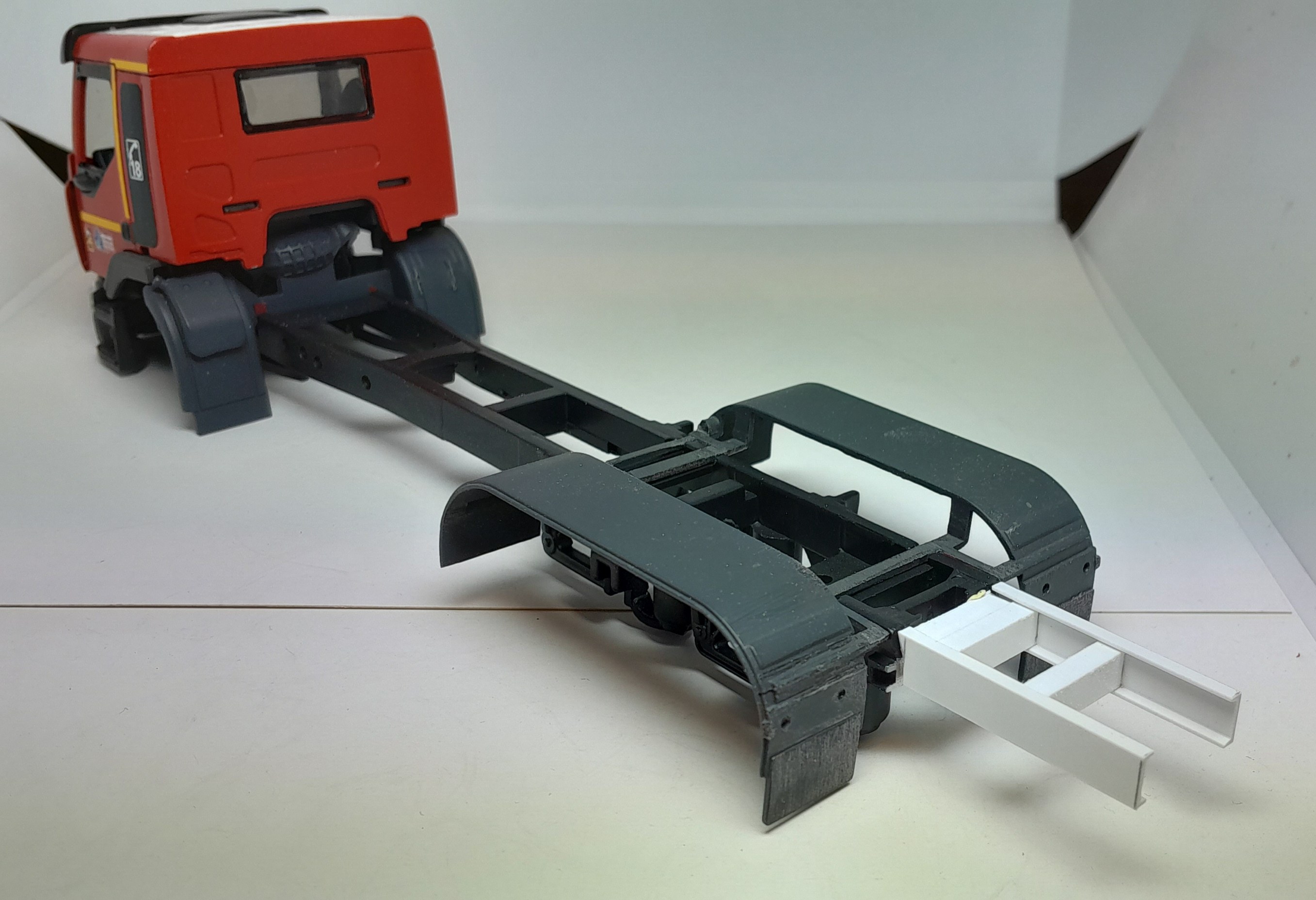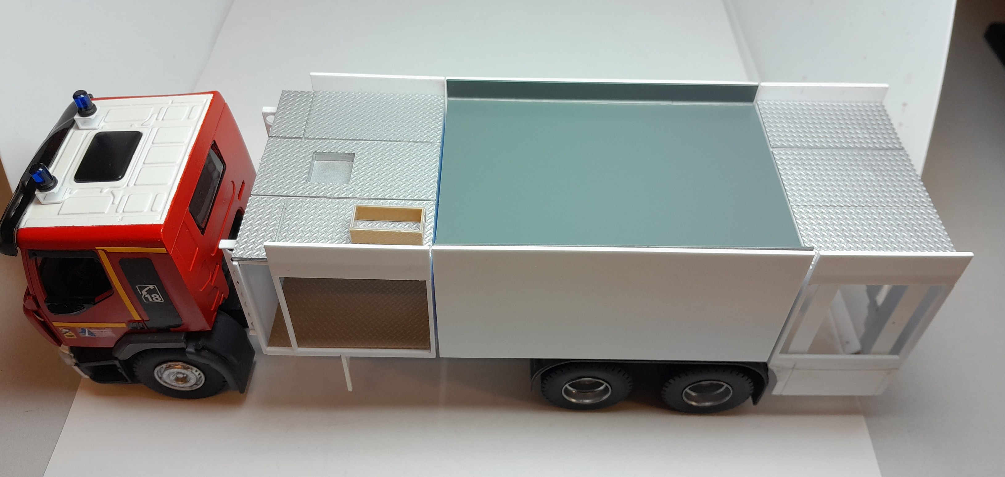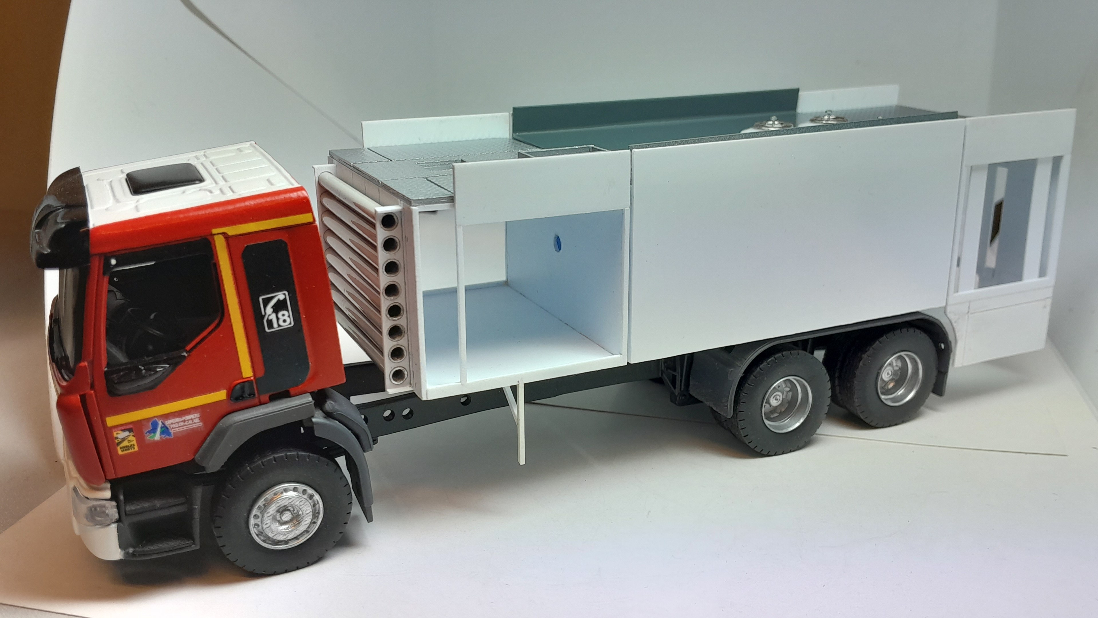 Bonsoir à tous, avancées [FMOGP LIEVIN] : 1- Mise en peinture du rack de rangement des tuyaux pré-connectés et des supports des tubes de rangement des aspiraux 2- Modélisation et impression 3D de divers accessoires (cône de Lübeck, extincteurs à poudre, bouteilles d'air, tubulures du pavillon de la caisse, réservoir Ad Blue et touret électrique) 3- Pose à blanc des différents éléments (Une tubulure à du être prolongée car trop courte après vérification) 4- Continuation de la réalisation du rallongement de châssis et pose à blanc ![]() |