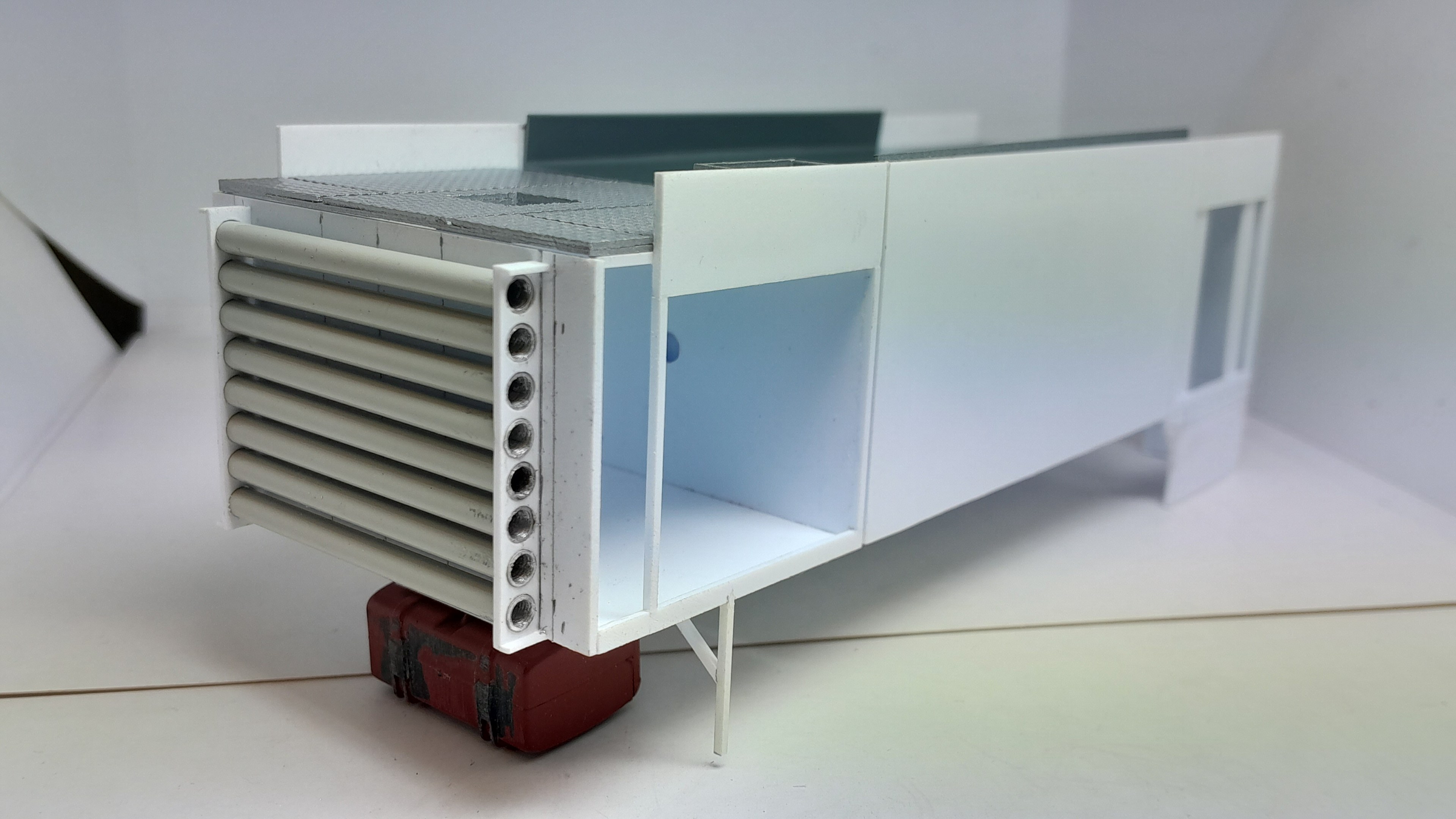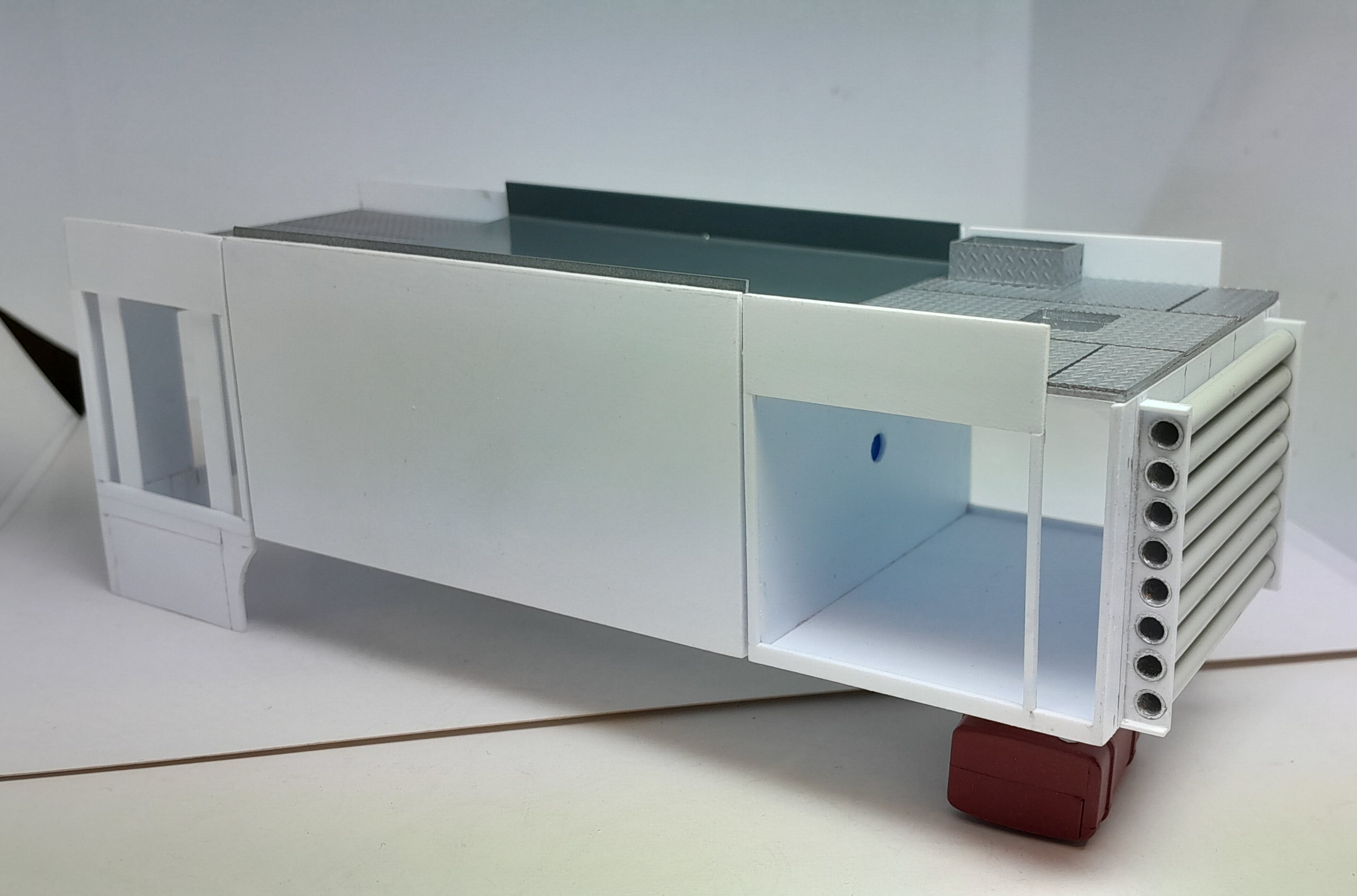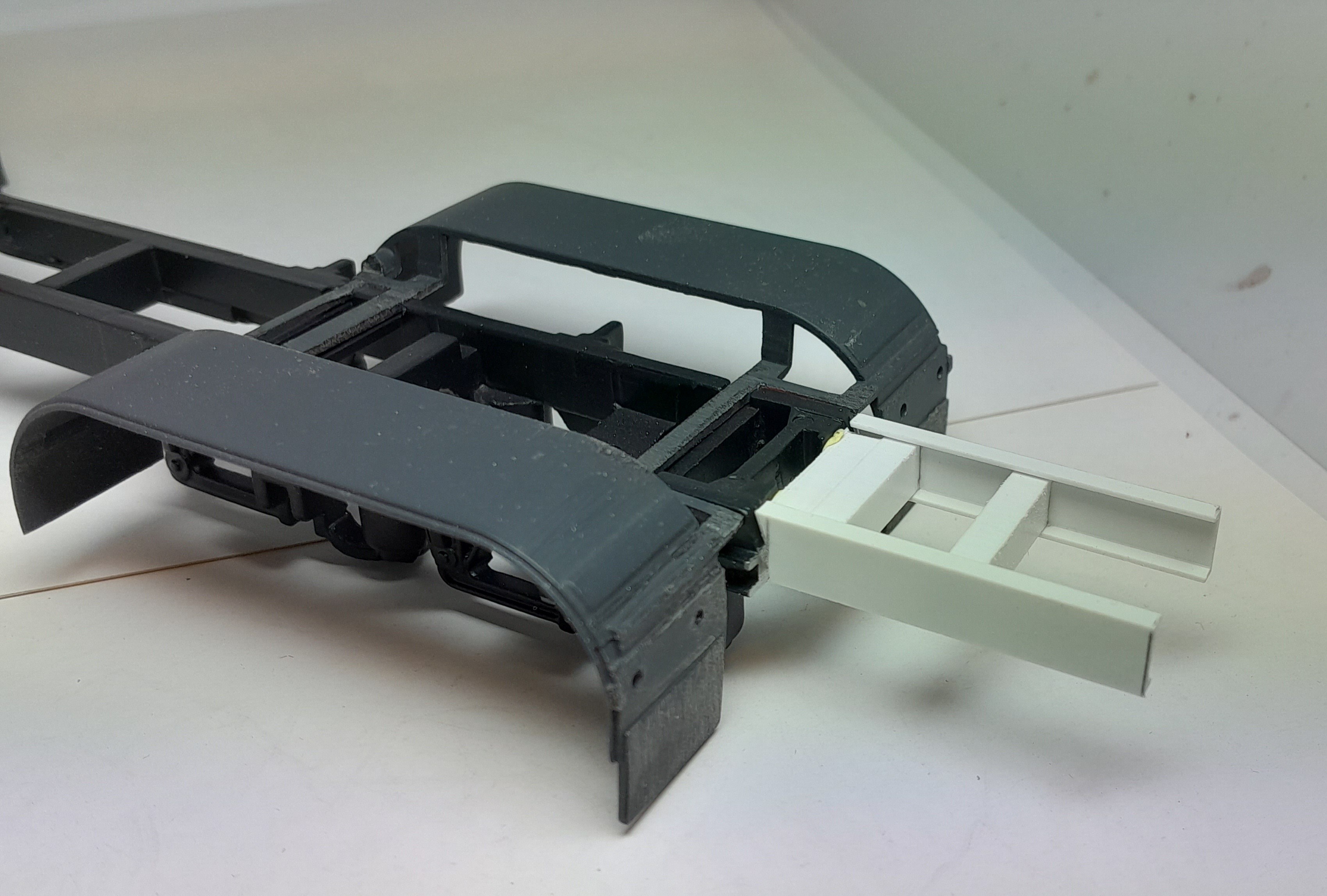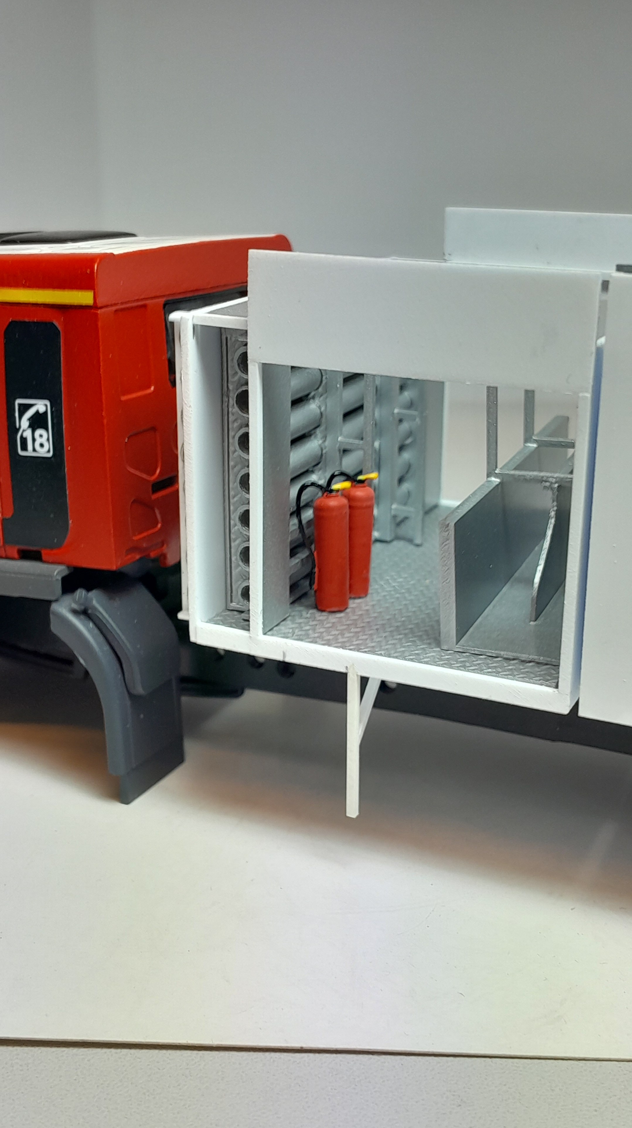 Bonsoir à tous, avancées [FMOGP LIEVIN] : 1- Mise en peinture du rack de rangement des tuyaux pré-connectés et des supports des tubes de rangement des aspiraux 2- Modélisation et impression 3D de divers accessoires (cône de Lübeck, extincteurs à poudre, bouteilles d'air, tubulures du pavillon de la caisse, réservoir Ad Blue et touret électrique) 3- Pose à blanc des différents éléments (Une tubulure à du être prolongée car trop courte après vérification) 4- Continuation de la réalisation du rallongement de châssis et pose à blanc ![]() |