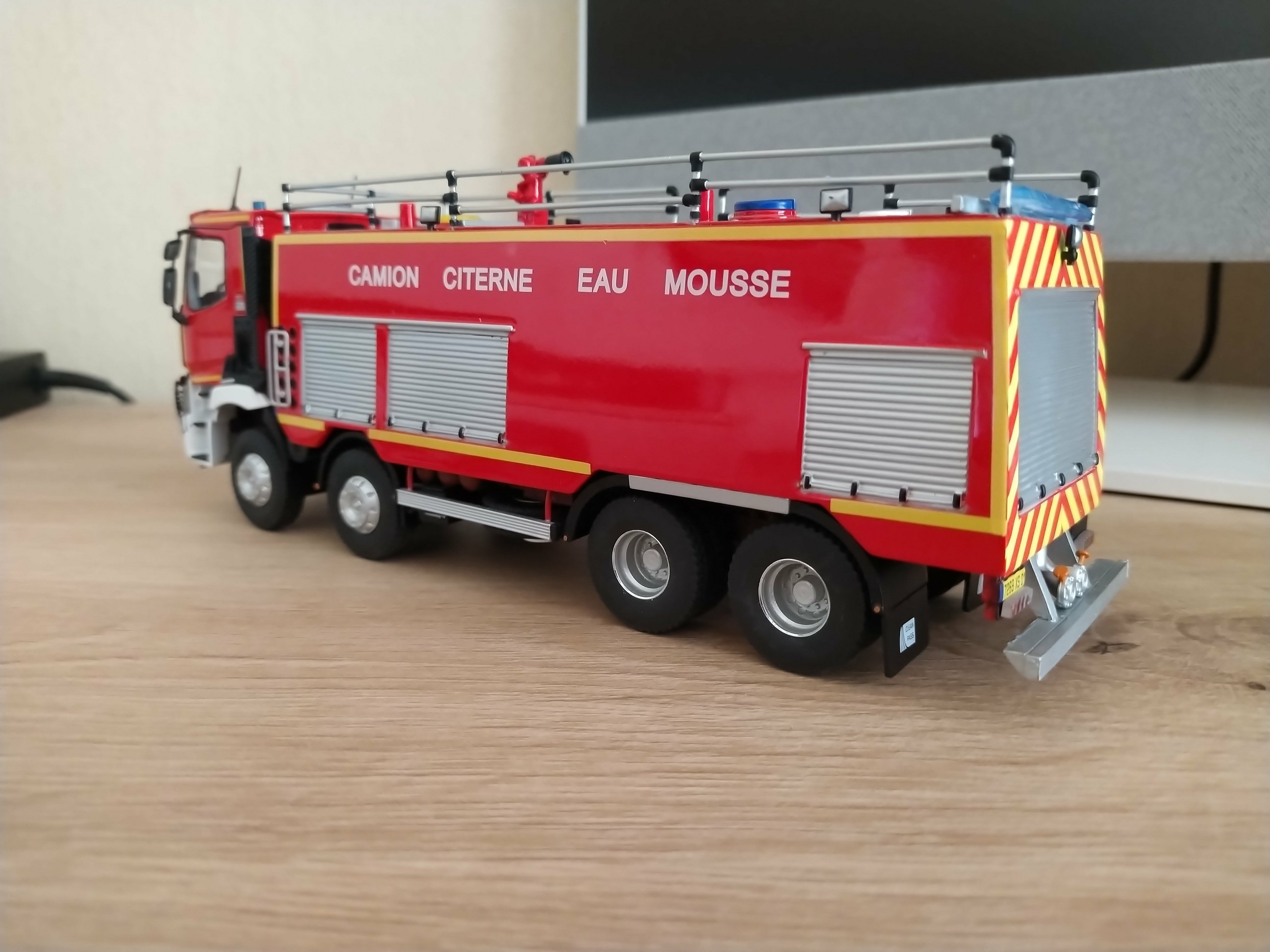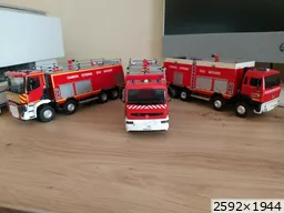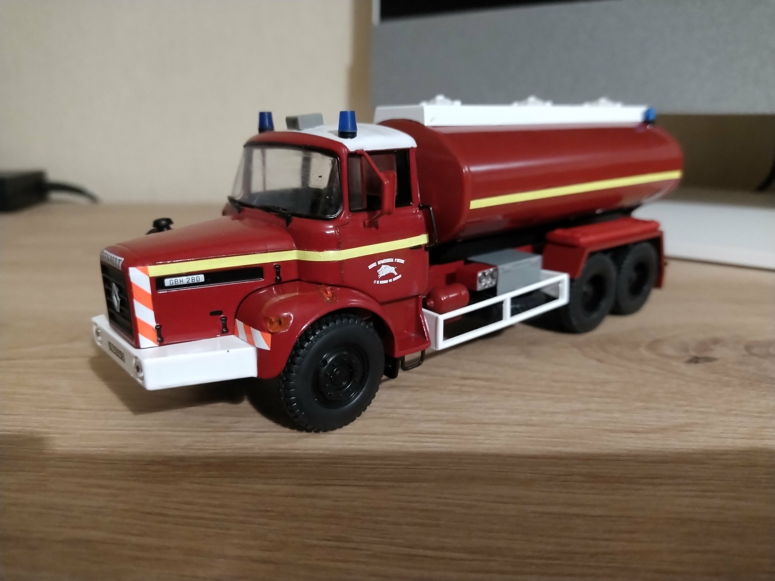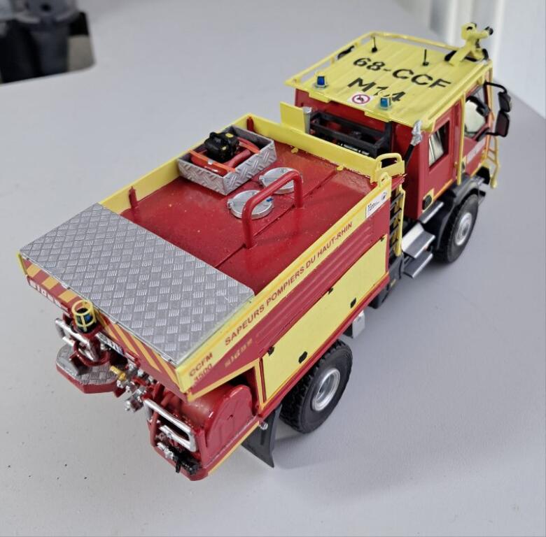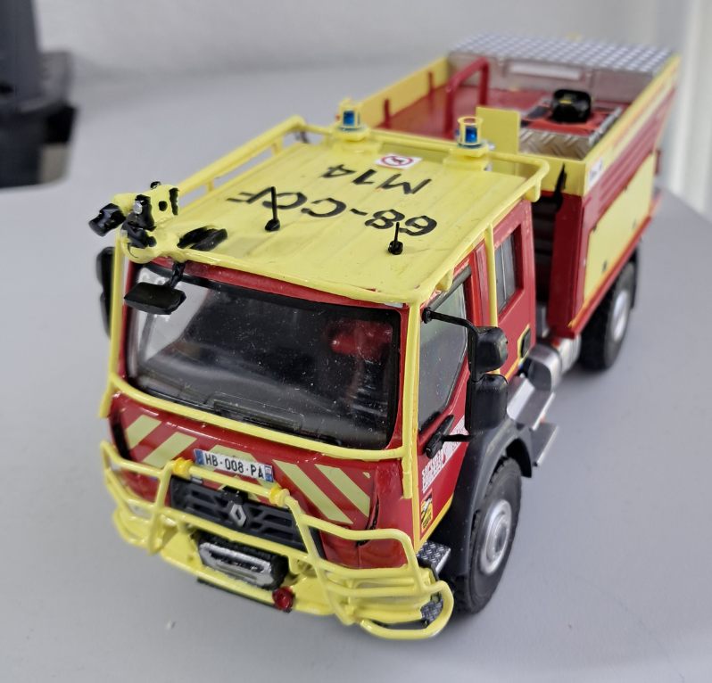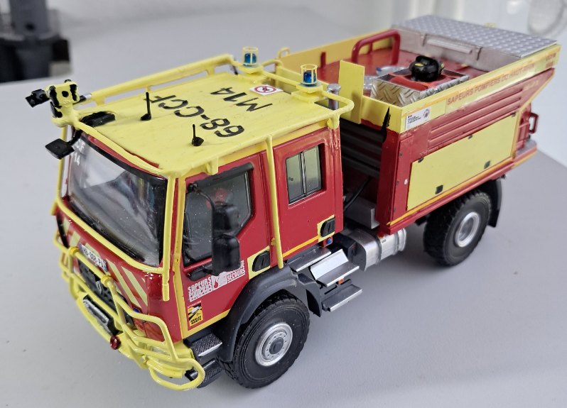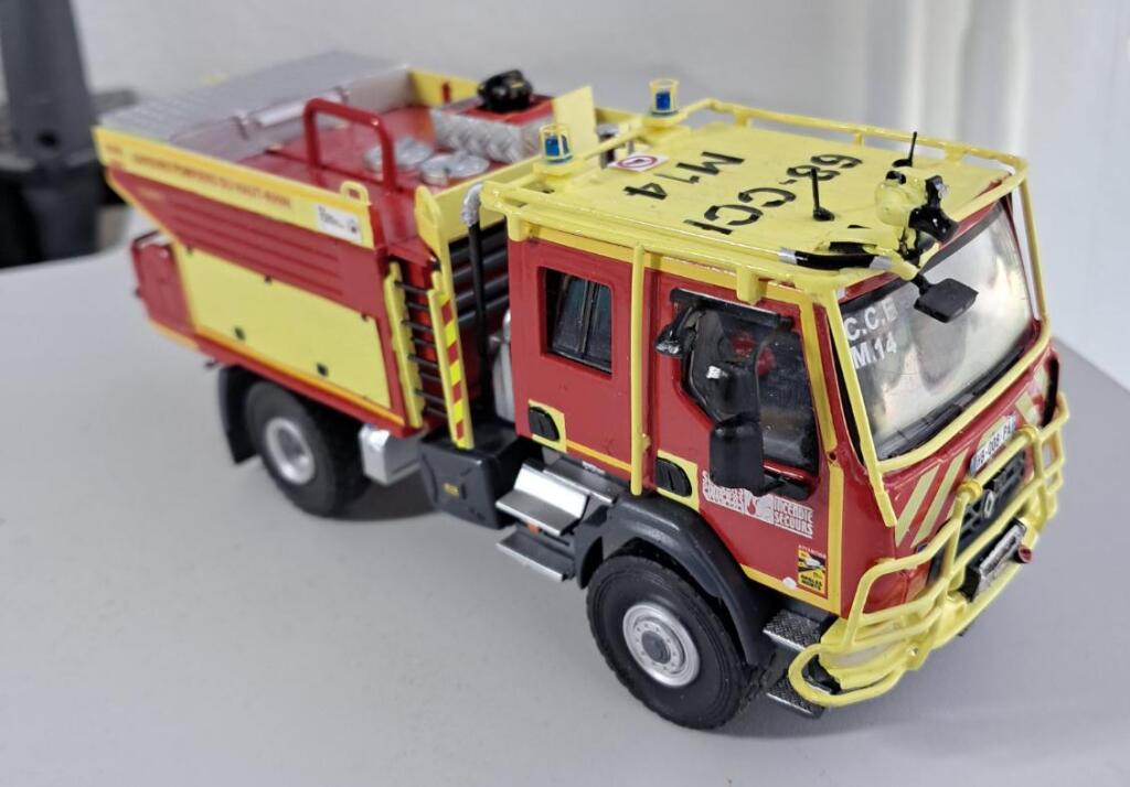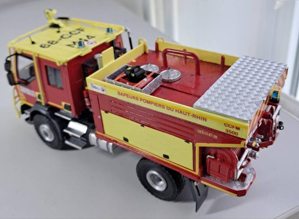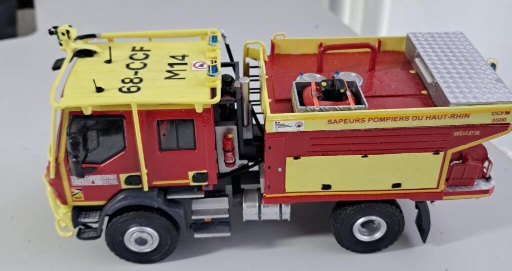 Bonjour à tous, Voici terminé mon deuxième projet en la réalisation du Camion Citerne Eau Mousse du SDIS de l'Ain sur Renault C480, réalisé a partir de modèles de chez Eligor. Il ne correspond pas tout à fait au modèle a l'échelle 1 et c'est le cas, car j'ai du m'adapter à la situation. L'ancien propriétaire du modèle avait collé vissé l'équipement incendie au châssis et quand j'ai voulu décollé ce dernier, après avoir enlevé les visses, la résine veille de 20 ans a commencé a se fissurer. Donc le travail a été de réparer le châssis de sous bassement en résine de l'équipement incendie et d'adapter la cabine du C480 au châssis du modèle qui avait une cabine de G340 a l'origine. Photos du véhicule réalisé au 1/43 : ![]() ![]() ![]() ![]() Photo des 3 générations de CCEM : ![]() Dernière édition le 07/06/2025 à 23:29 par etienne08, édité 2 fois |