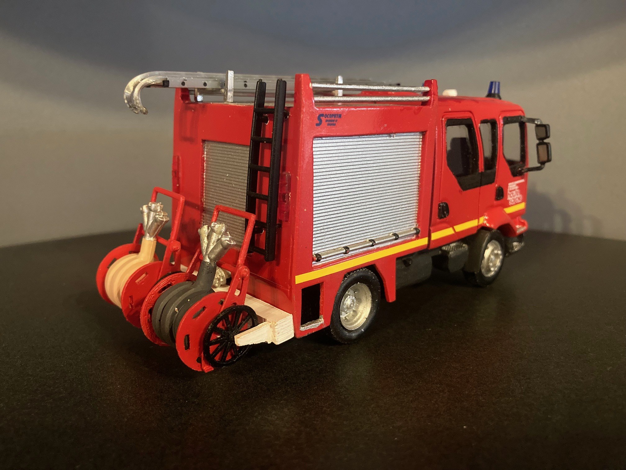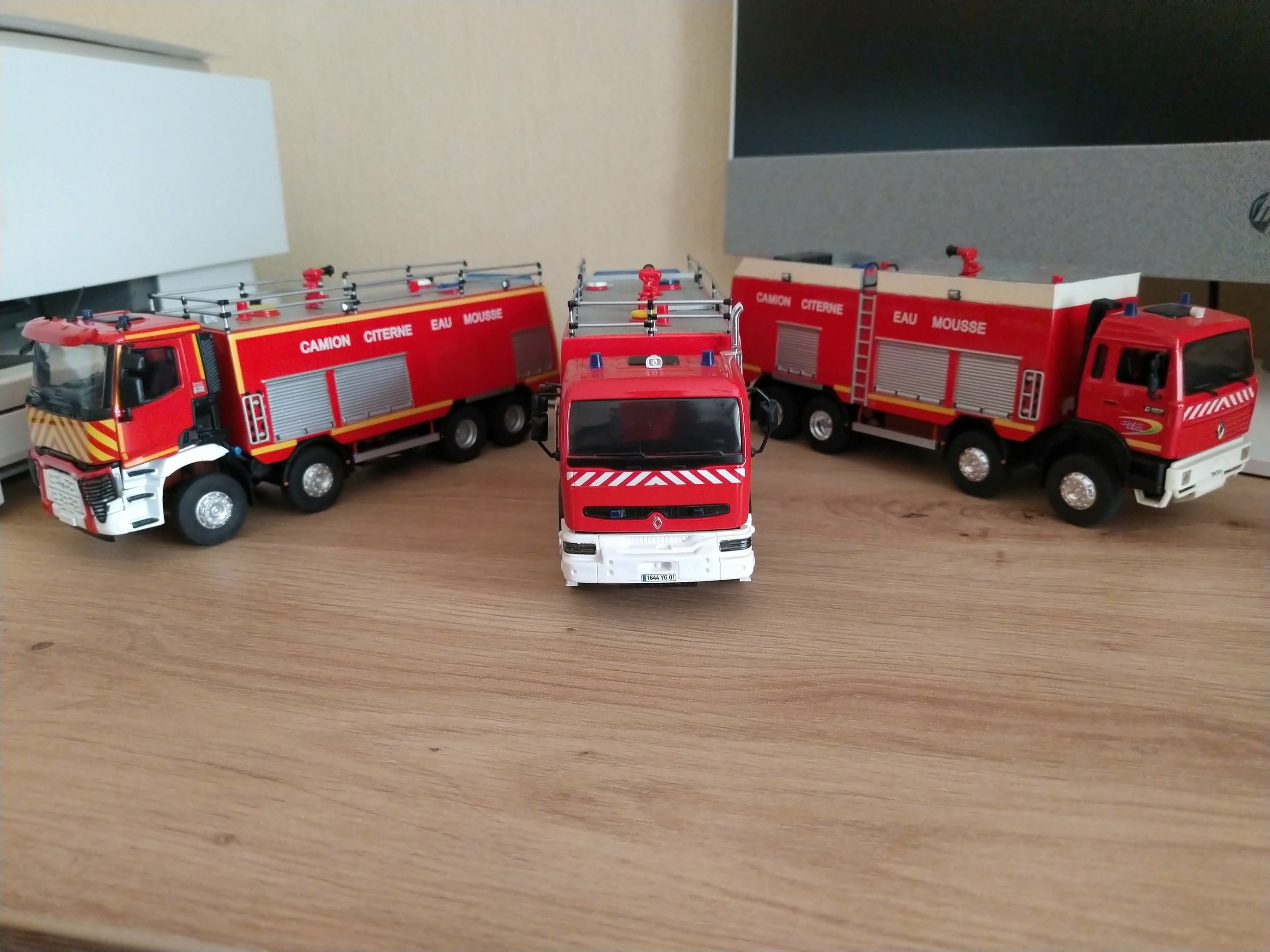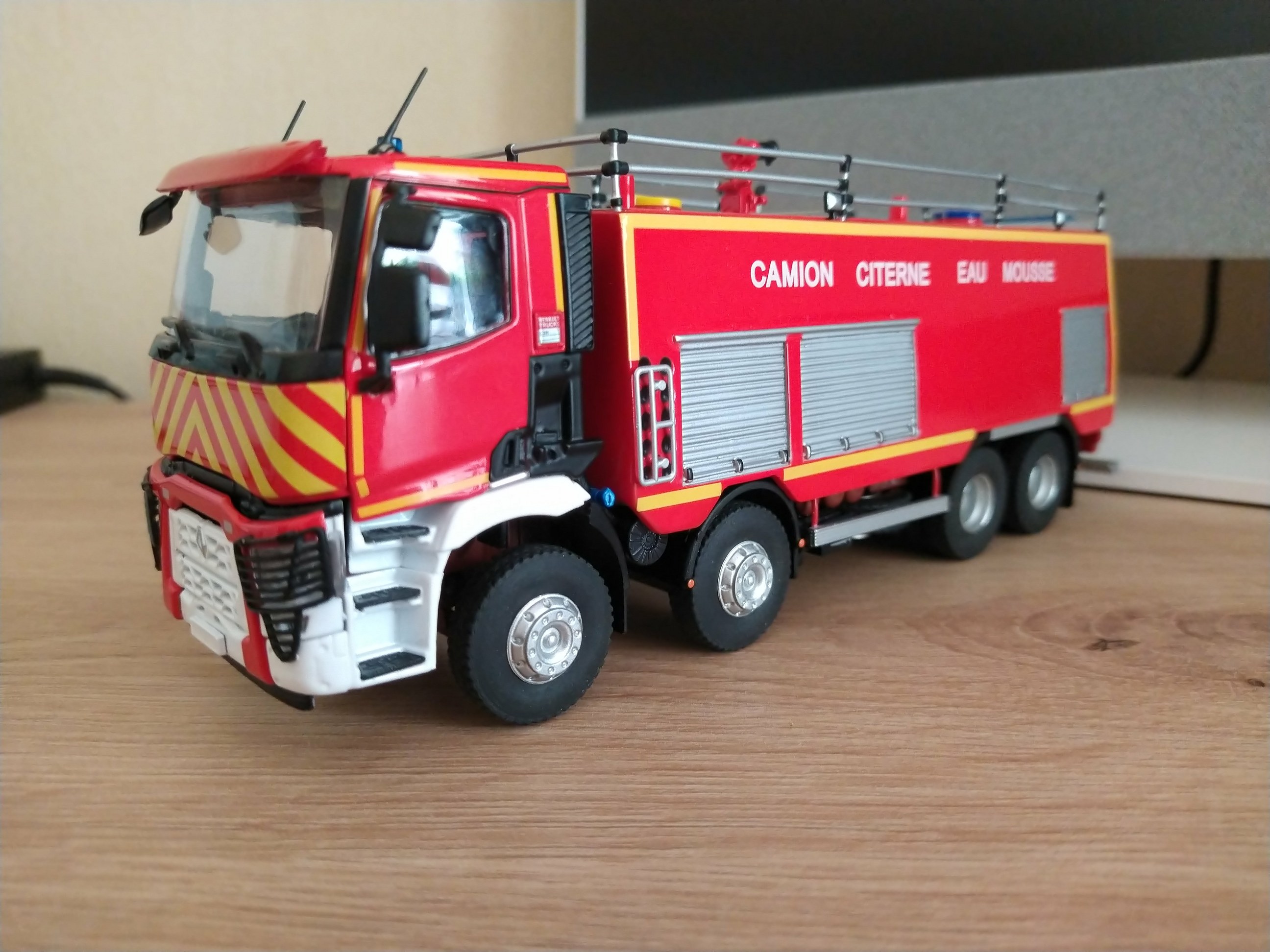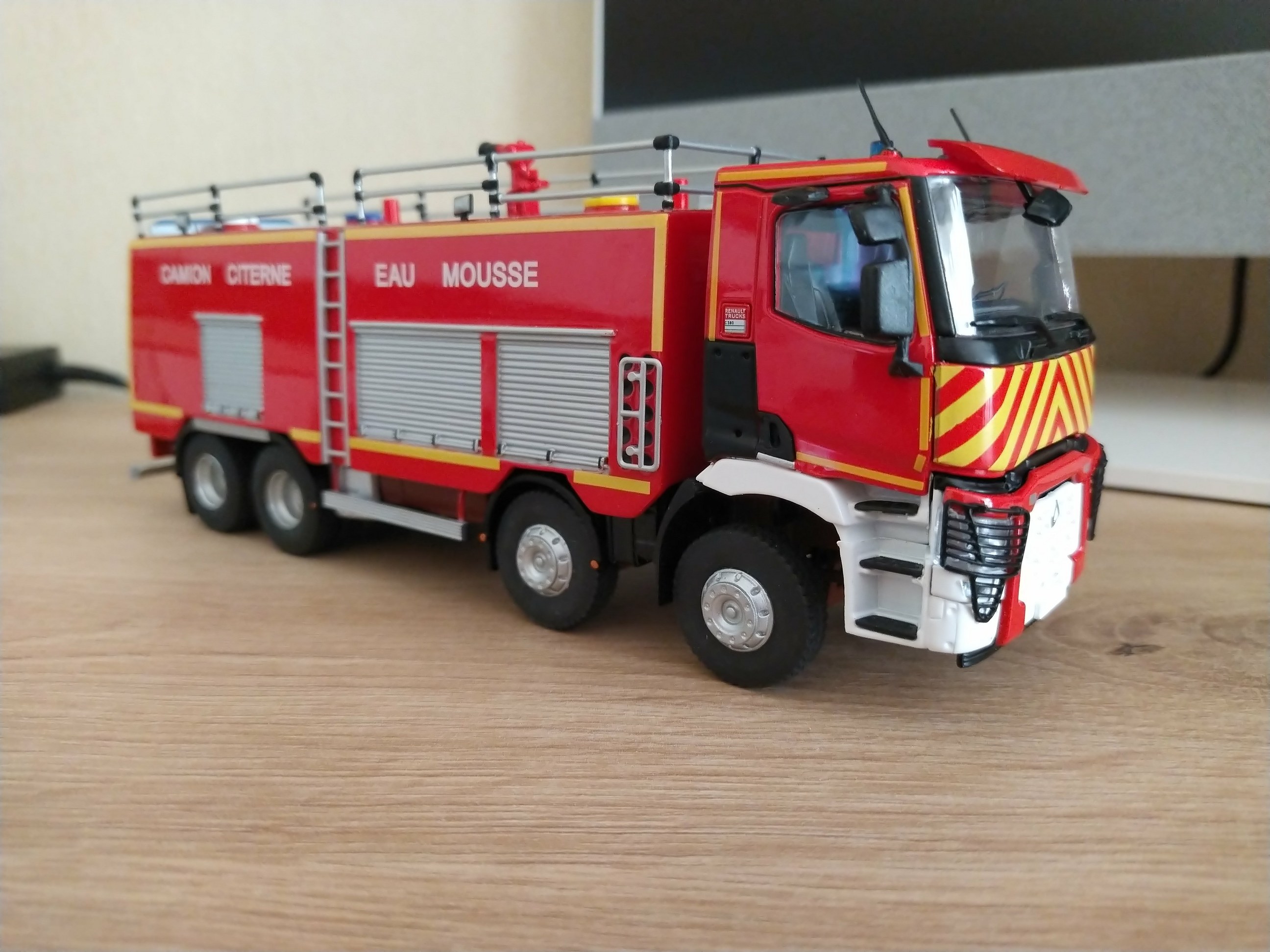 Bonjour à tous, Voici terminé mon deuxième projet en la réalisation du Camion Citerne Eau Mousse du SDIS de l'Ain sur Renault C480, réalisé a partir de modèles de chez Eligor. Il ne correspond pas tout à fait au modèle a l'échelle 1 et c'est le cas, car j'ai du m'adapter à la situation. L'ancien propriétaire du modèle avait collé vissé l'équipement incendie au châssis et quand j'ai voulu décollé ce dernier, après avoir enlevé les visses, la résine veille de 20 ans a commencé a se fissurer. Donc le travail a été de réparer le châssis de sous bassement en résine de l'équipement incendie et d'adapter la cabine du C480 au châssis du modèle qui avait une cabine de G340 a l'origine. Photos du véhicule réalisé au 1/43 : ![]() ![]() ![]() ![]() Photo des 3 générations de CCEM : ![]() Dernière édition le 07/06/2025 à 23:29 par etienne08, édité 2 fois |