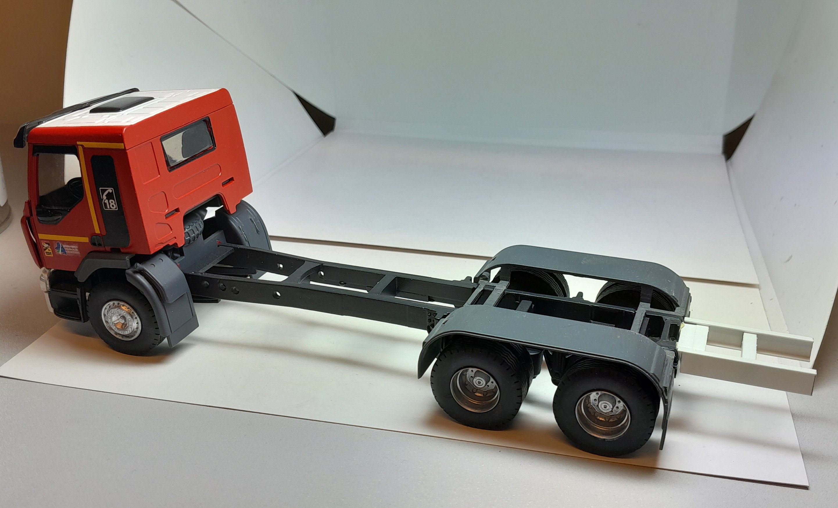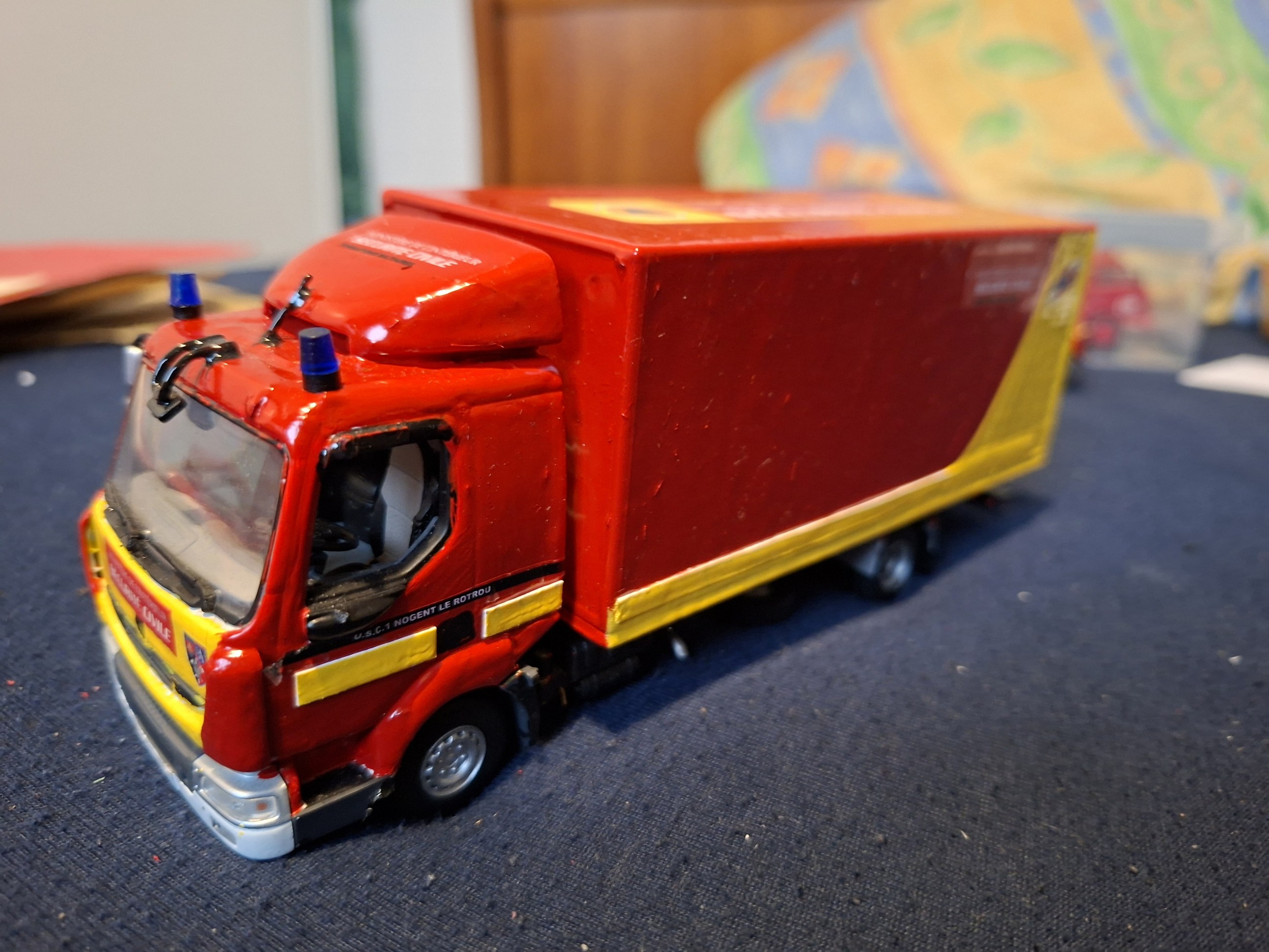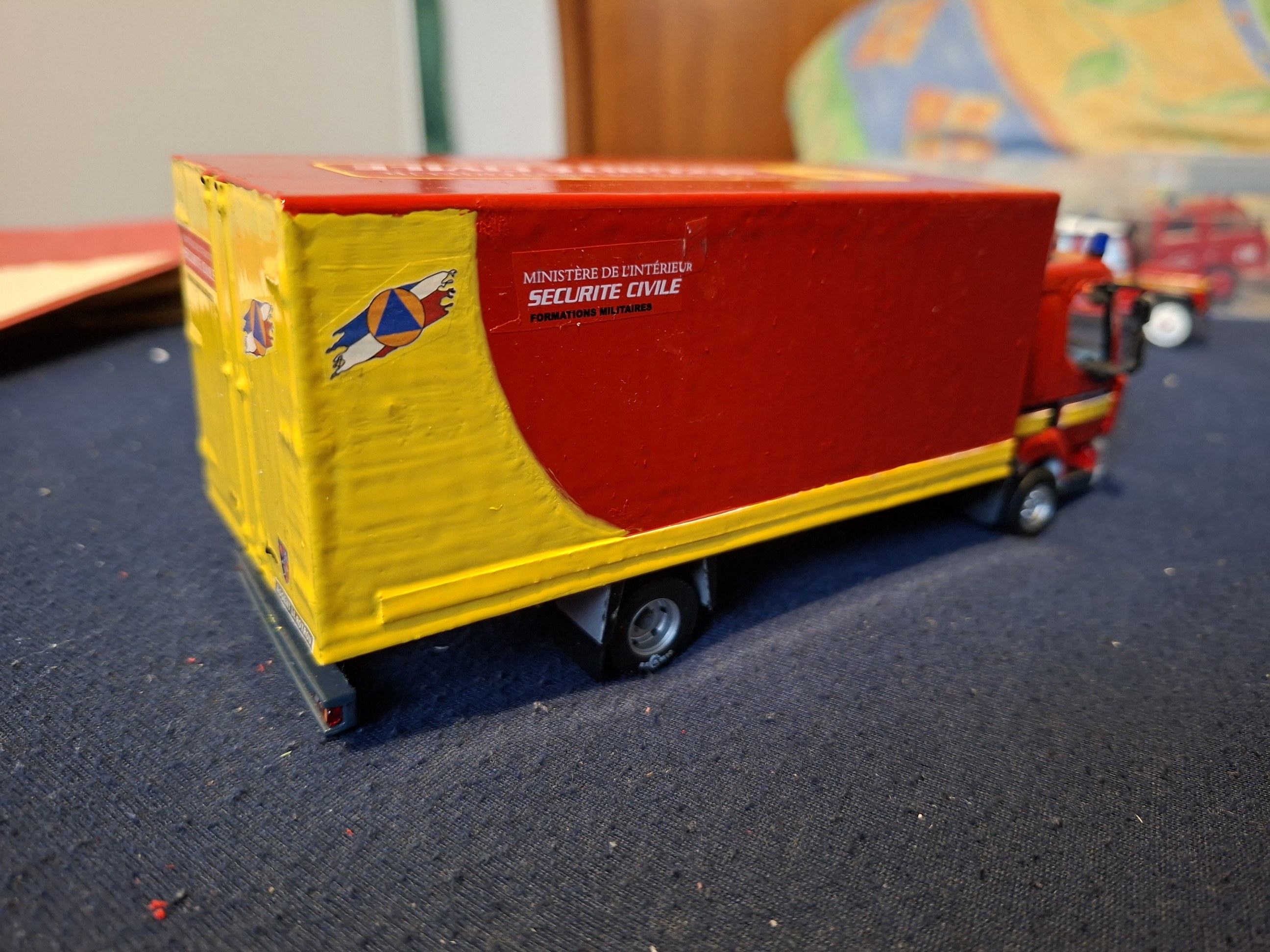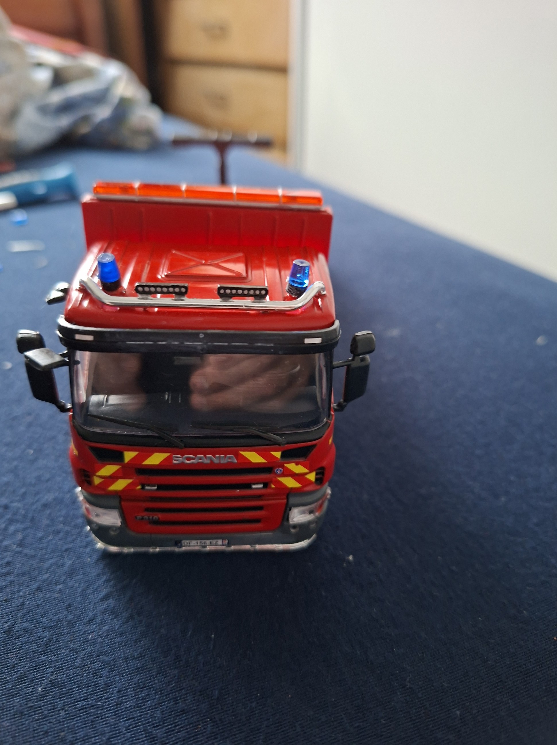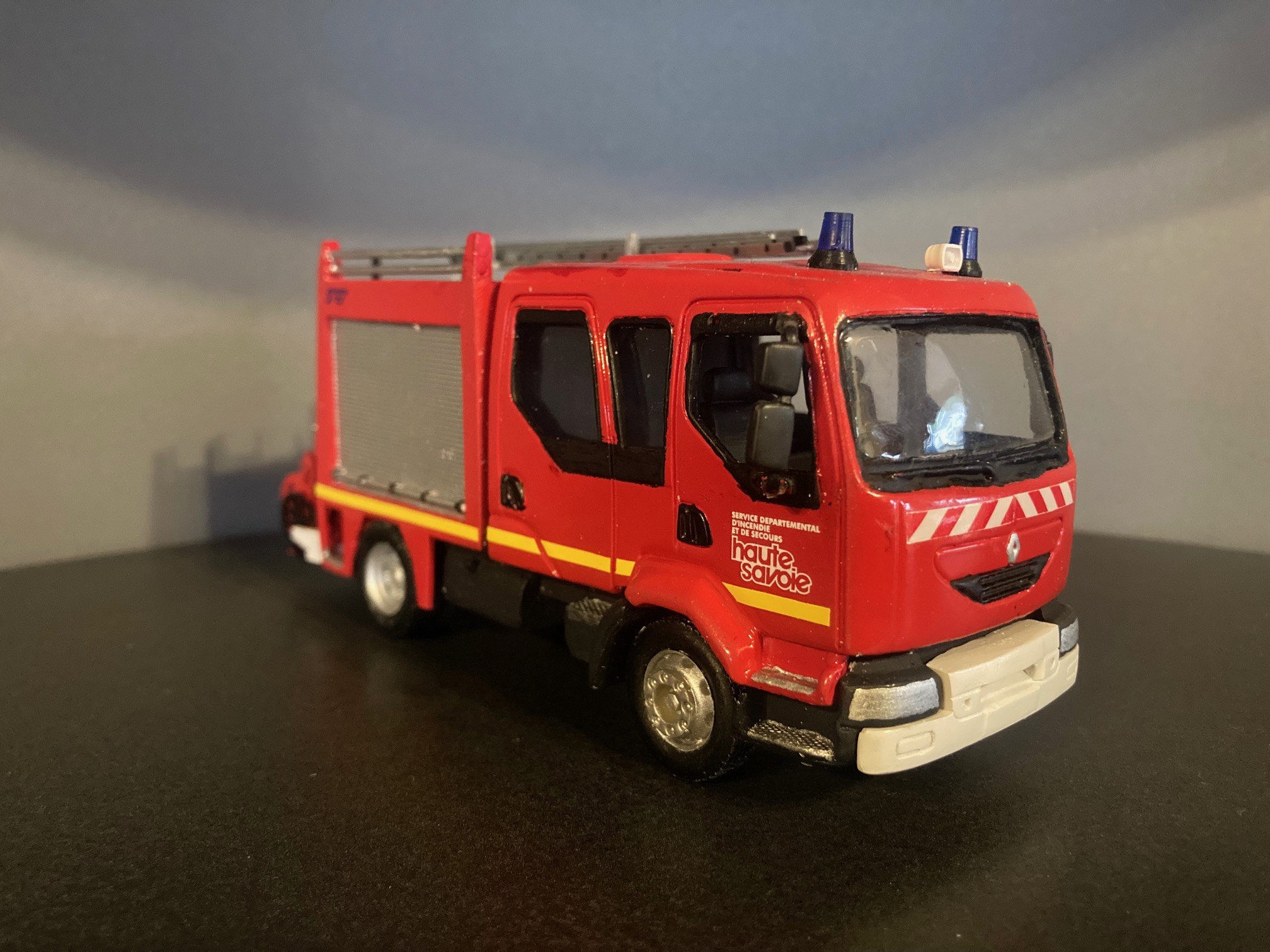 Bonjour à tous, Voici terminé mon deuxième projet en la réalisation du Camion Citerne Eau Mousse du SDIS de l'Ain sur Renault C480, réalisé a partir de modèles de chez Eligor. Il ne correspond pas tout à fait au modèle a l'échelle 1 et c'est le cas, car j'ai du m'adapter à la situation. L'ancien propriétaire du modèle avait collé vissé l'équipement incendie au châssis et quand j'ai voulu décollé ce dernier, après avoir enlevé les visses, la résine veille de 20 ans a commencé a se fissurer. Donc le travail a été de réparer le châssis de sous bassement en résine de l'équipement incendie et d'adapter la cabine du C480 au châssis du modèle qui avait une cabine de G340 a l'origine. Photos du véhicule réalisé au 1/43 : ![]() ![]() ![]() ![]() Photo des 3 générations de CCEM : ![]() Dernière édition le 07/06/2025 à 23:29 par etienne08, édité 2 fois |
