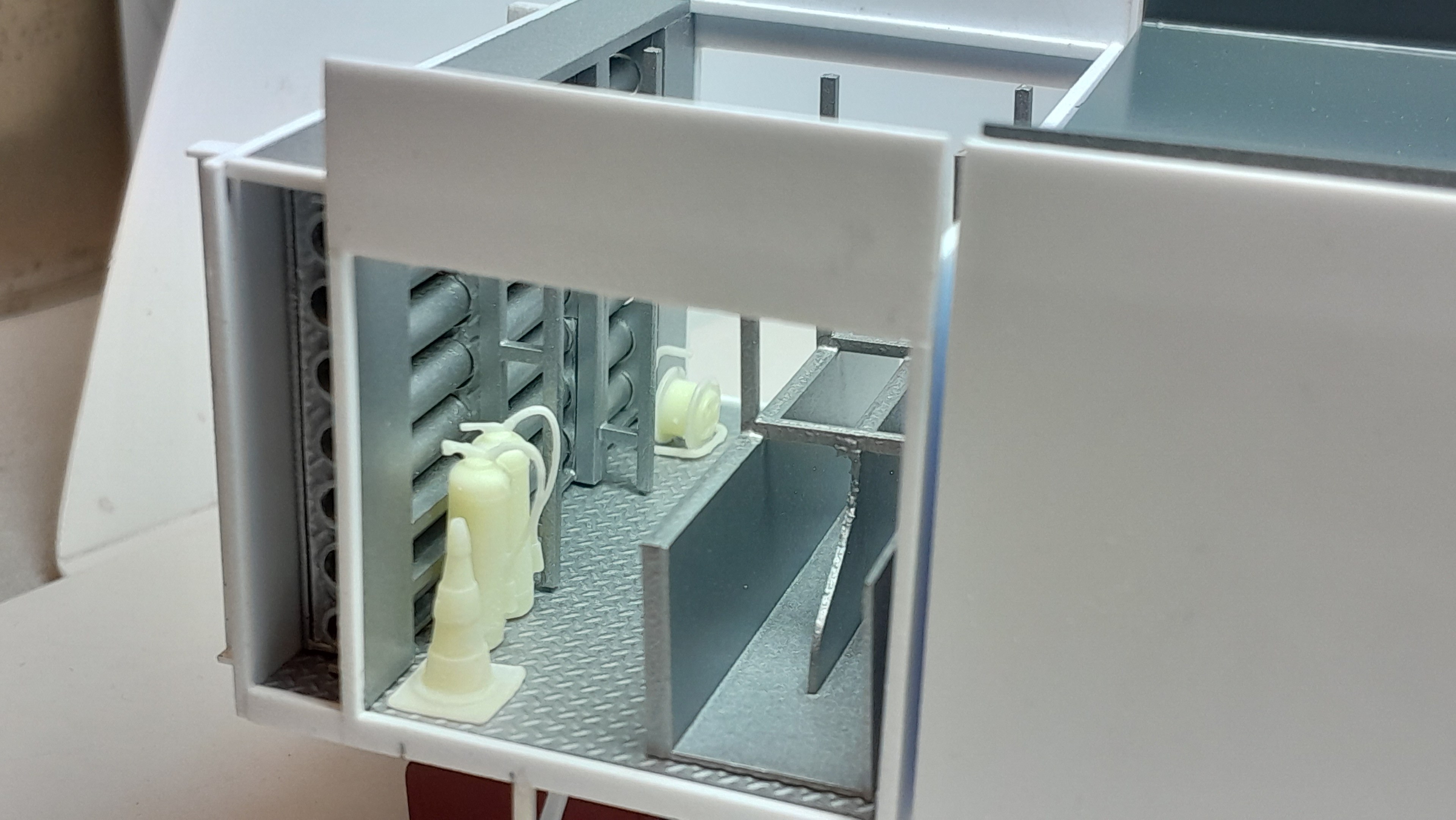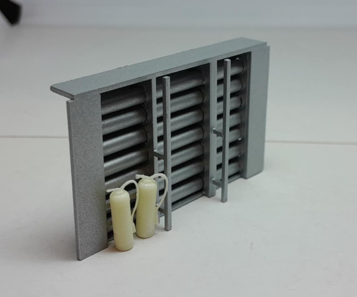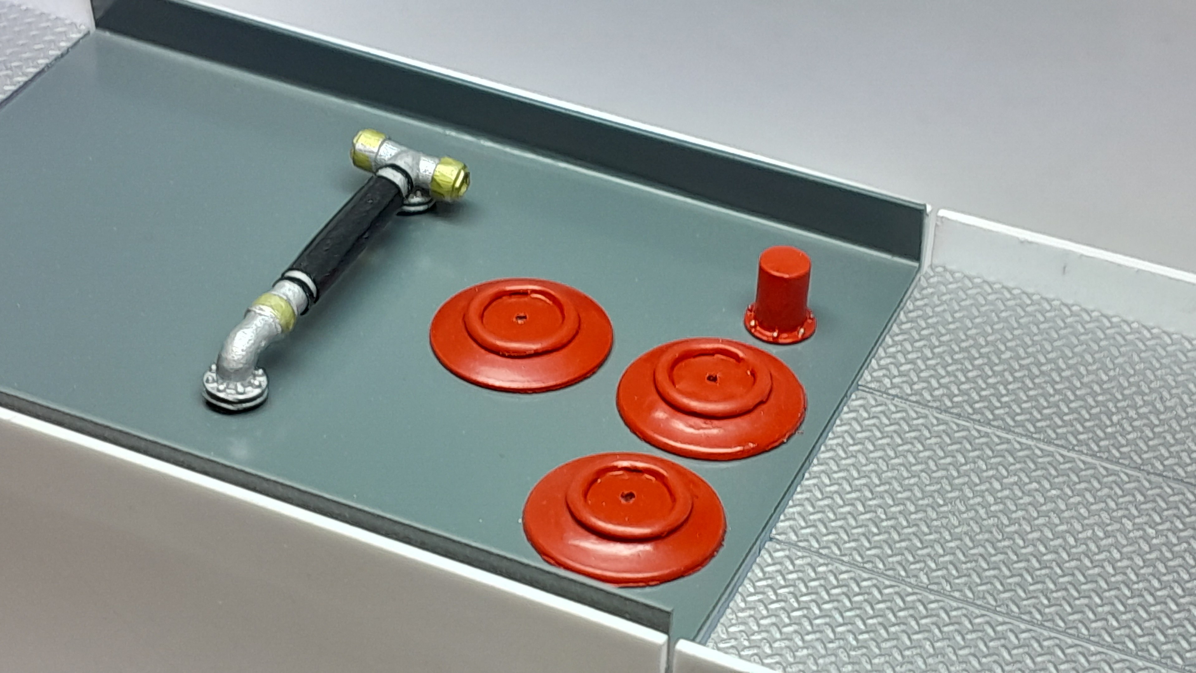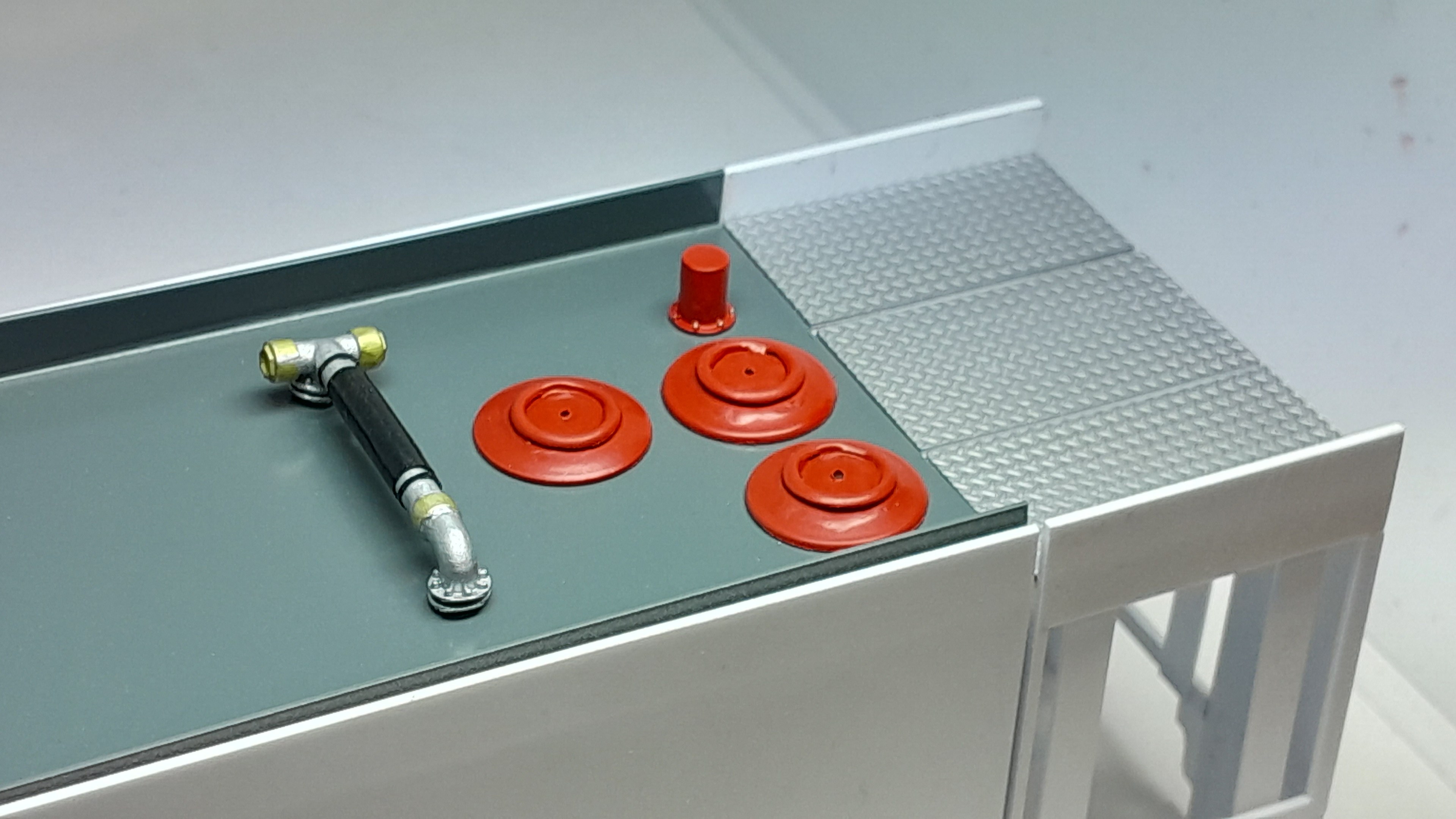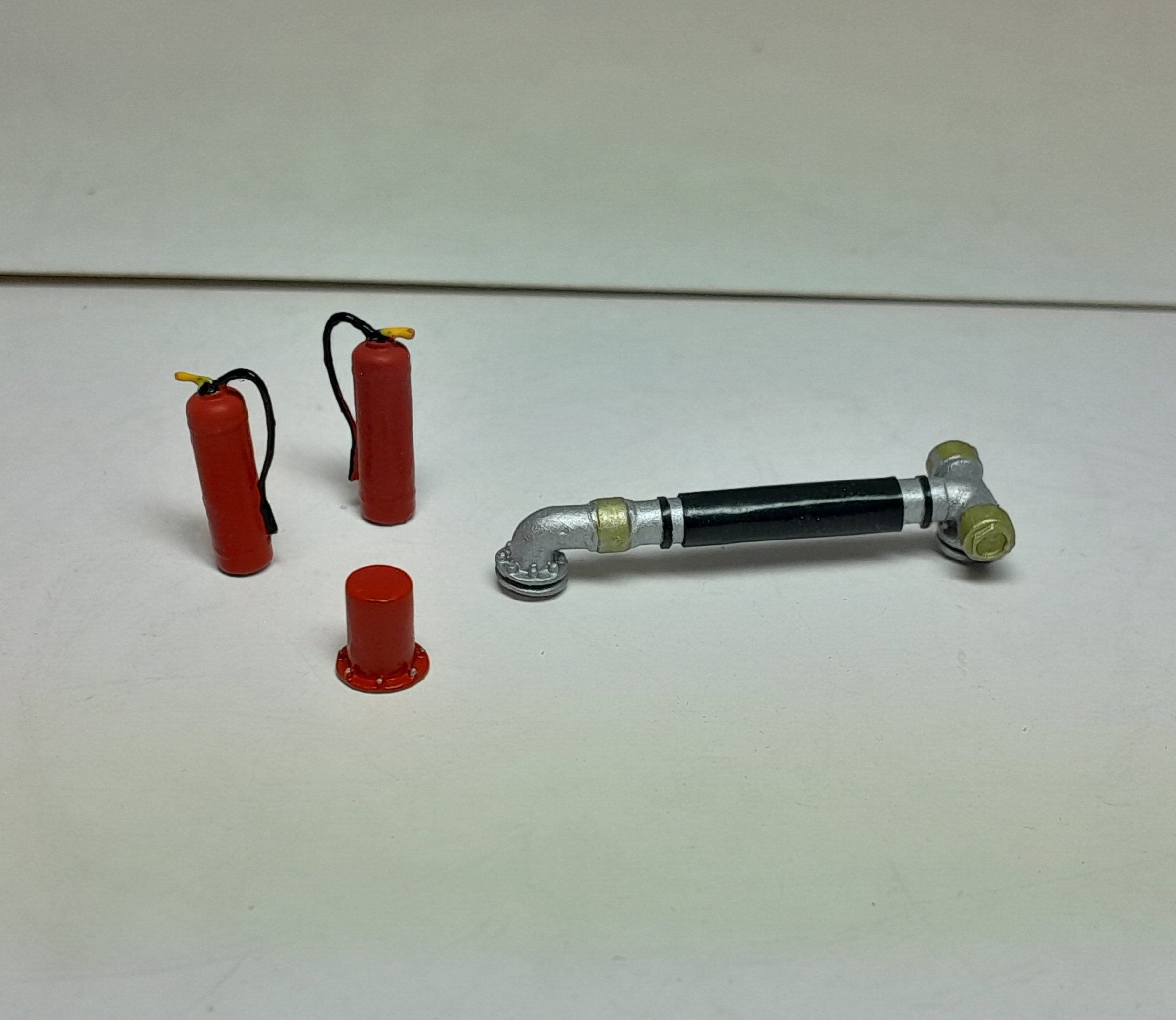 Bonsoir à tous, avancées [FMOGP LIEVIN] : 1- Mise en peinture et pose à blanc des extincteurs à poudre et des tubulures du pavillon de la caisse 2- Début de la réalisation des cônes de Lübeck empilés ![]() |