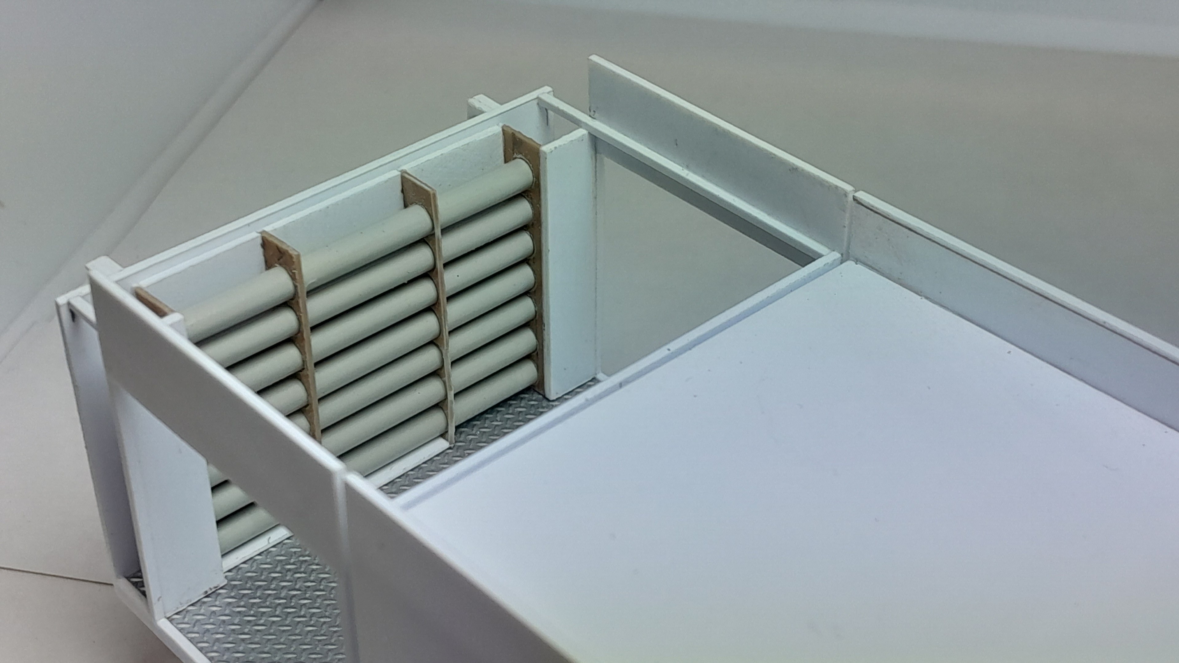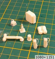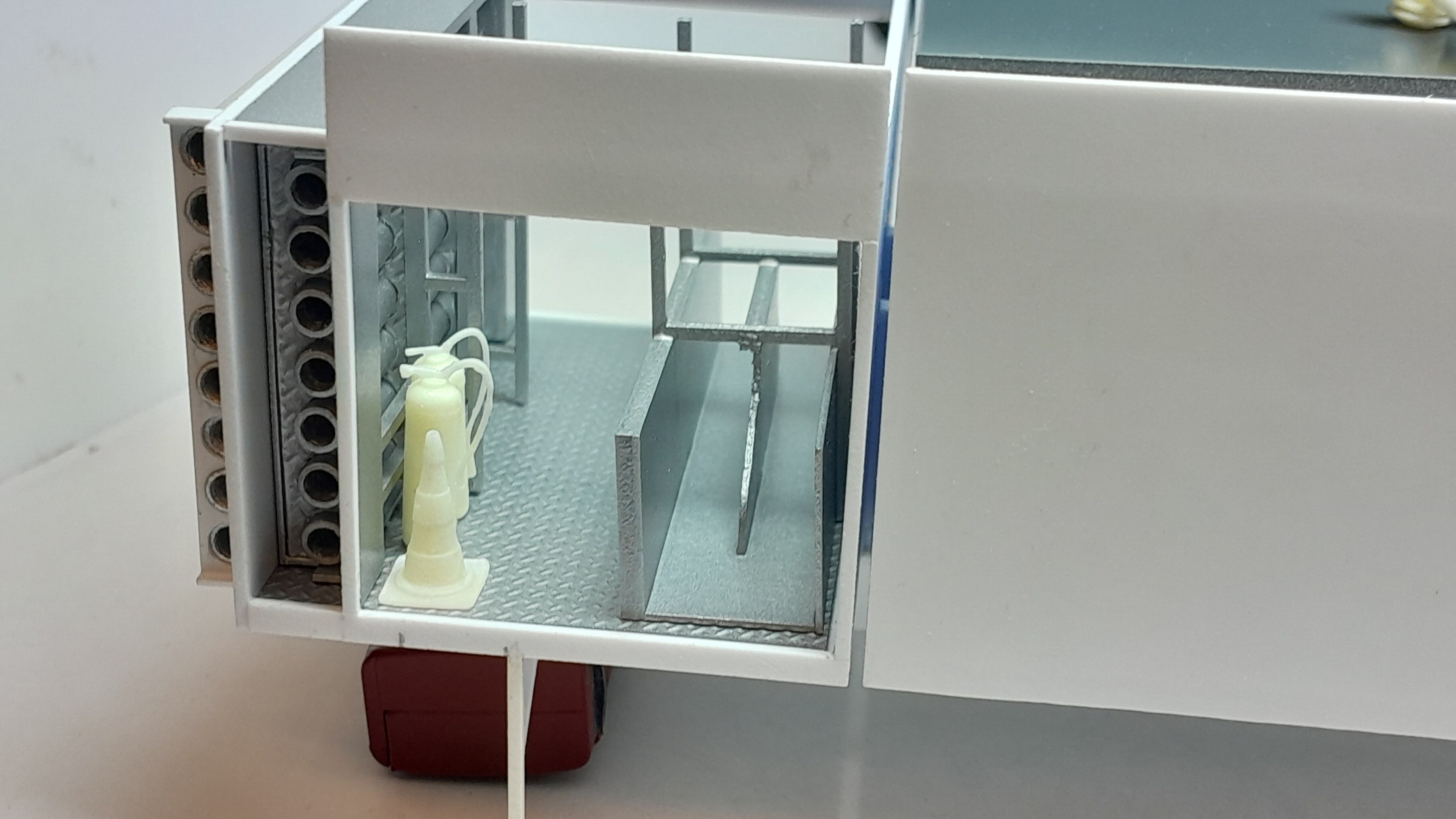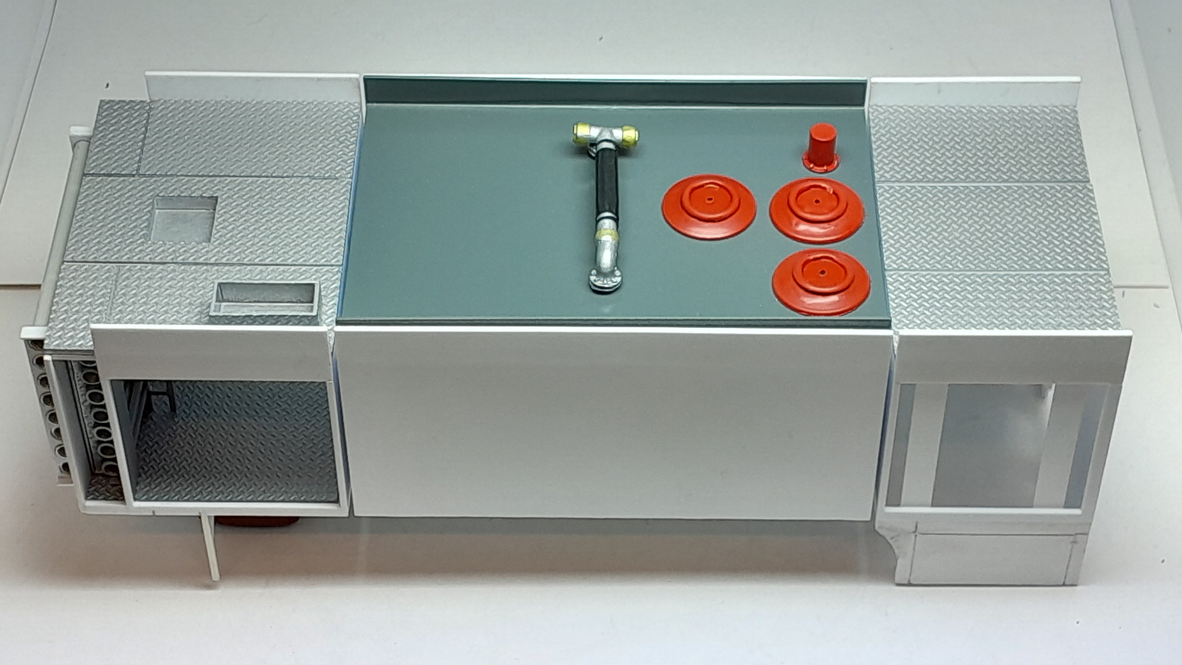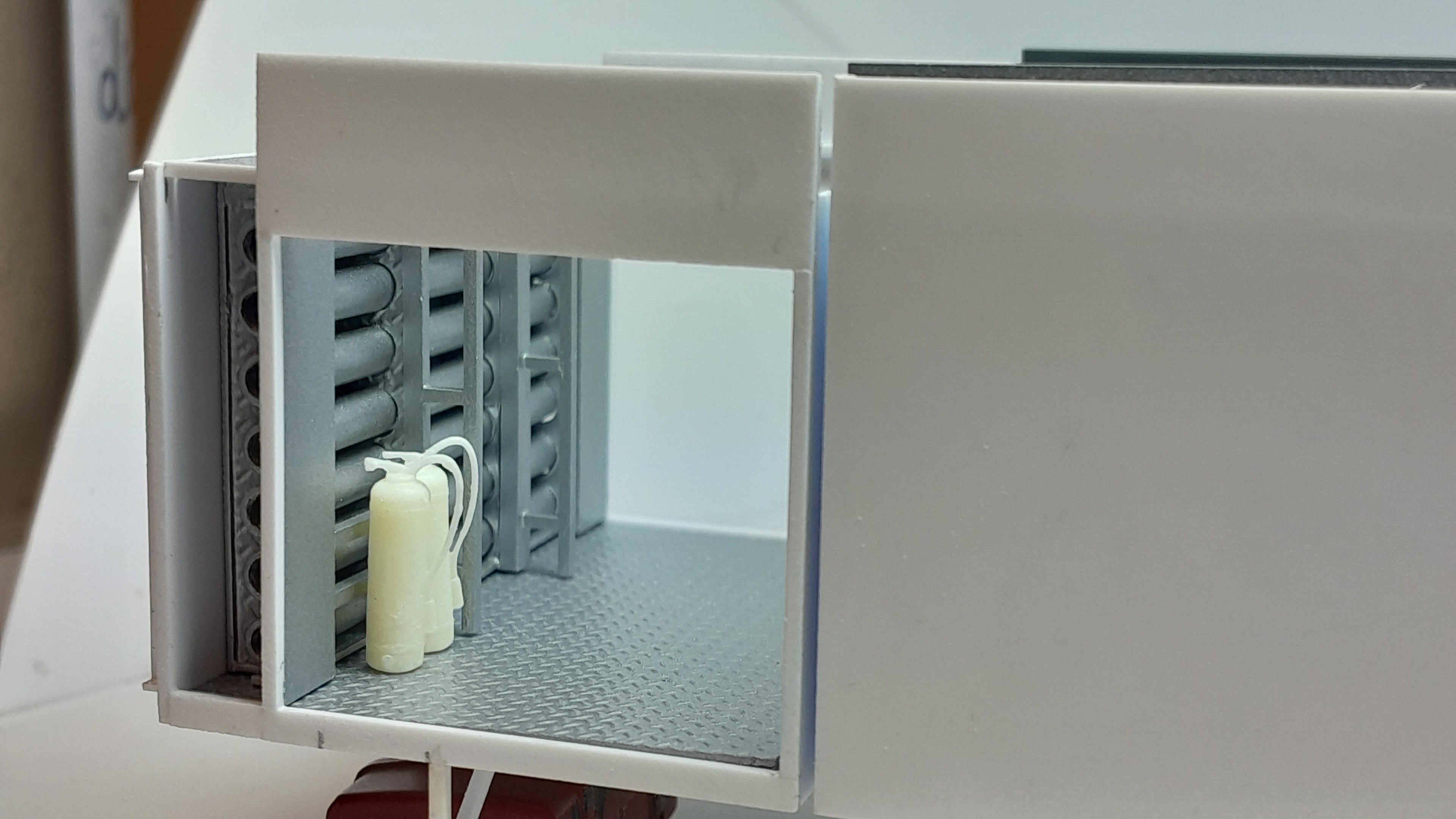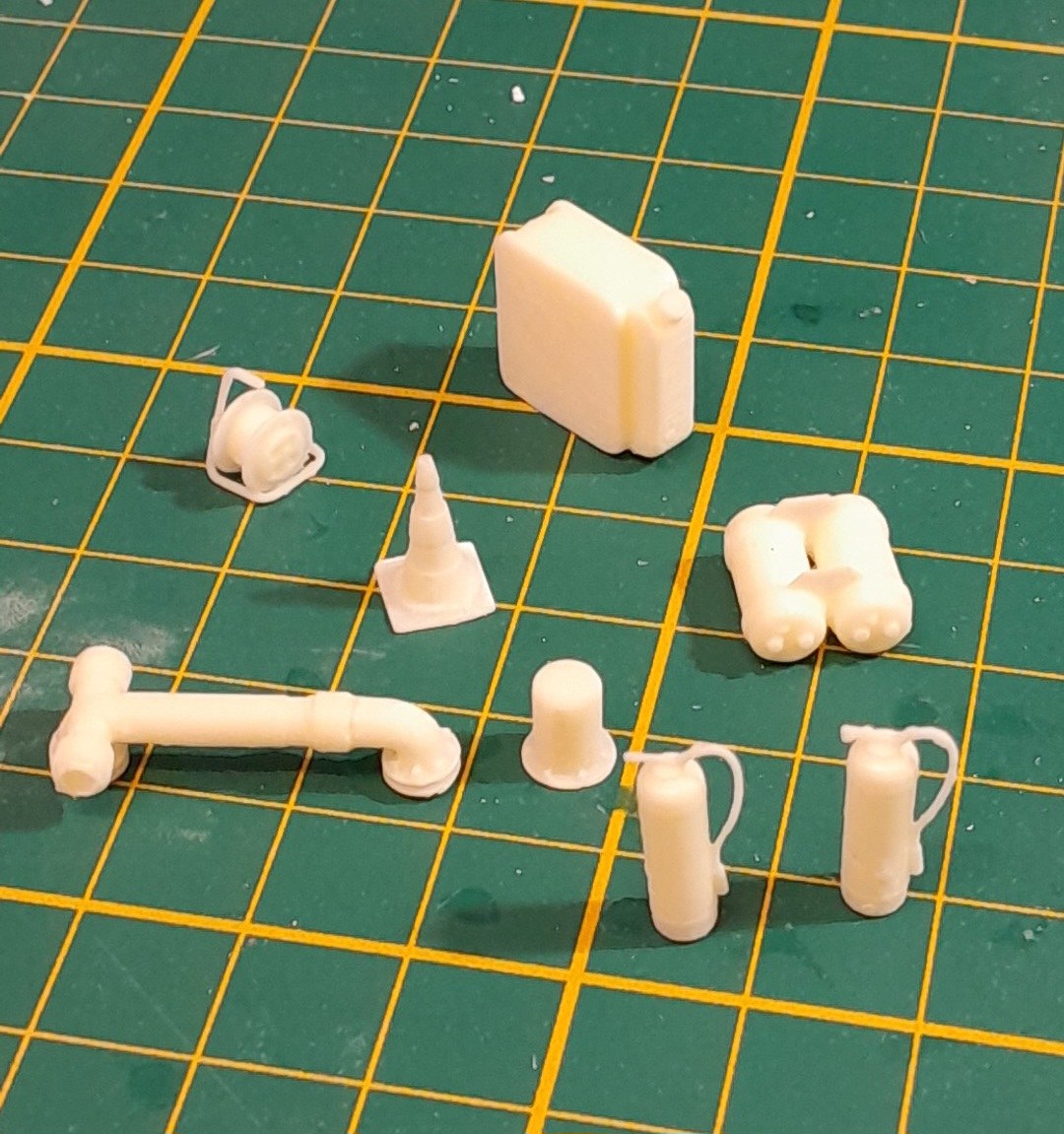 Bonsoir à tous, avancées [FMOGP LIEVIN] : 1- Mise en peinture et pose à blanc des extincteurs à poudre et des tubulures du pavillon de la caisse 2- Début de la réalisation des cônes de Lübeck empilés ![]() |