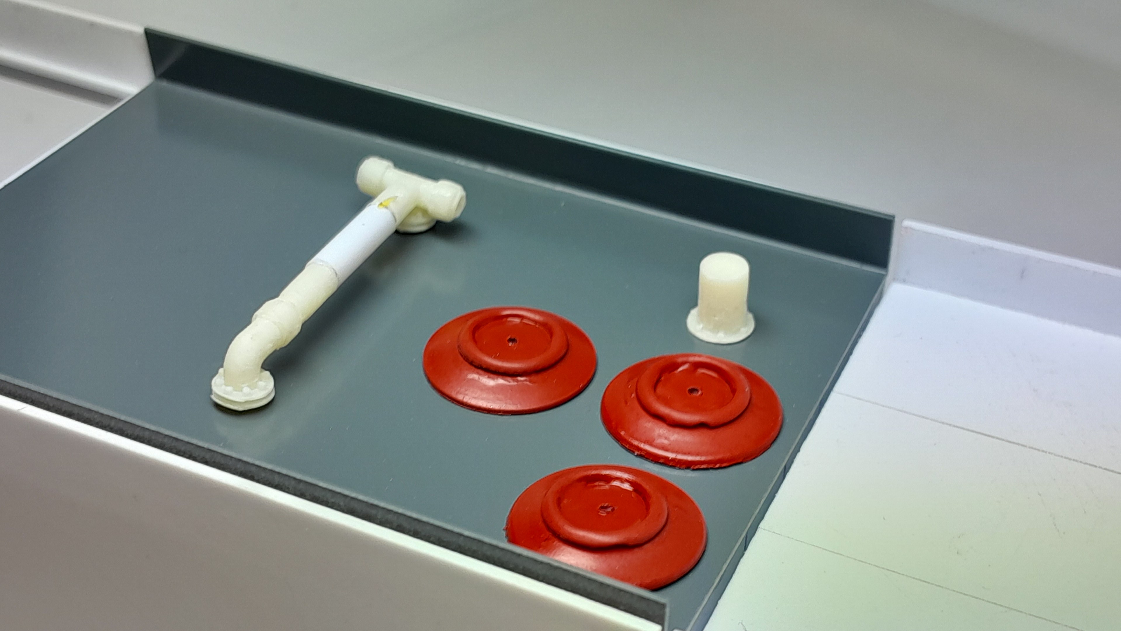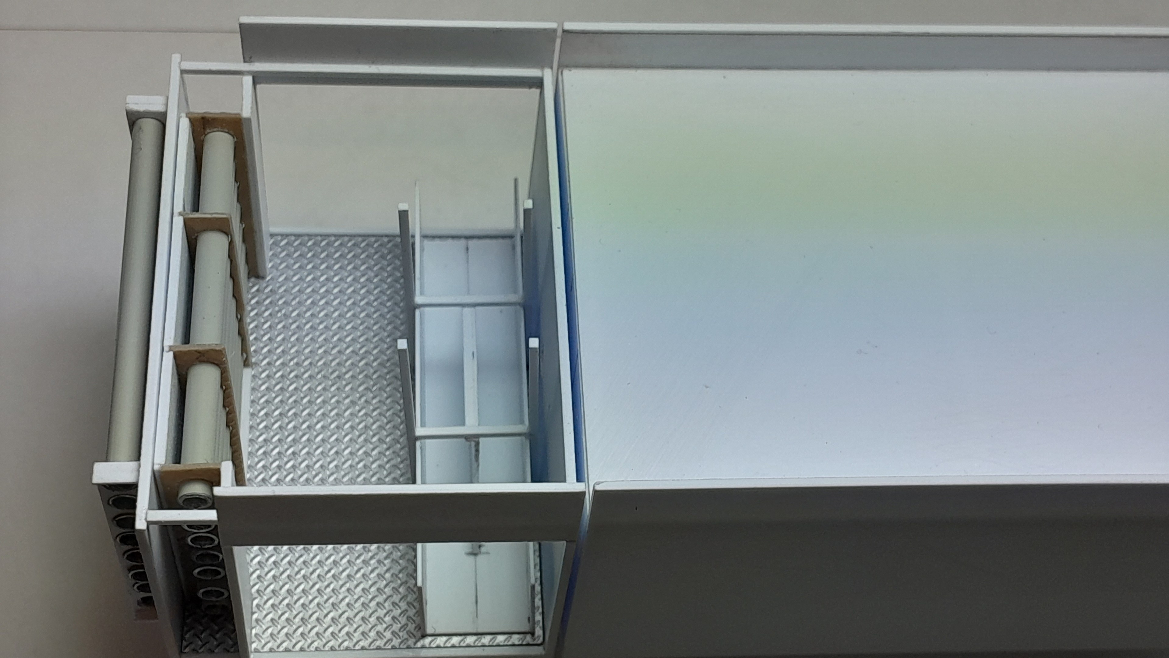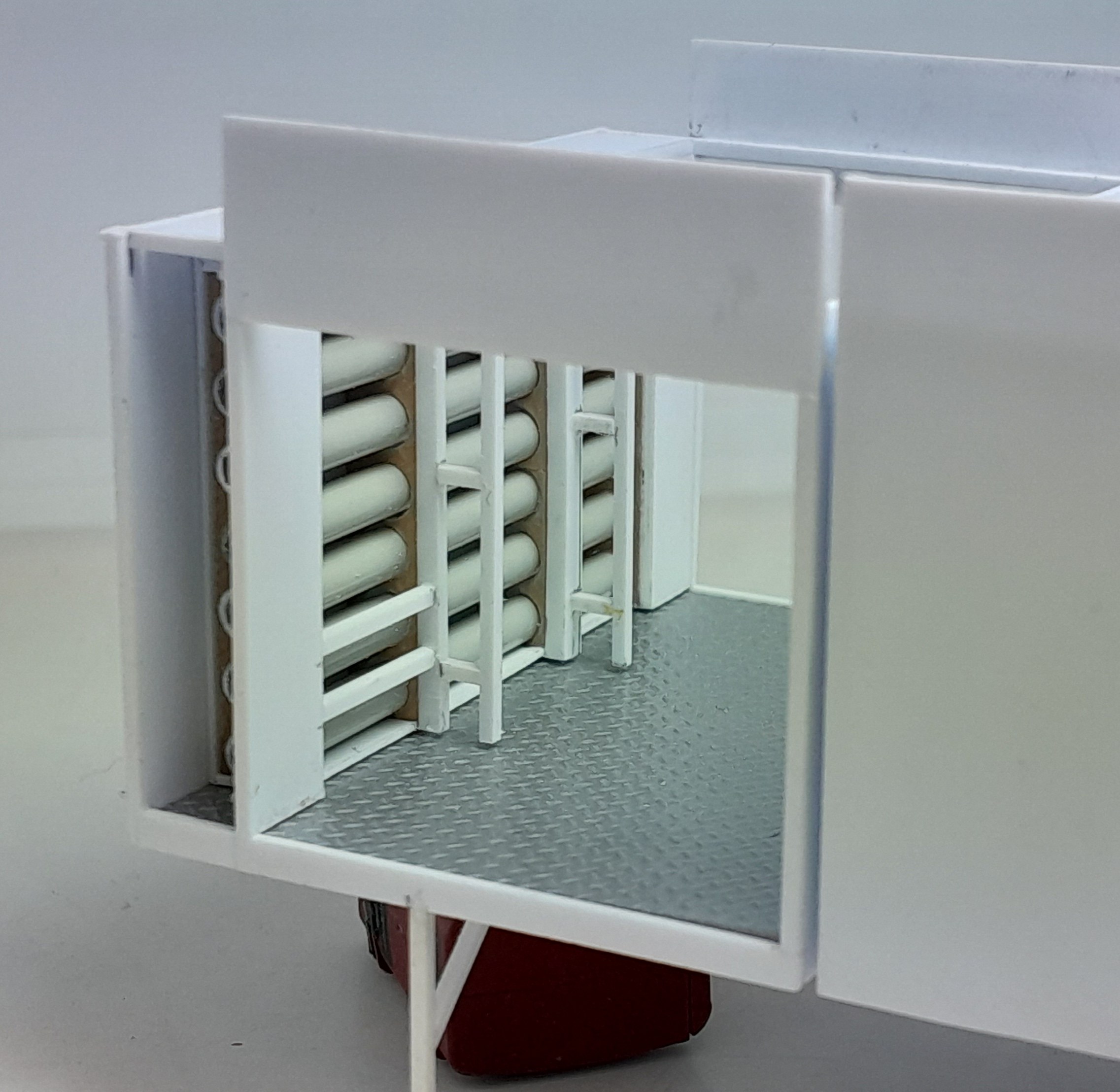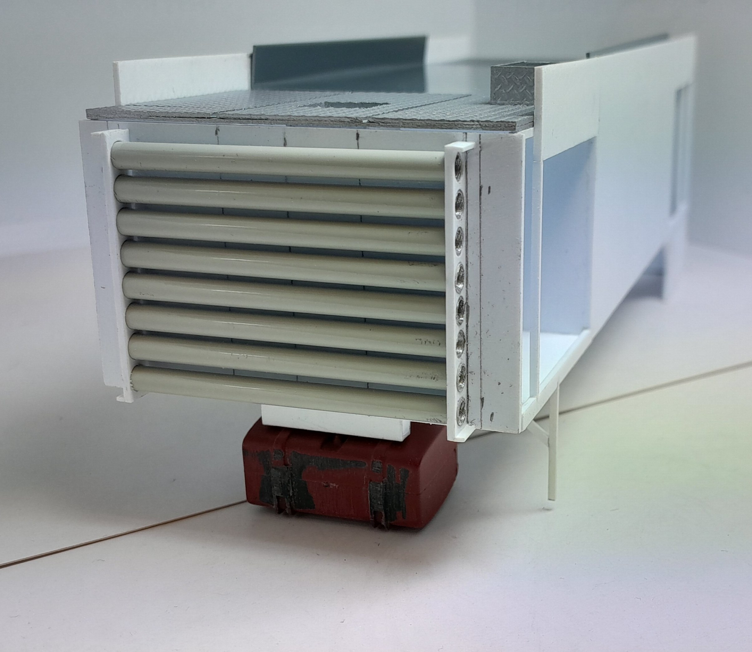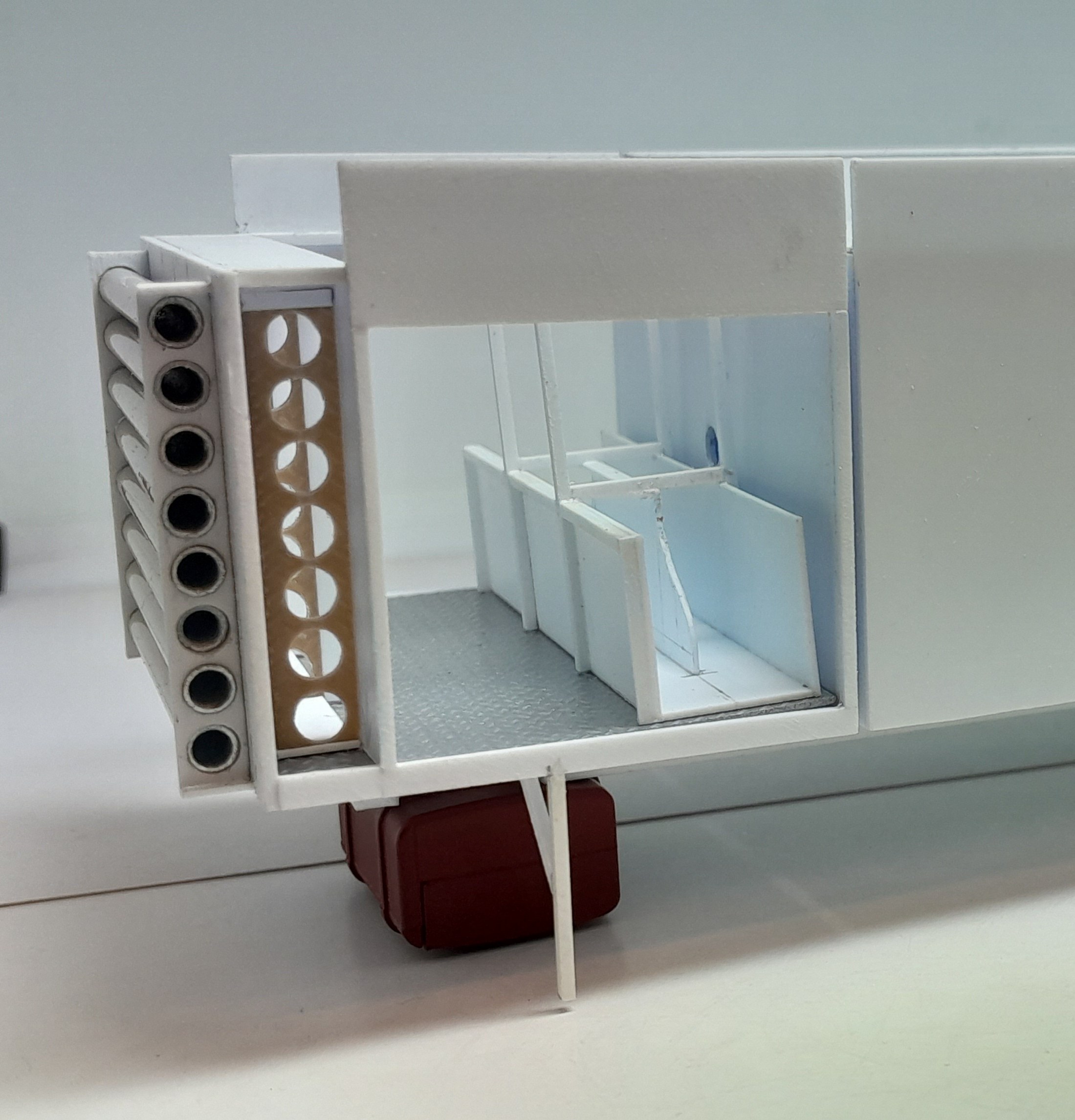 Bonsoir à tous, avancées [FMOGP LIEVIN] : 1- Mise en peinture et pose à blanc des extincteurs à poudre et des tubulures du pavillon de la caisse 2- Début de la réalisation des cônes de Lübeck empilés ![]() |