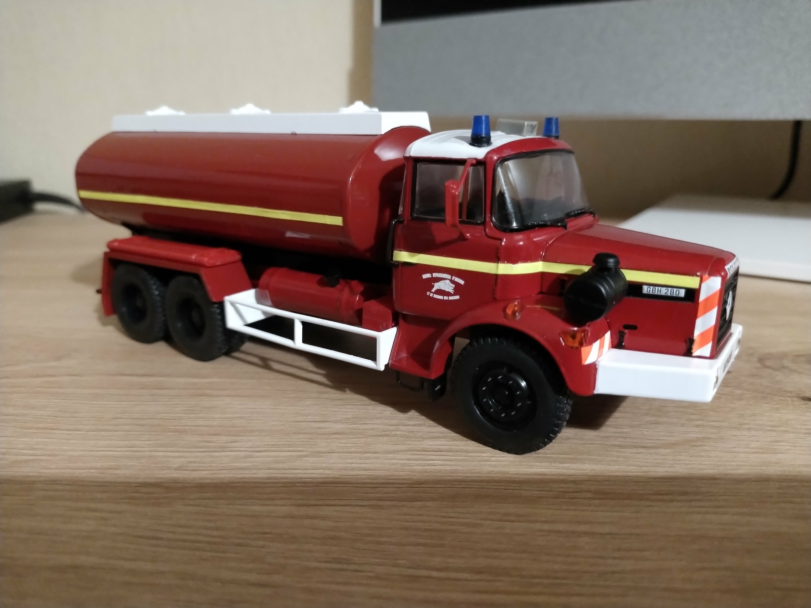 Bonjour à tous, Voici ma dernière petite réalisation personnelle, elle est faite avec différents éléments de modèles de la collection Hachette. Il s'agit de la réalisation d'un CCGC sur Berliet GBH 280 pour le châssis cabine et barres anti encastrement, du Comet Pegaso pour la citerne, d'un Acmat pour les rangements des aspiros et remplacement des gyrophares. Photos du véhicule réalisé au 1/43 : ![]() ![]() ![]() ![]() Dernière édition le 01/06/2025 à 15:29 par etienne08, édité 1 fois |