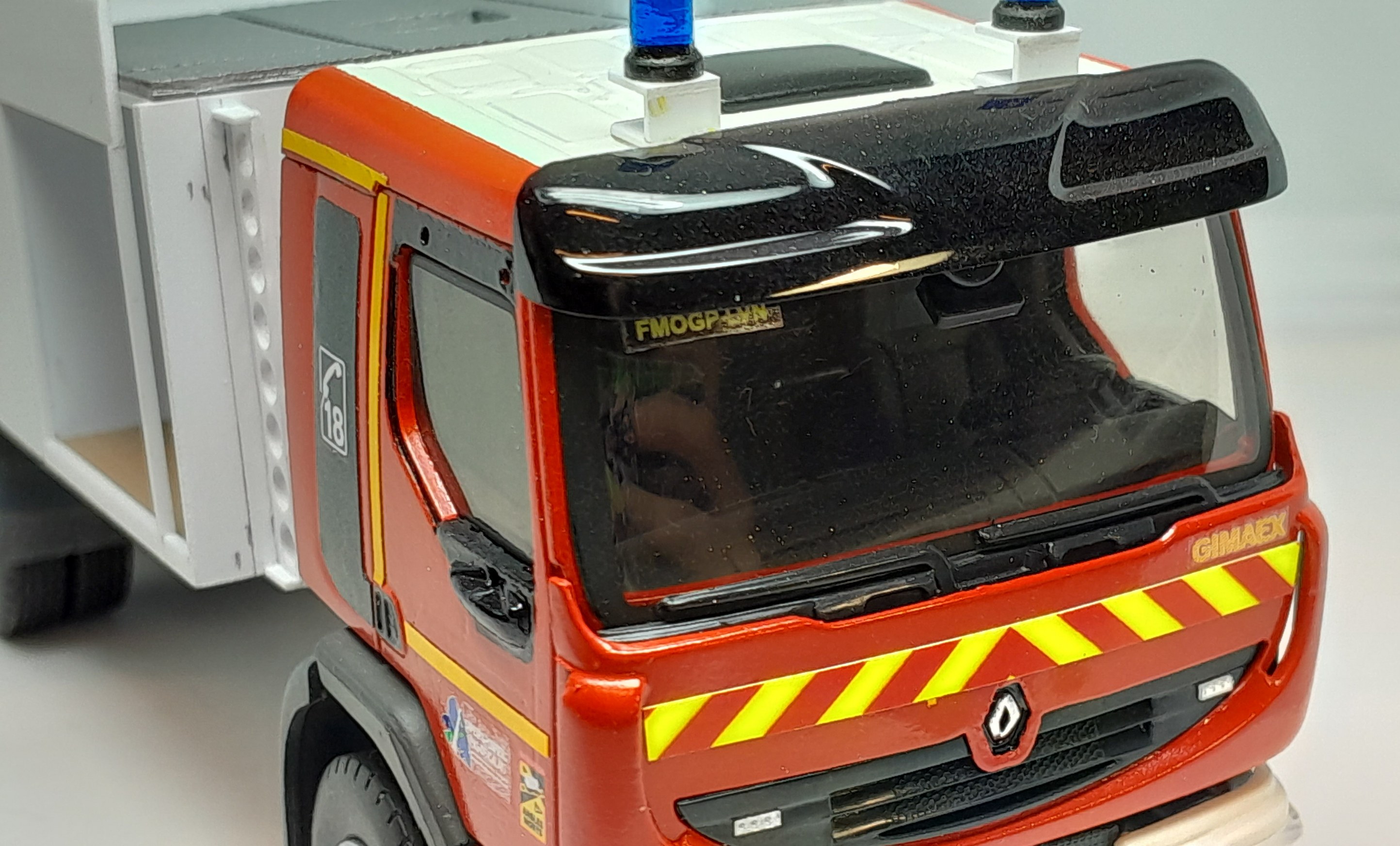 Bonsoir à tous, avancées [FMOGP LIEVIN] : 1- Début de la réalisation des supports de gyrophares et pose à blanc 2- Continuation de la réalisation du pavillon de la caisse (emplacement de la lance-canon, partie centrale) 3- Mise en peinture des tôles larmées 4- Début de la réalisation du rangement du tromblon de la lance-canon sur le pavillon et pose à blanc 5- Pose de l'indicatif du véhicule "FMOGP LVN" sur le pare-brise 6- Mise en peinture des coffres latéraux bas ![]() |