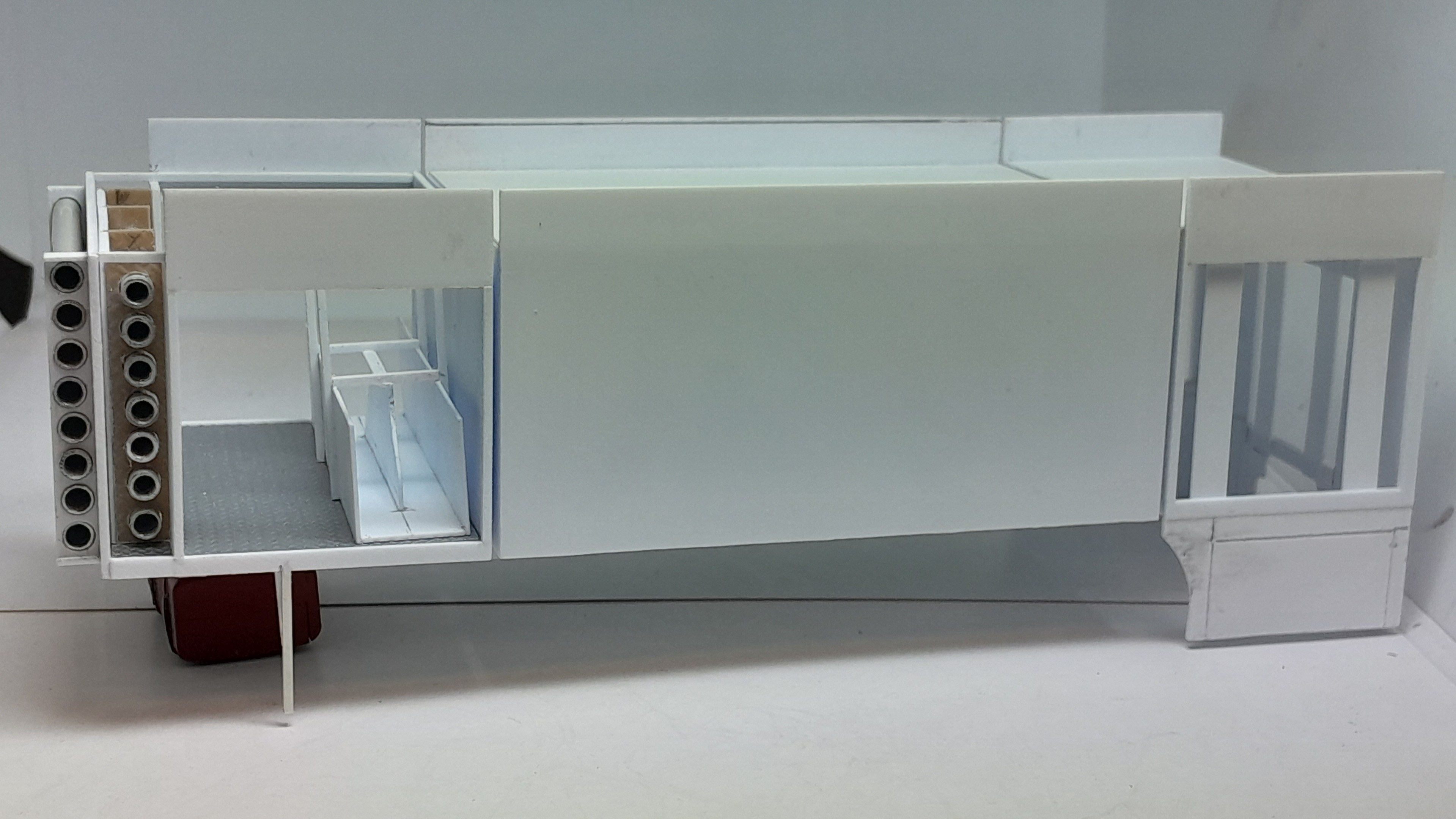 Bonsoir à tous, avancées [FMOGP LIEVIN] : 1- Réalisation des tubes de rangement des aspiraux (aiguilles à tricoter coupées au coupe-tubes) 2- Pose à blanc des tubes de rangement à l'avant de la caisse 3- Continuation de la réalisation des trous d'homme et pose à blanc 4- Début de la réalisation du prolongement du châssis et pose à blanc ![]() |