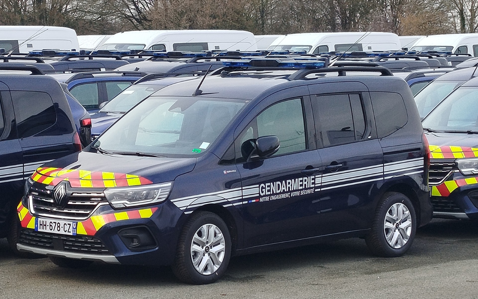 Je note que, derrière ces Kangoo, on distingue visiblement des Duster, et je crois un Skoda Kodiaq |
