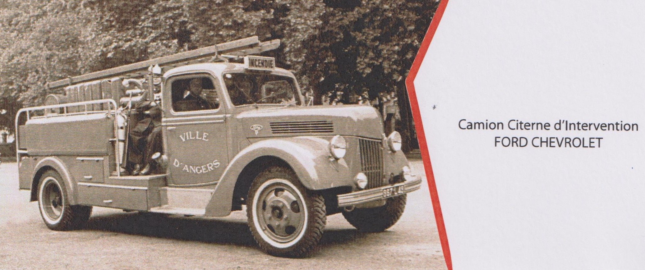 La publication le 05 novembre dernier du CCI Ford F 798 du Haut Rhin me fait penser qu'il a existé une autre rareté sur ce type de châssis, le camion citerne pour feux d'hydrocarbures produit par Froger. Je n'en connais que deux photos dont celle-ci issue d'une plaquette de présentation du matériel du CSP Angers. Ce camion était encore opérationnel dans les réserves (Angers Académie maintenant) en 1969. ![]() |
