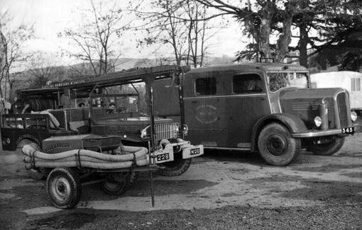Explorées pour vous en ce jour de grisaille, les archives numérisées de la Drôme memoire-drome.com l'entrée des mots-clé "pompiers" ou "incendie" permet de sélectionner quelques milliers de photos, loin d'être toutes intéressantes, et qui vous rendront incollables sur les Sainte-Barbe ou les manoeuvres de motopompes ... à l'image de Crest en 1952 avec les poses typiques de l'époque Quelques trouvailles aussi, le matériel de Aouste sur Sie, le Dodge Merceron tout neuf de Die, ou cet intéressant Citroën U 23 apparemment en version citerne combattant un incendie à Puy St Martin en 1955, l'échelle de Valence ... ![]() |