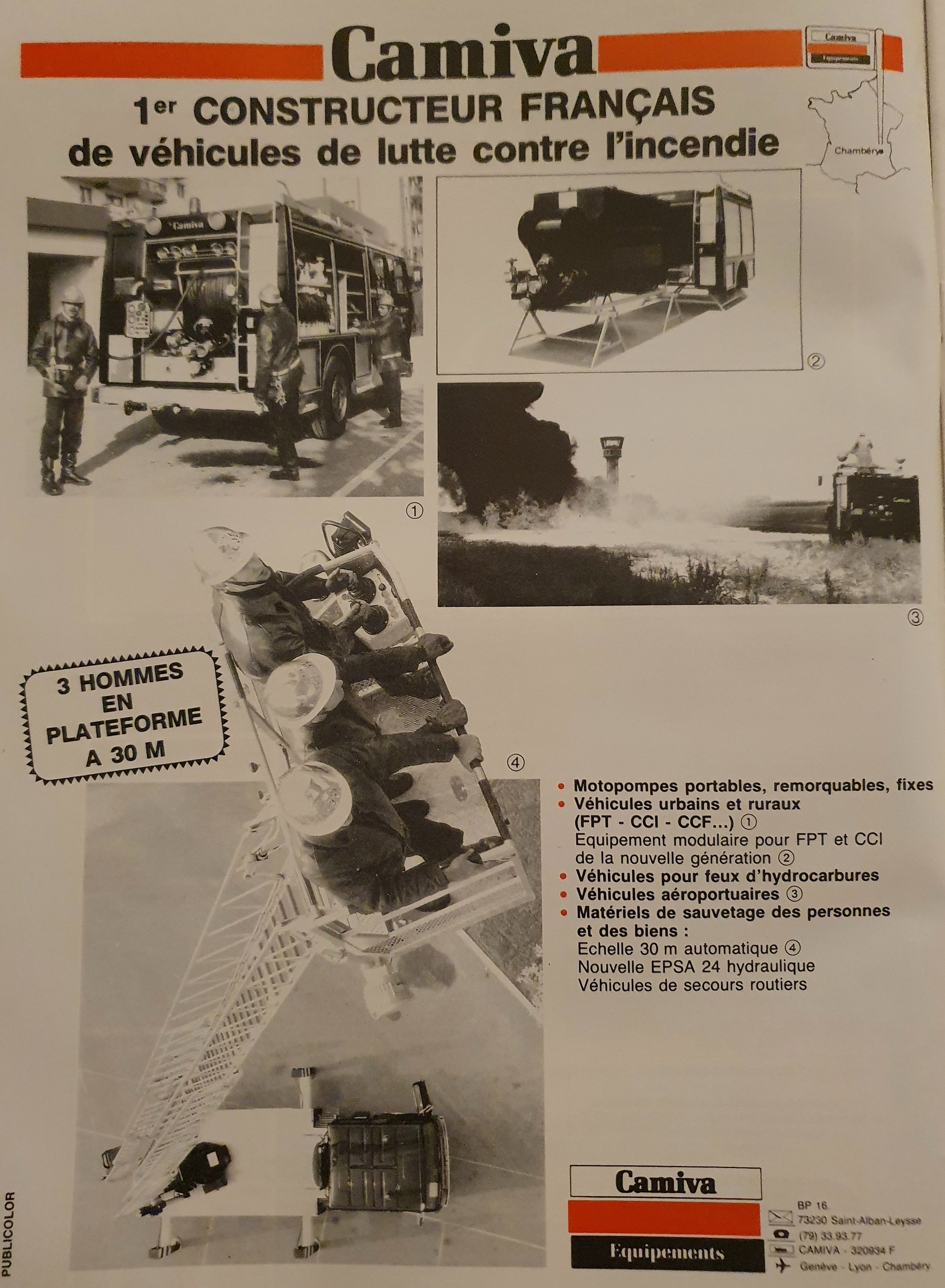 Bonjour à tous. Je suis tombé sur d'anciennes revues "le sapeurs-pompiers" et "Sauver" datant de 1982 à 1987 dans lequel on trouve beaucoup de pub d'époque (renault, bemaex ...) et quelques photos de véhicules ou de CS de l'époque. En voici quelques unes ![]() |